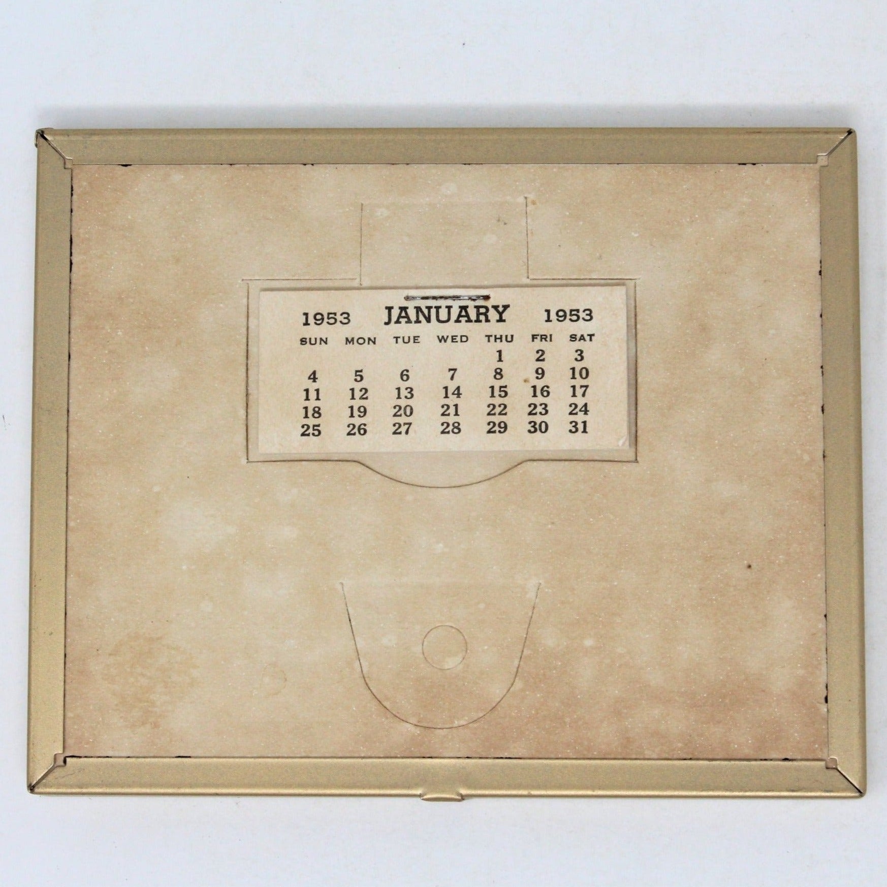- Condition: Vintage - Used. Excellent Vintage Condition. There is rust on a small spot on the frame and the paper has yellowed over time, all acceptable due to age/use/wear. The mini calendar is complete, there is no damage and the thermometer works (as of this writing). Please review all pictures and make sure you love this item before purchasing, we can't accept returns. Please remember these are ANTIQUE and VINTAGE items, they are NOT new, every effort has been made to show any scratches, wear and tear and imperfections.