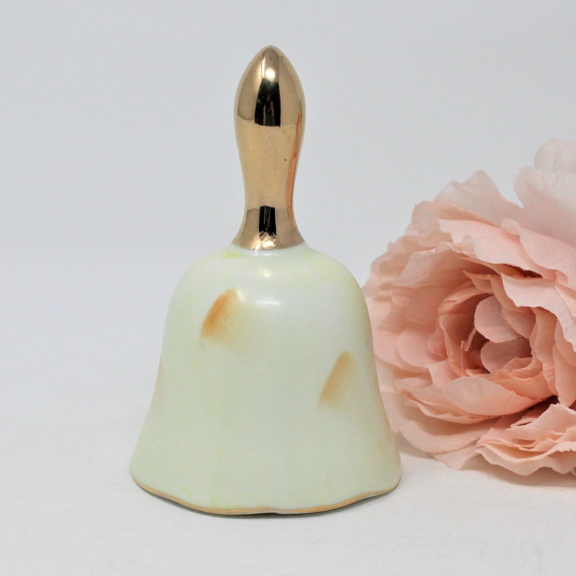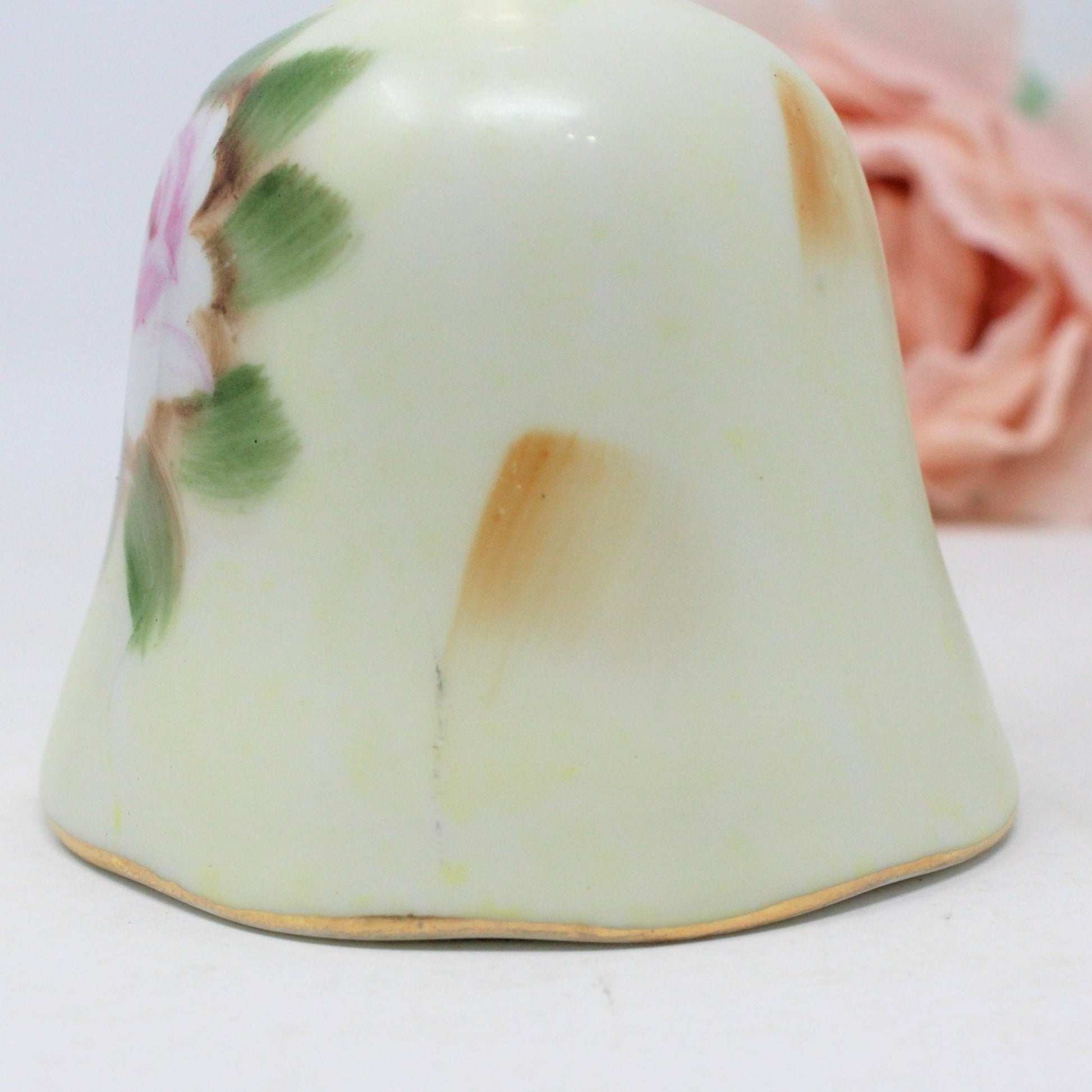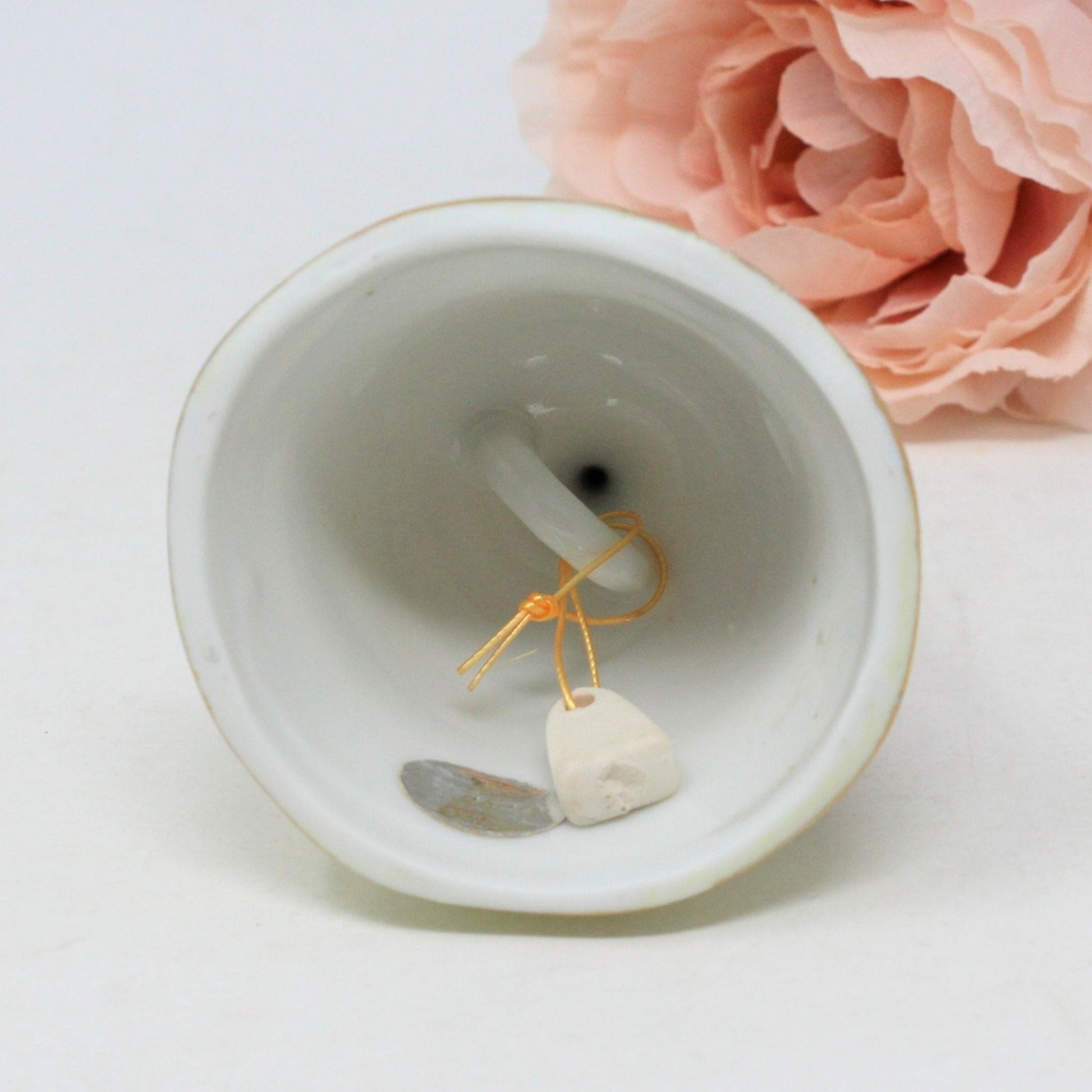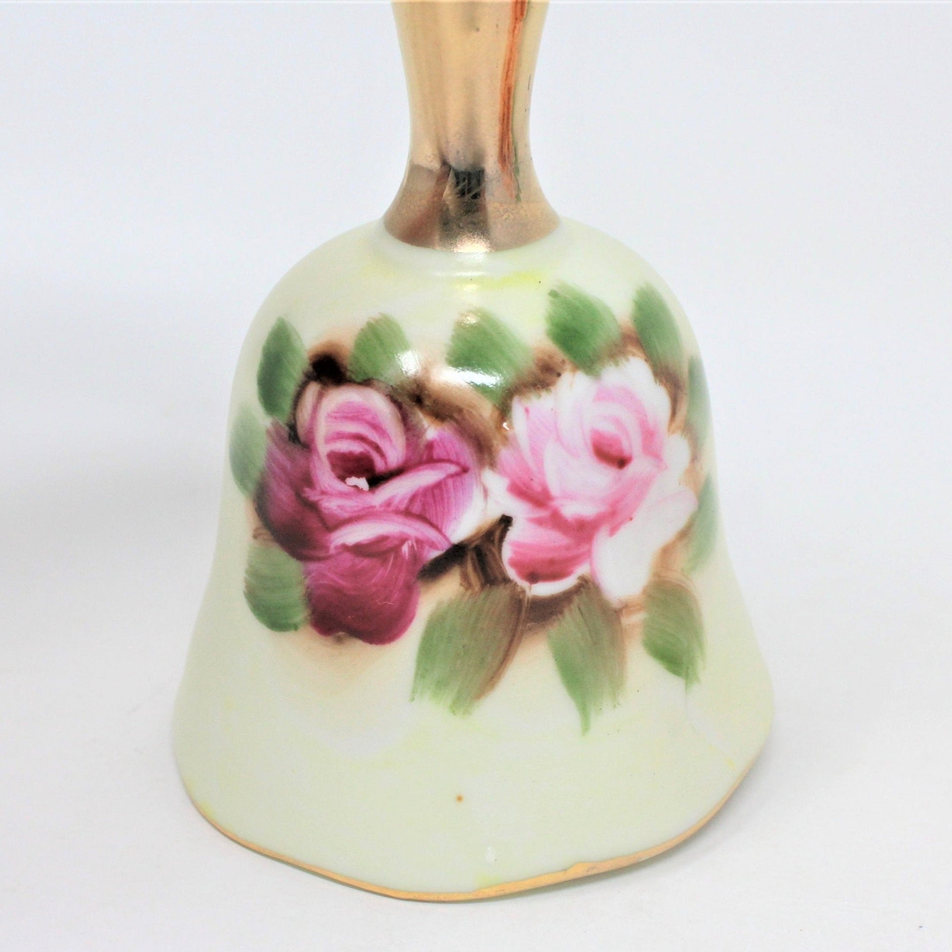 - Vintage Porcelain Bell, Enesco, Hand Painted Pink Roses and Gold Handle, Collectible, Home Decor, Japan Imports, (Discontinued)