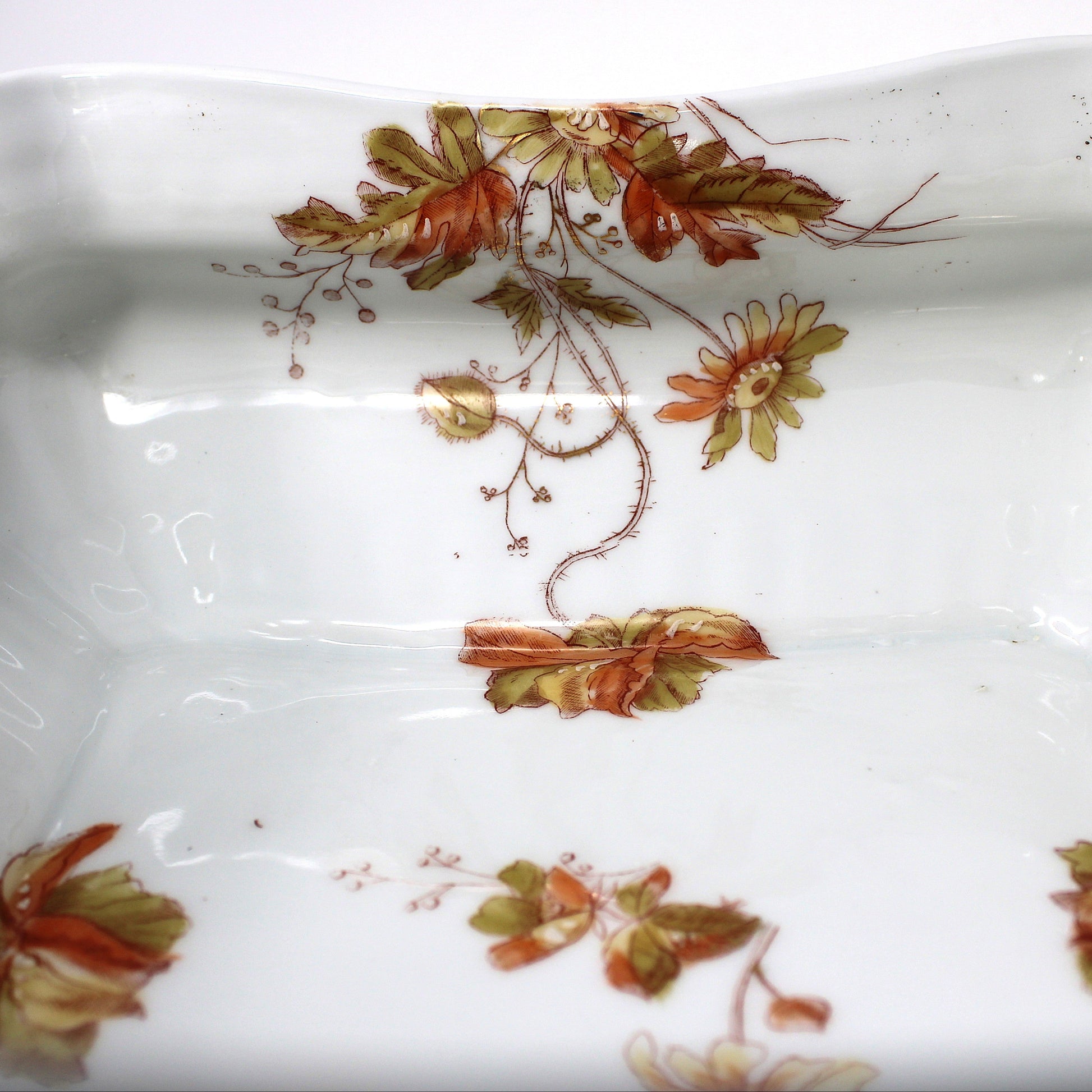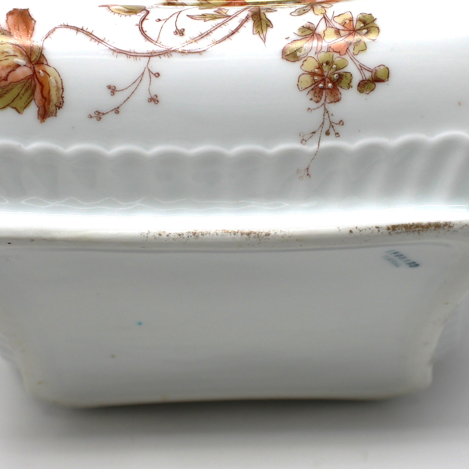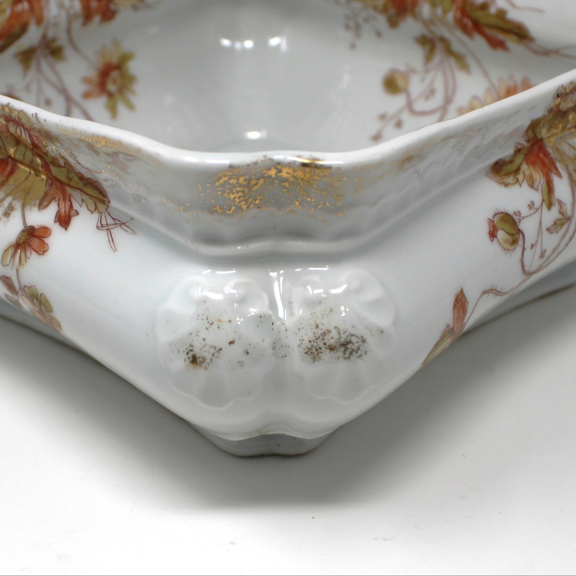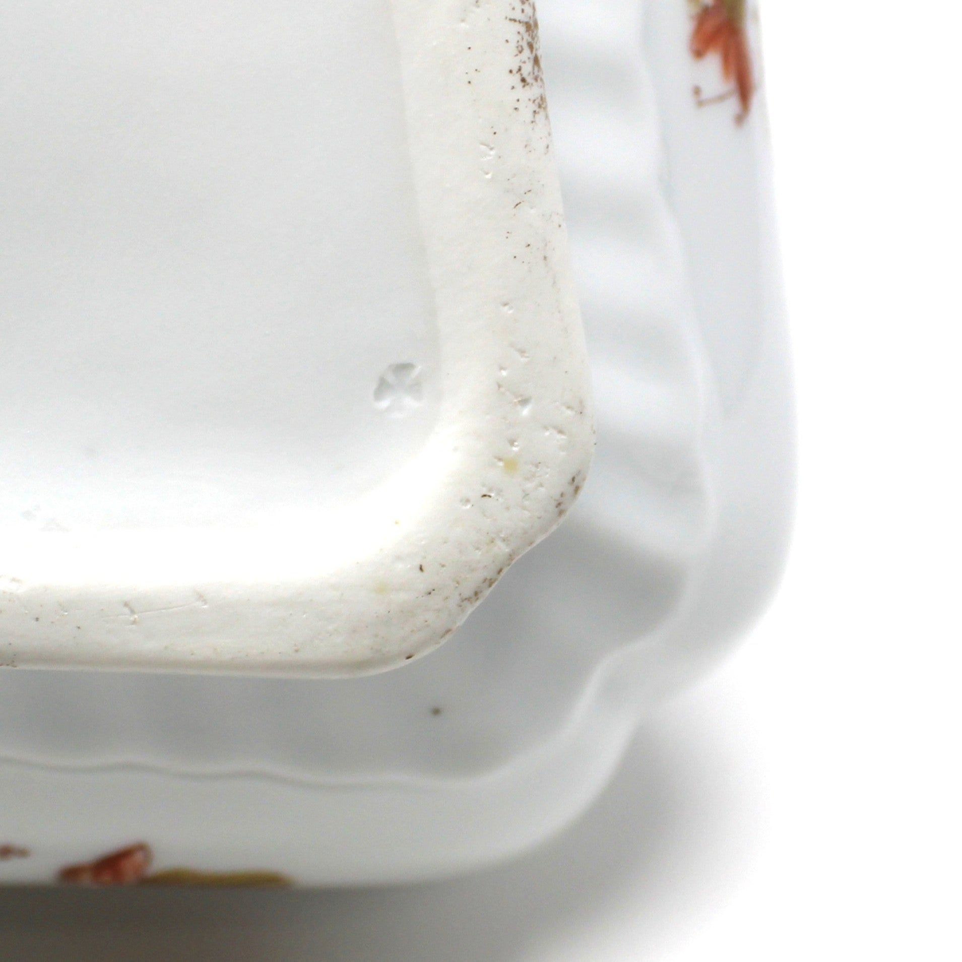• Antique Square Bowl, Hand Painted Rust Florals, Czech Porcelain, Impressed TK (Thun Klosterle), and Eight-Pointed Cross, Elegant Decor, RARE, Leonard Vienna, (Discontinued)