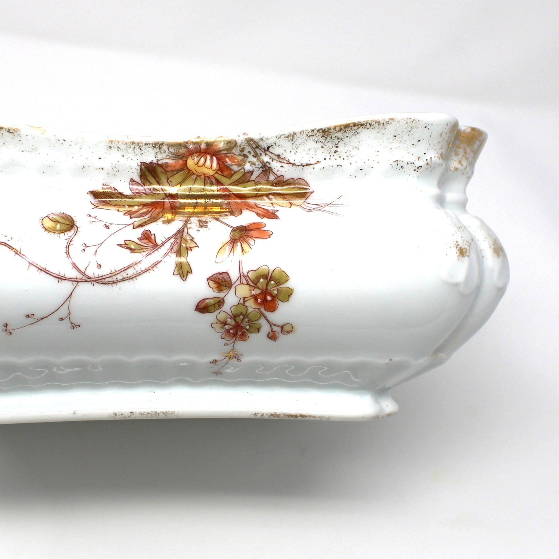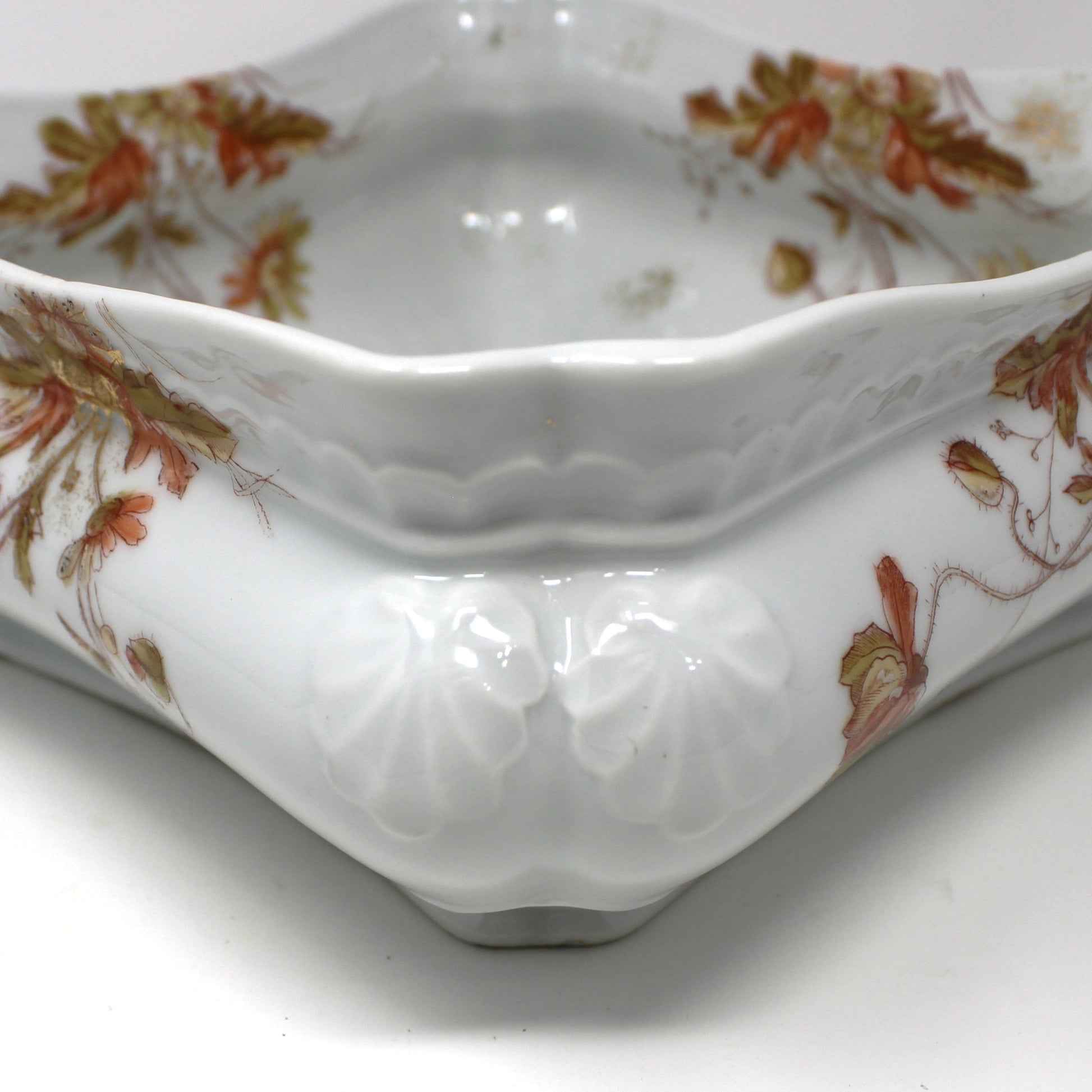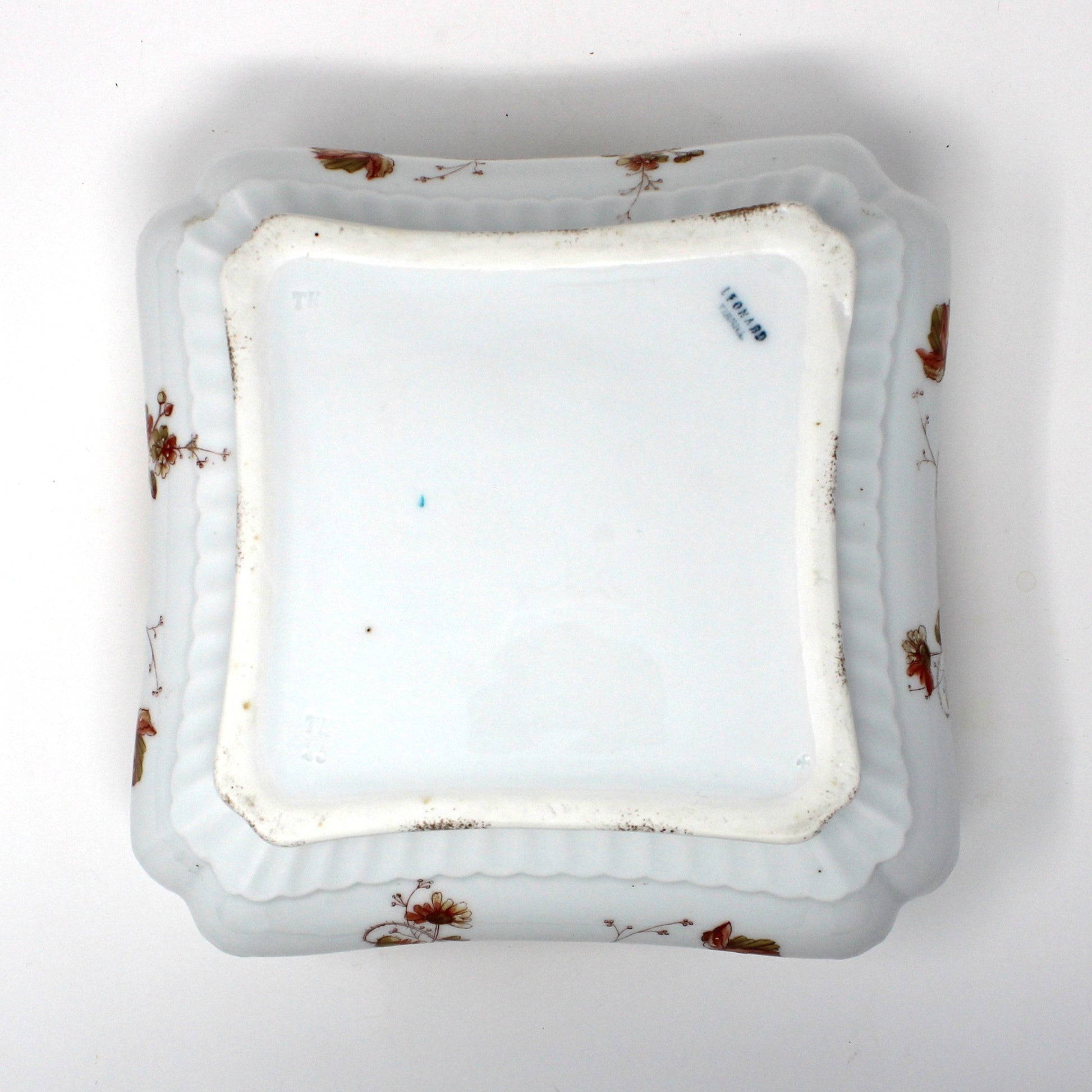 • Details:  An absolutely gorgeous decorative square bowl by the highly regarded factory Count Thun Factory / Thun Klosterle Porcelain.  The hand painted floral design has rust, bronze, beige and gold colors with raised dots (moriage) on the smaller flowers. The bowl is square with embossed shells on the corners and a scalloped design on the base.  It has an impressed TK mark, which we understand was used from approximately 1830 until 1889, although this TK mark has a number 25, possibly indicating 1825.  There's also a blue stamp for "Leonard Vienna", this belongs to "P H Leonard", an importer known to have imported items from the Count Thun Factory, (PH Leonard filed bankruptcy in 1898).  This floral pattern is listed in the replacements website as a Leonard Vienna pattern #7612. Perhaps the PH Leonard company assigned it the number.  This is a gorgeous bowl with a rich history, that has survived in this wonderful condition for possibly 200 years!  A true treasure for a collector, or someone who appreciates valuable antiques and beautiful porcelain.  This is a heavy bowl, price includes shipping.