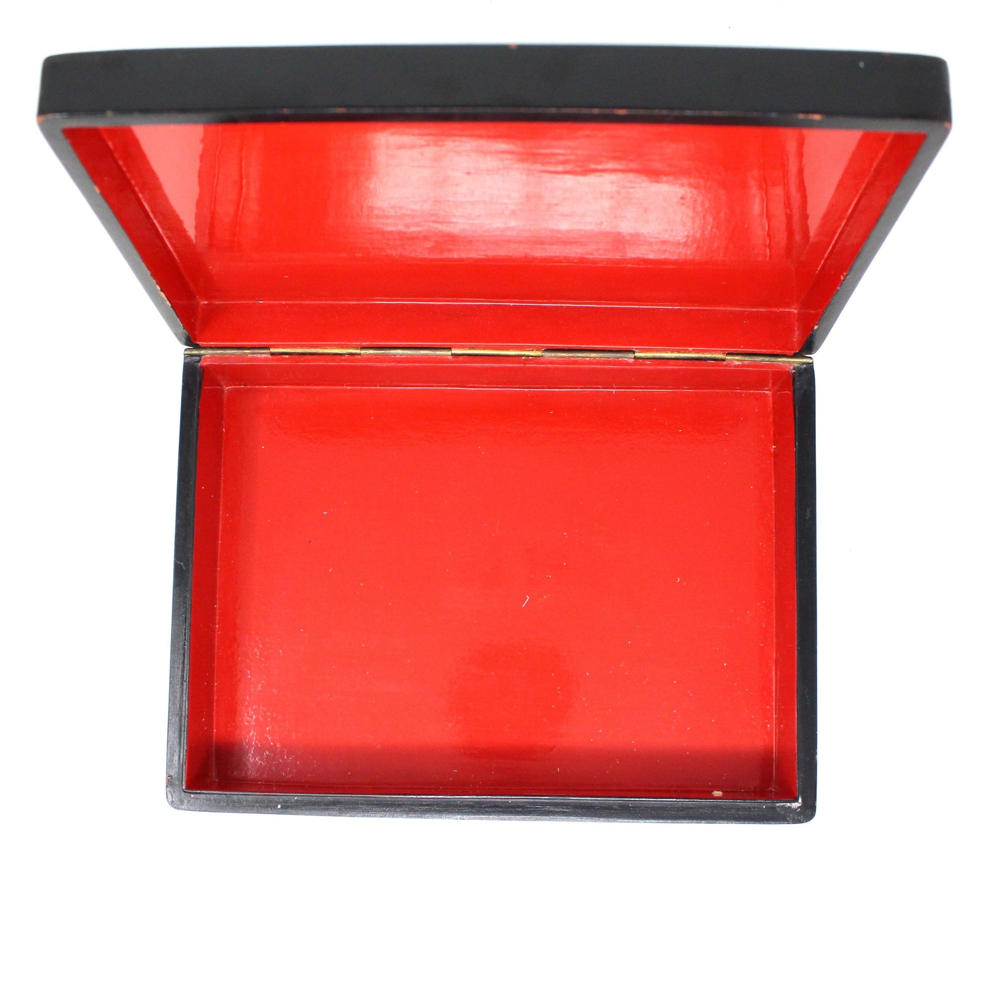 - Condition: Vintage - Used. Very Good Vintage Condition. There is a wear on the corners, sides and bottom. The design on the lid is very good except for an air bubble, only visible when the light hits it just so, photographed for you. There are minor surface scratches on the lacquer as acceptable due to age/use/wear. Please review all pictures and make sure you love this item before purchasing, we can't accept returns. Please remember these are VINTAGE and ANTIQUE items, they are NOT new, every effort has been made to show any scratches, wear and tear and imperfections.
