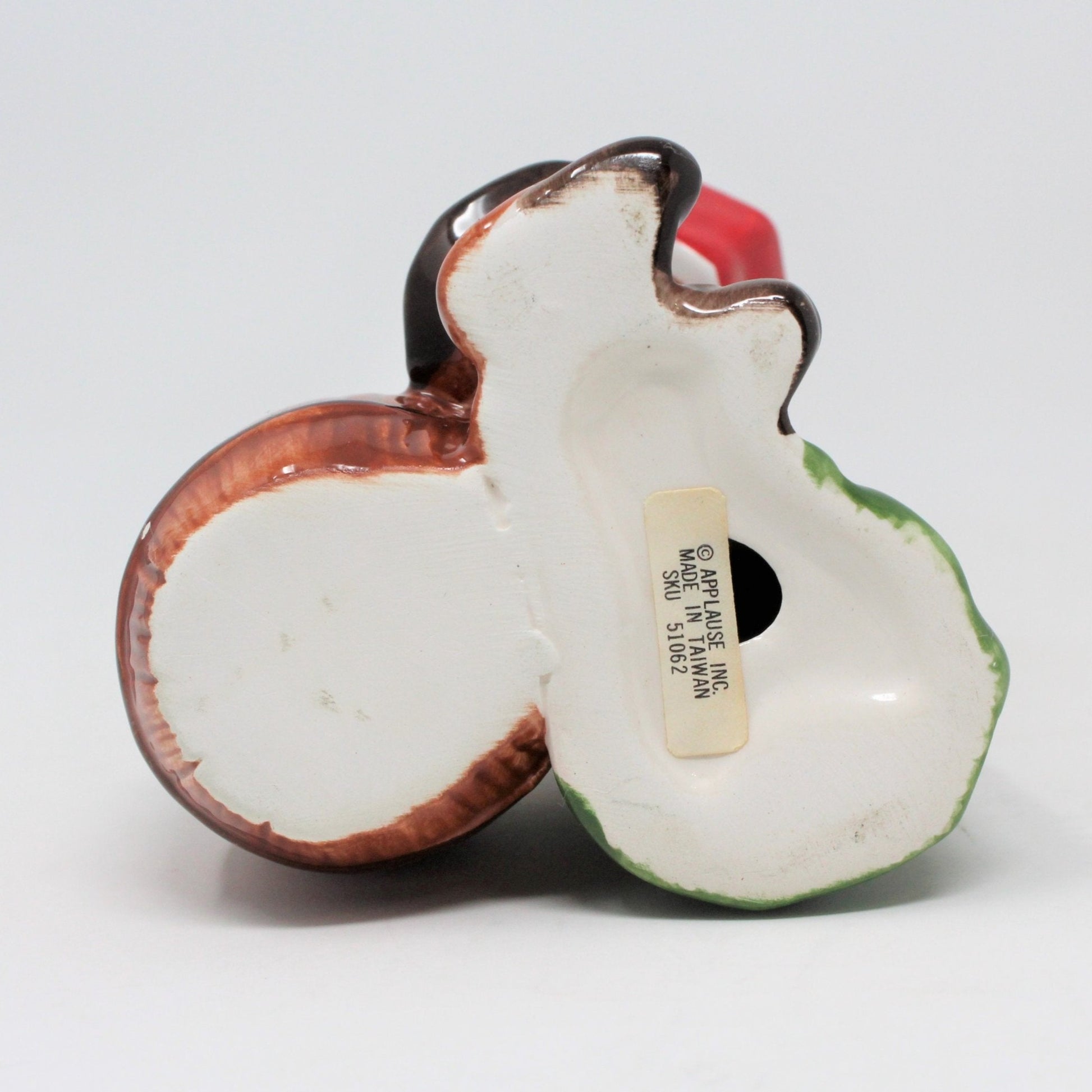 - Details: This is such a cute Christmas toothpick holder. It's shaped like a Victorian caroling couple all dressed up and carrying their Christmas music books. The colors are in tune with the season, red, white and green, her dress is the perfect shade of Christmas green, all finished in a high gloss glaze. It retains its original sticker label that reads: "Applause Inc, Made in Taiwan, SKU 51062. Great little stocking stuffer. Could also be used as a candle holder for a single taper candle, adorable! We also carry the matching teapot, (while supplies last), it's a Victorian house with this same couple standing at the doorway (see last photo).