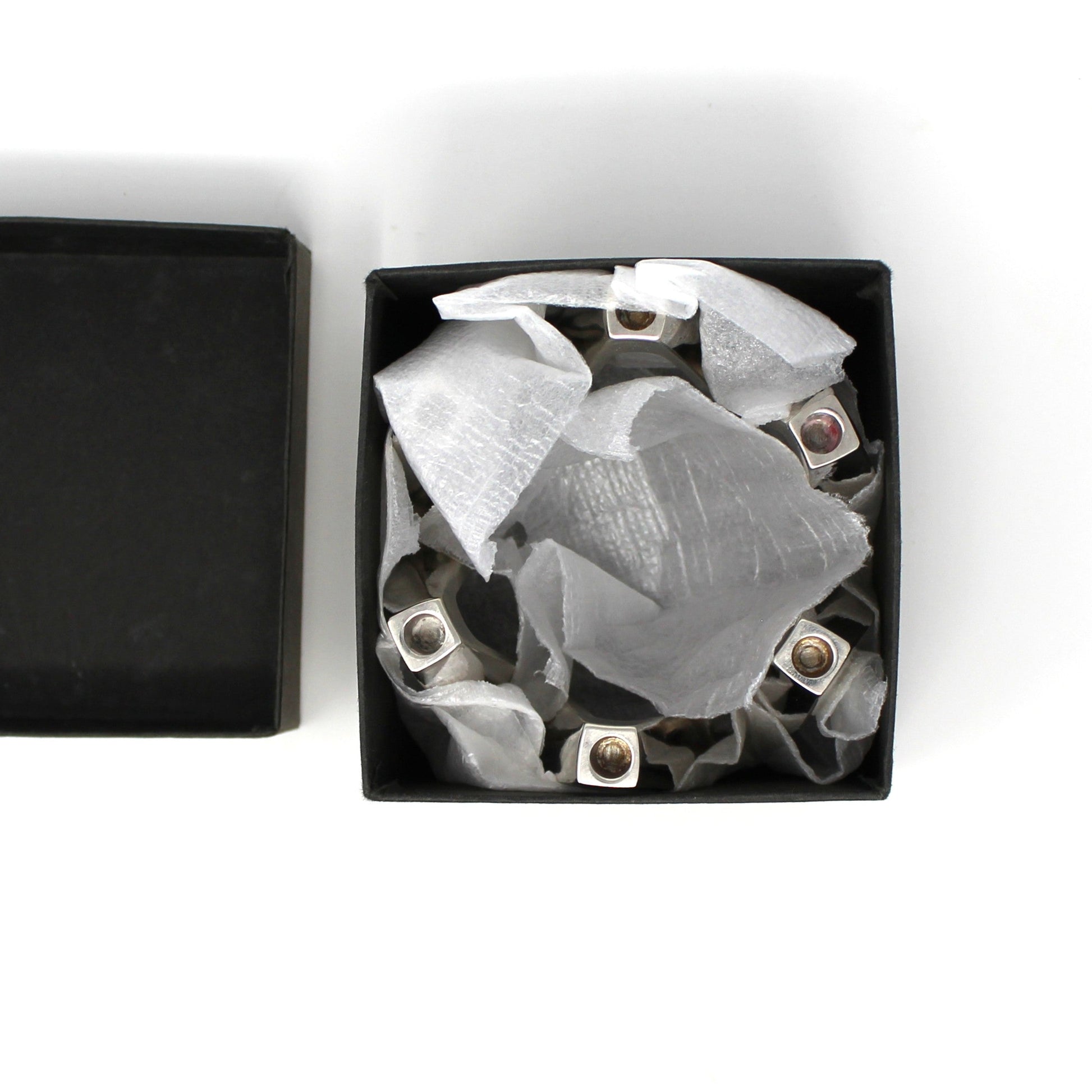 - Condition: Vintage - Used. Very Good Vintage Condition. As with all used metal pieces, there are minor surface scratches, marks and minor discoloration, all acceptable due to age/use/wear, minimal on this piece. Retains original box. Please review all pictures and make sure you love this item before purchasing, we can't accept returns. Please remember these are ANTIQUE and VINTAGE items, they are not new, every effort has been made to show any scratches, wear and tear, and imperfections.