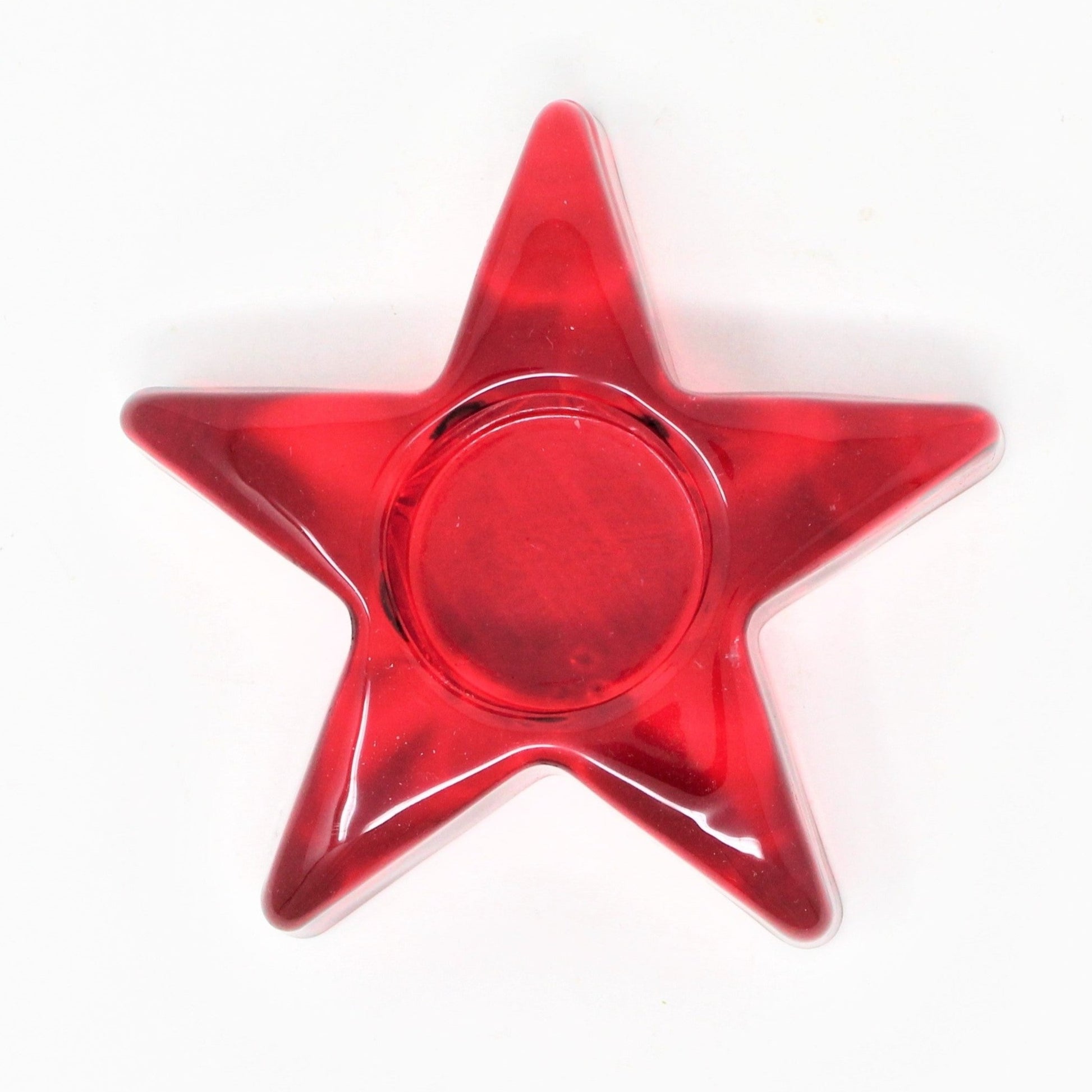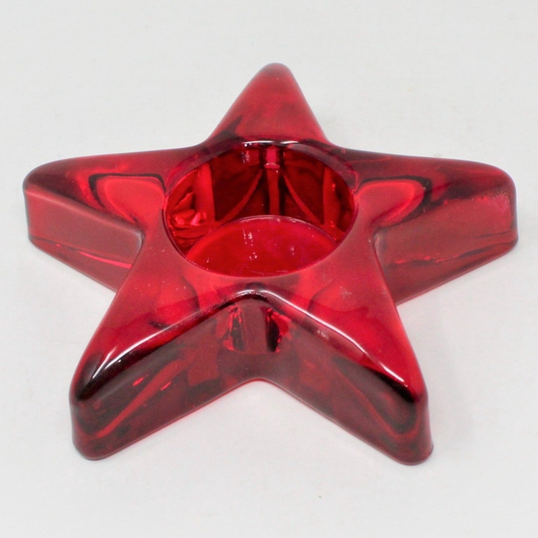 - Star Shaped Candle Holder, Red Glass, Tealight Holder, Patriotic, Christmas Decor, Home Decor, (Discontinued)