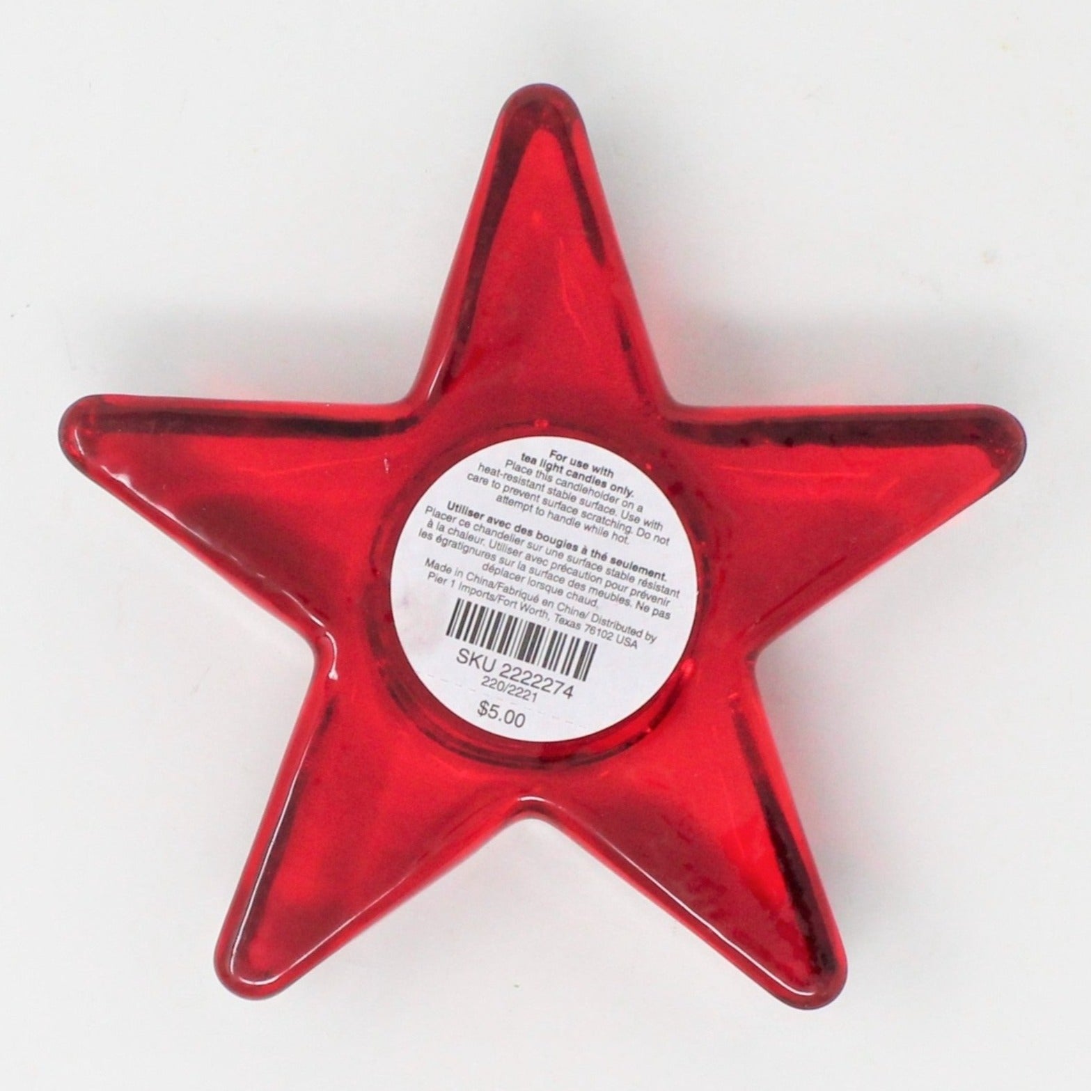 - Details: From Pier 1 Imports, this heavy glass, red star-shaped tealight holder can be a great addition to your 4th of July, Memorial Day or Christmas celebrations! A pretty addition anywhere you display it. Fits a tealight candle.