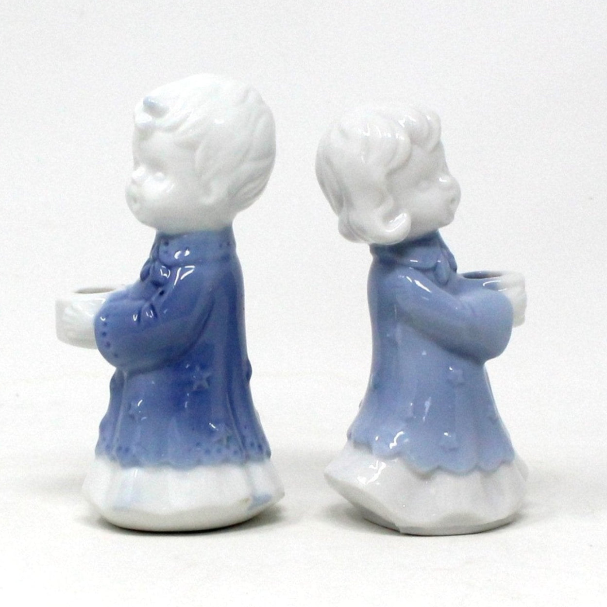 - Vintage Figural Candle Holders, Christmas Carolers, Set of 2 Mini Taper Holders, Blue & White Porcelain, Mid Century Holiday Home Decor, Vintage Collectibles, Boy & Girl Figurines, (Discontinued)