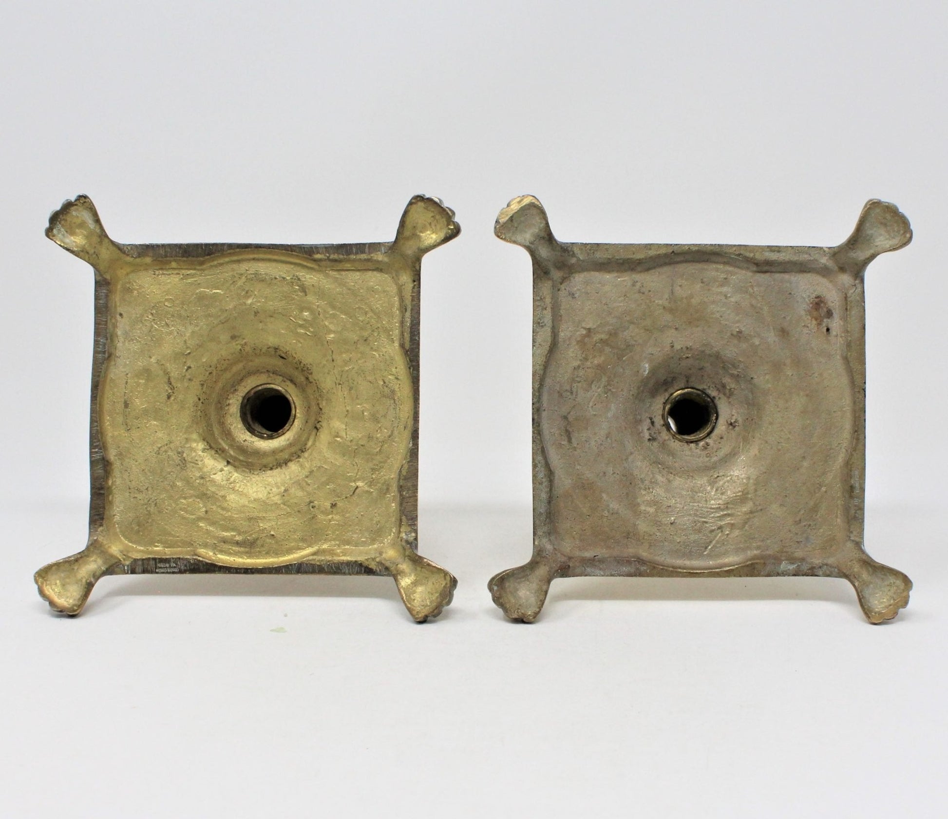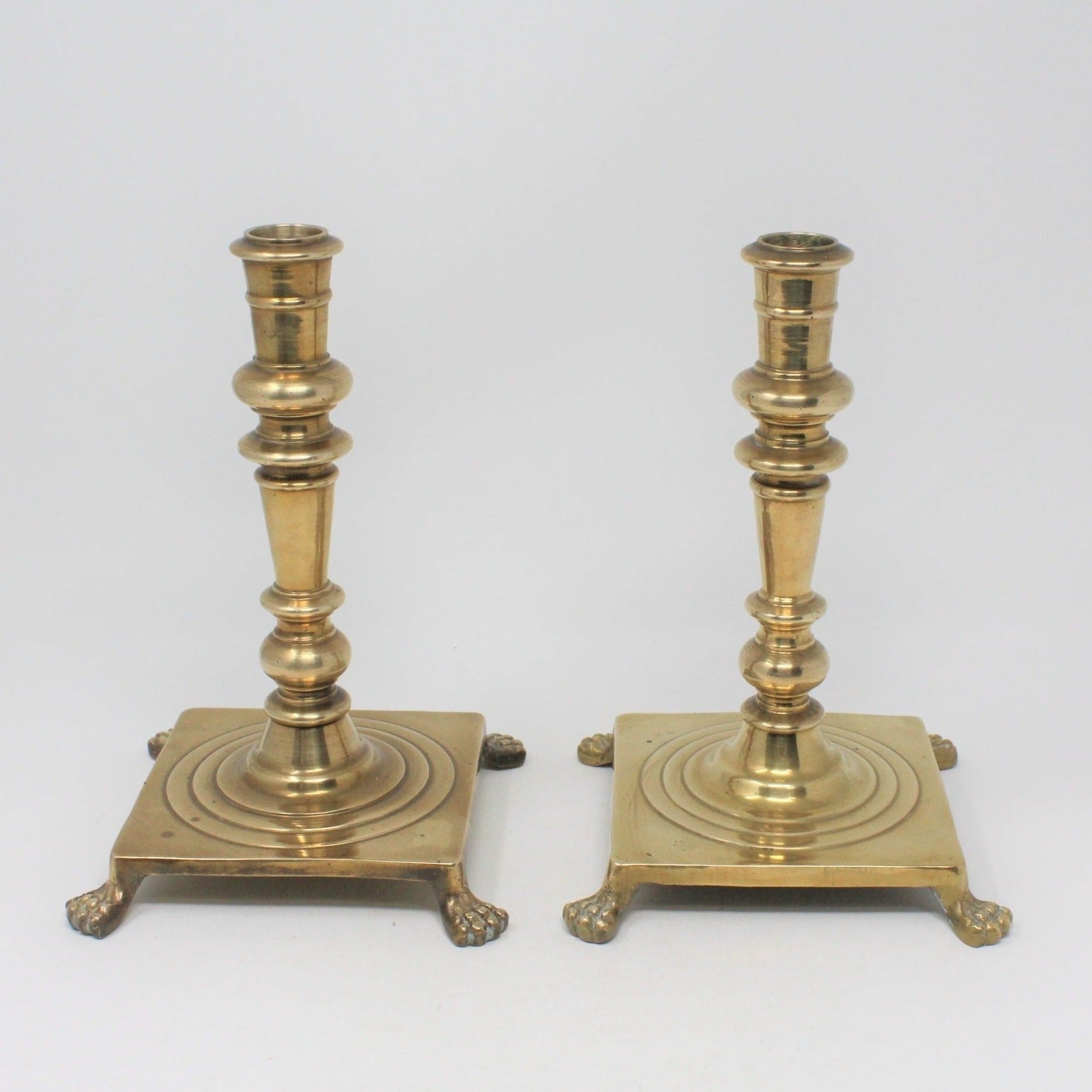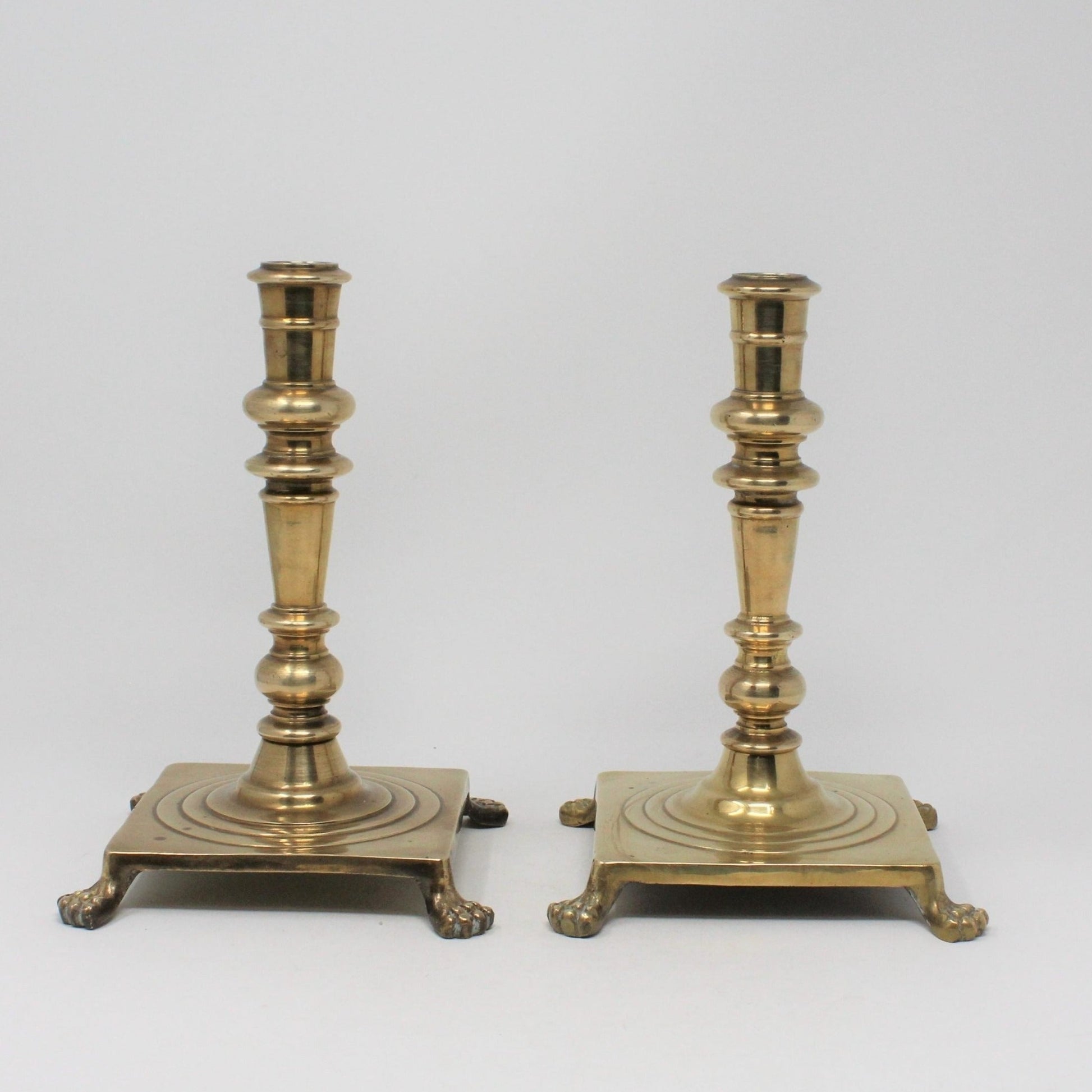 - Vintage Brass Candle Holders, Lion's Claw Feet, Square Base, Elegant Home Decor, Footed, Set of 2, Georgian or Colonial Baroque Styling, Regal Home Decor, (Discontinued)