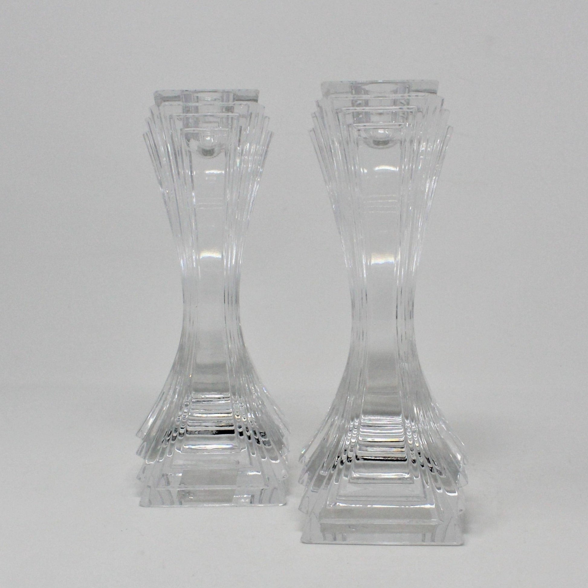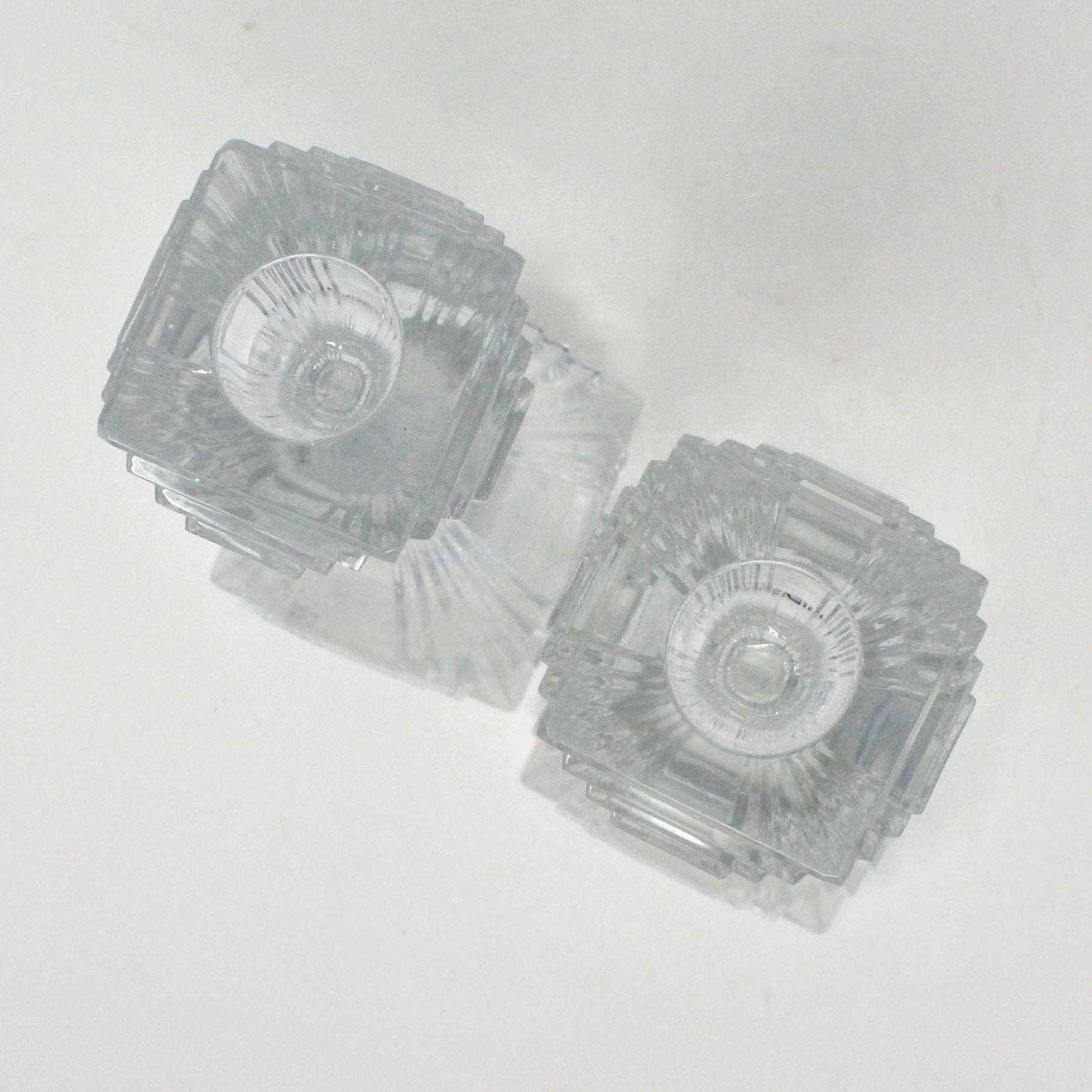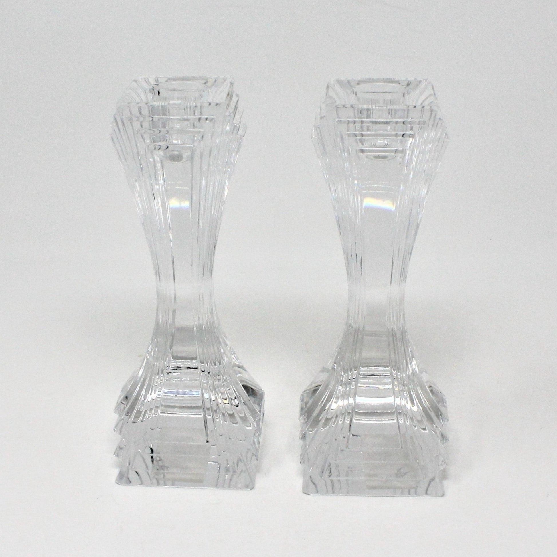 - Crystal Candle Holders, Mikasa Crystal Taper Holders, Home Decor, City Lights Pattern, Czech Crystal, Cut Crystal, Elegant, Geometric, Art Deco Style, (Discontinued)