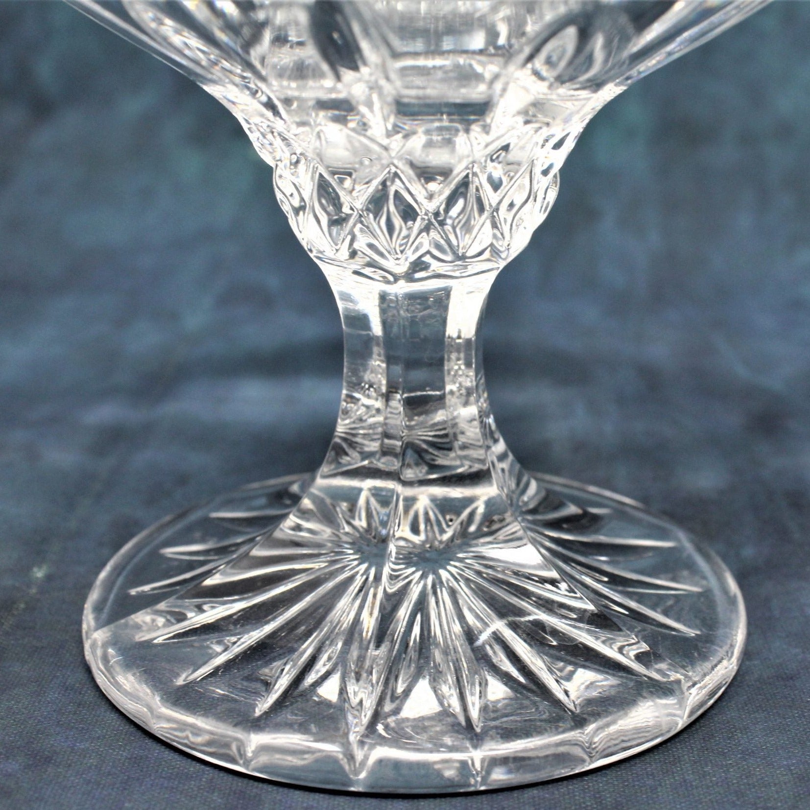 - Details: This is a gorgeous 24% lead crystal by Nachtmann. This is a very intricate pattern with gorgeous diamond and petal-like cuts on the bobeche and oval cuts around the rim. The bottom foot has a large starburst and the stem has square cut sides. These are leaded crystal and reflect the light beautifully! Gorgeous in any setting, we think these would look stunning during the holidays! A very elegant gift!