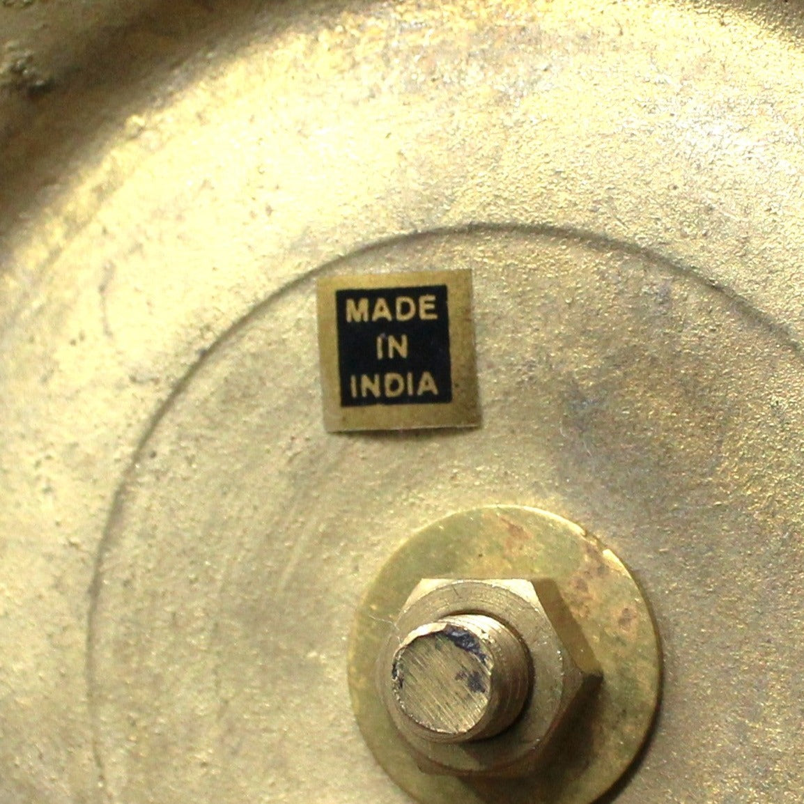 - Details: These luxurious sconces exude elegance with their Mother of Pearl inlay design and long brass columns. Their unique design and materials make them a standout piece, so pretty, you don't even need to add candles to show these off, but if you'd like to add candles, these are taper sized. Both have a hook area on the back to hang on wall. They both retain their original stickers which read: "Made in India". Set the mood with their vintage charm and add a touch of sophistication to any room. Perfect for refined and tasteful home decor. There is a condition issue, please see below.