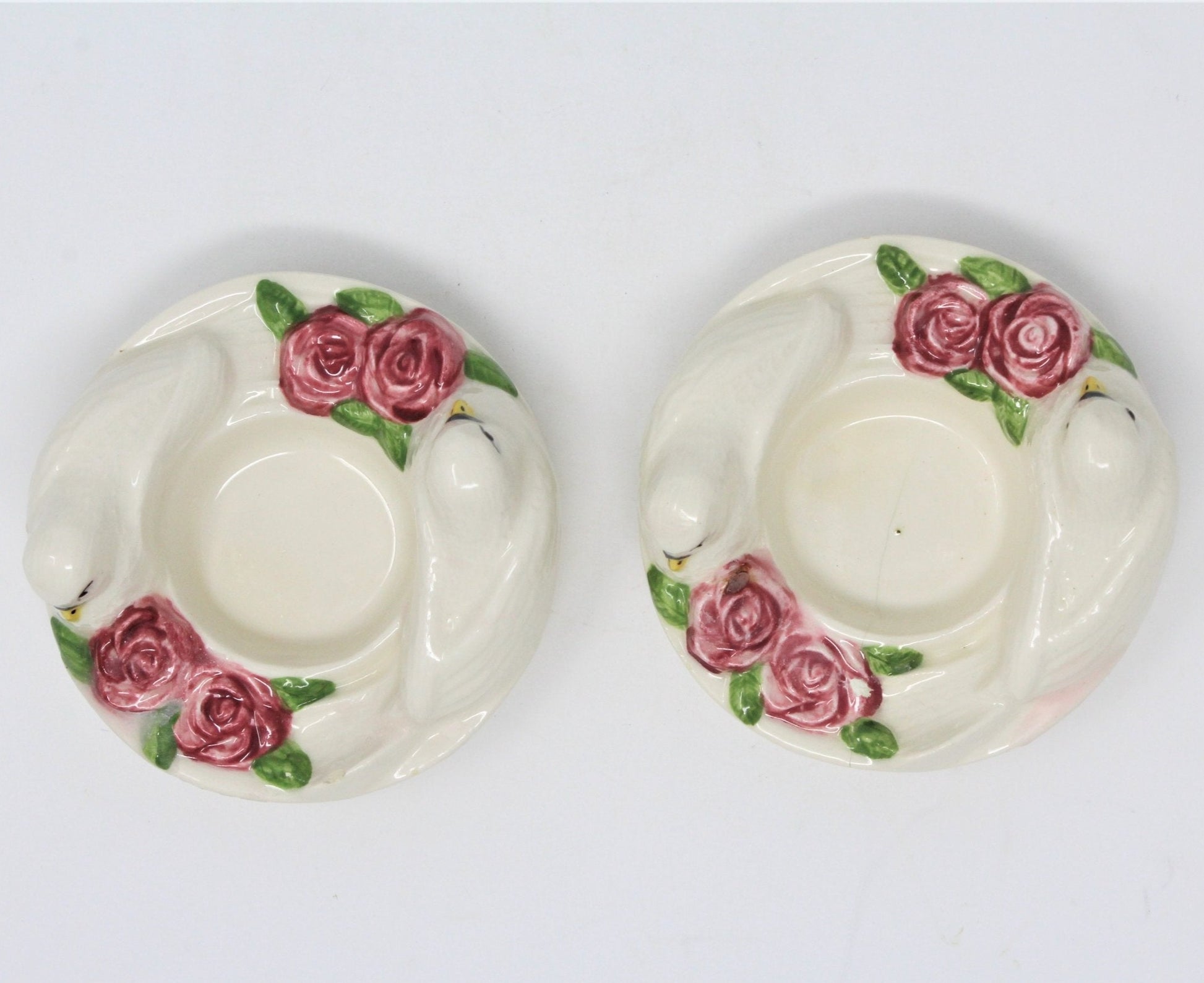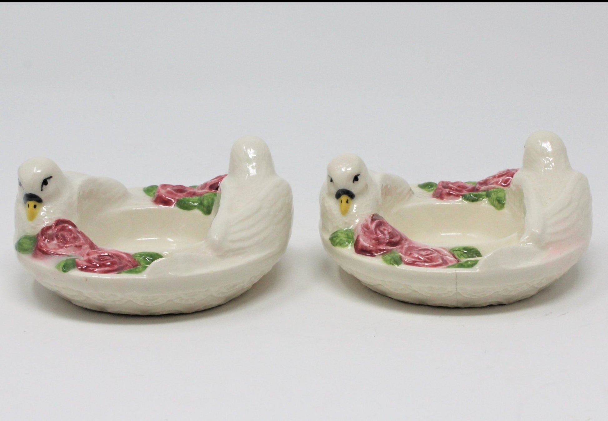 - Vintage Tealight Holders, Doves and Roses, Hand Painted Ceramic, Set of 2 (Discontinued)