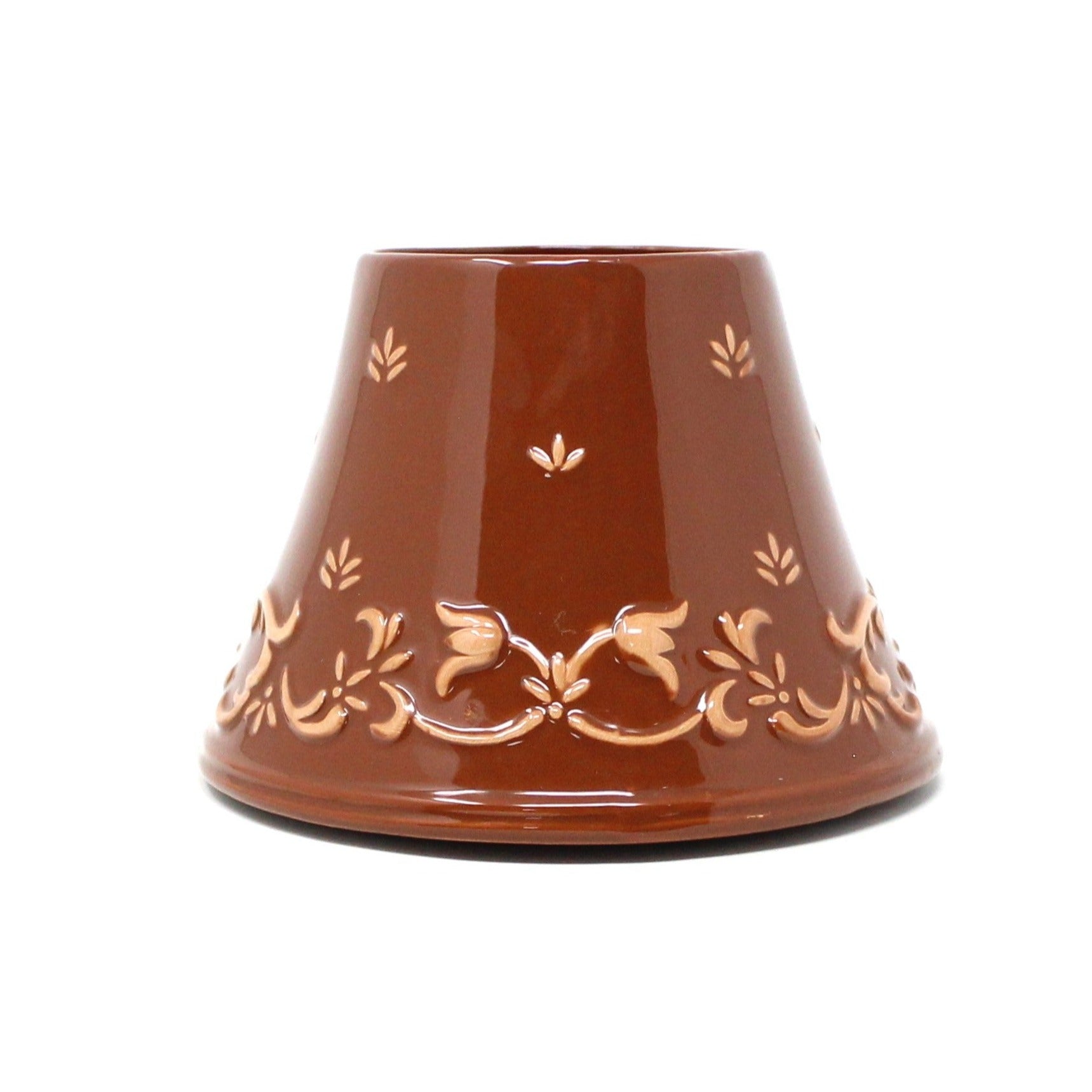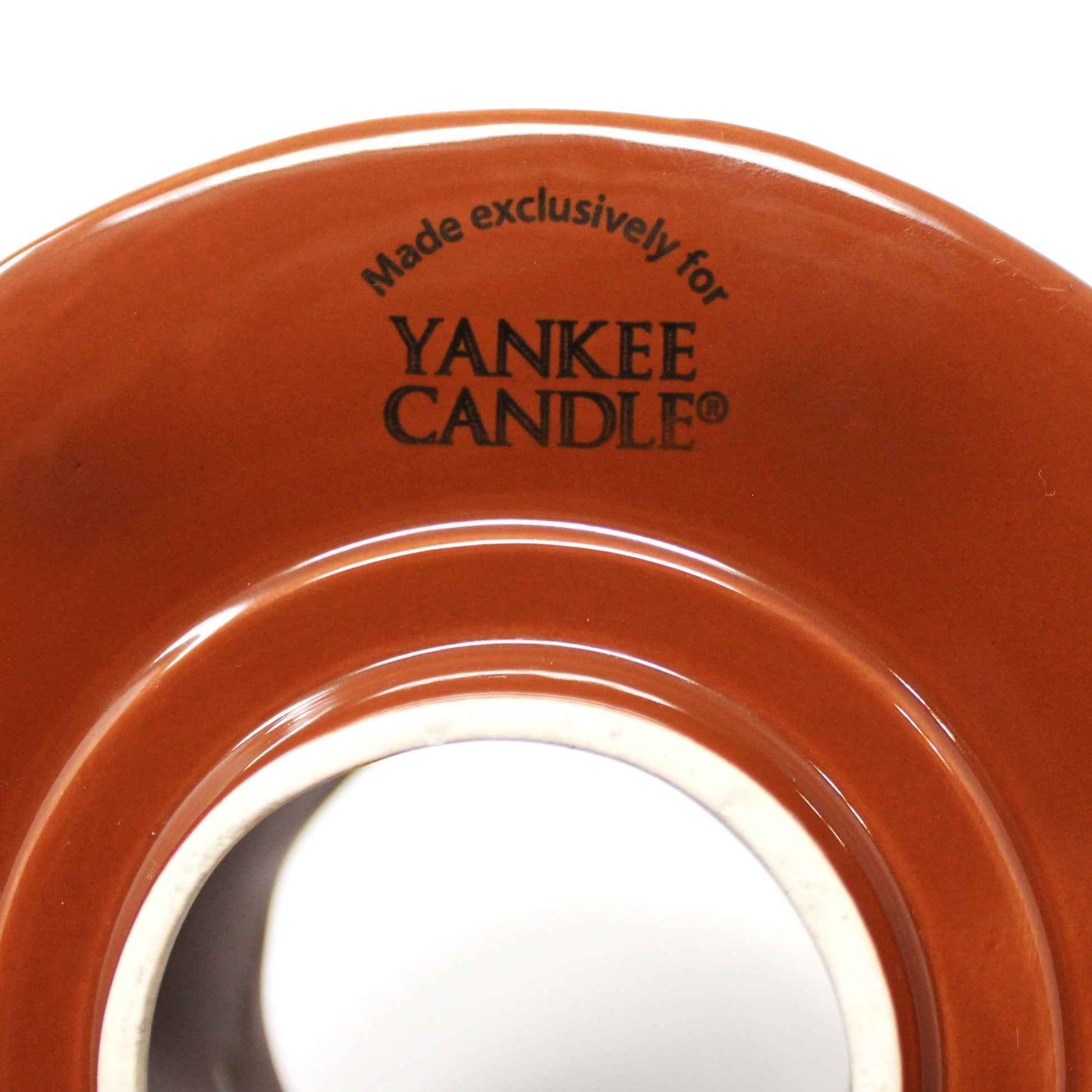 Candle Lamp / Shade Jar Topper with Underplate, Yankee Candle, Brown with Tan Tulips, Ceramic, Vintage