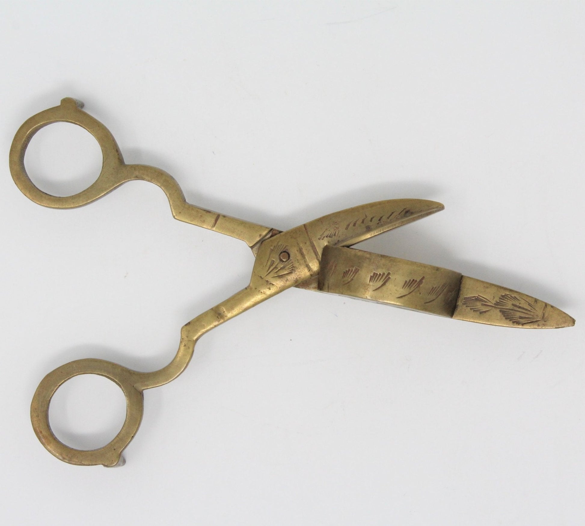 Candle Wick Trimmer Scissors, Carved Brass, India, Vintage