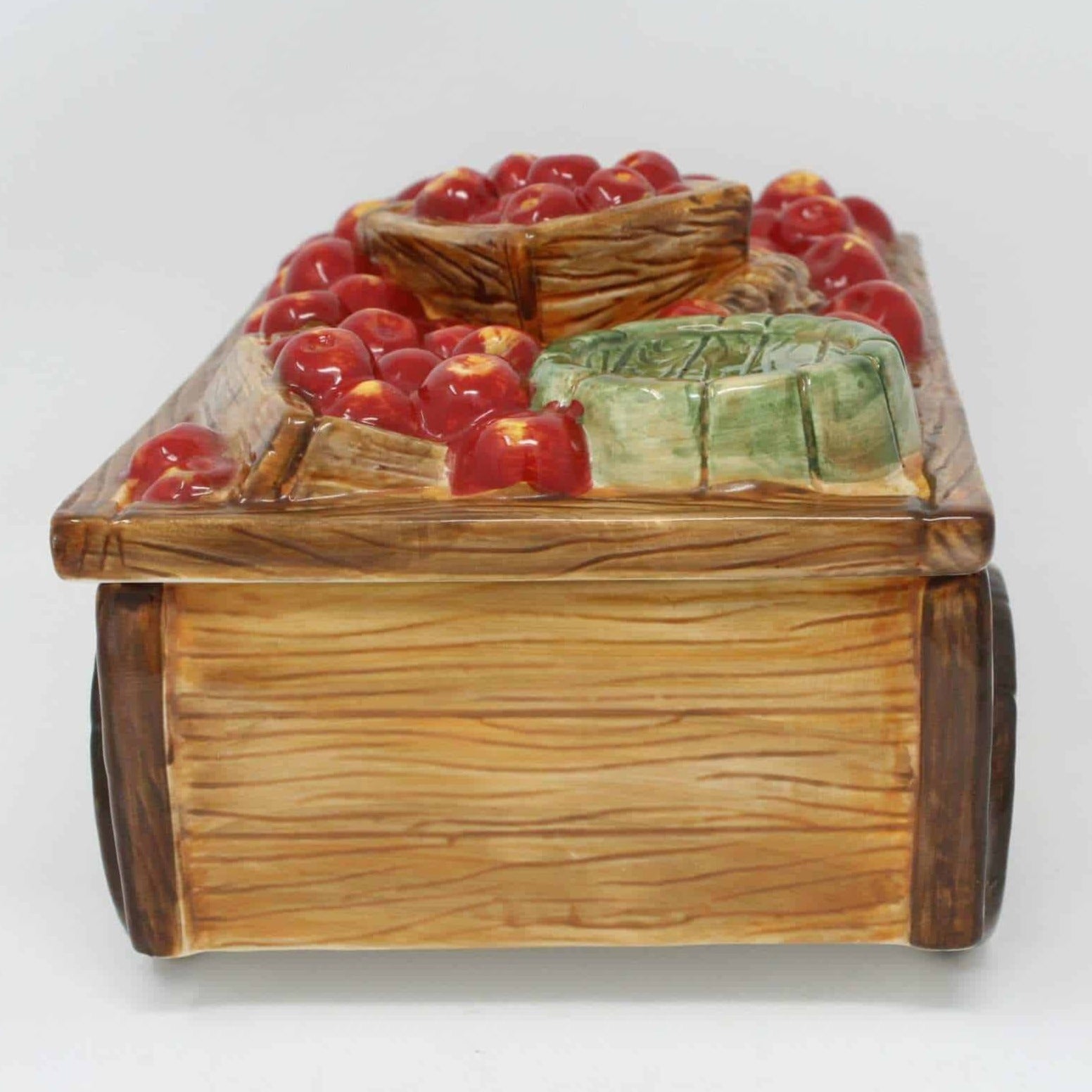 - Details: This is such a cute and original piece! It is by Yankee Candle, shaped like an Old Fashioned Apple Cart. The lid opens to reveal 6 little tealight holders shaped like red apples. Those can be removed and scattered around the room to form a very special light display. The detail on this piece is perfect, there is a big barrel, some crates with apples, the wheels on the cart, even the wood grain around the cart is done to perfection. It retains the original sticker and has felt pads to protect your furniture. This will look great year round in a country or farmhouse styled home. Perfect for fall decor, and by taking out the "apples", it can also be used as storage for small items.