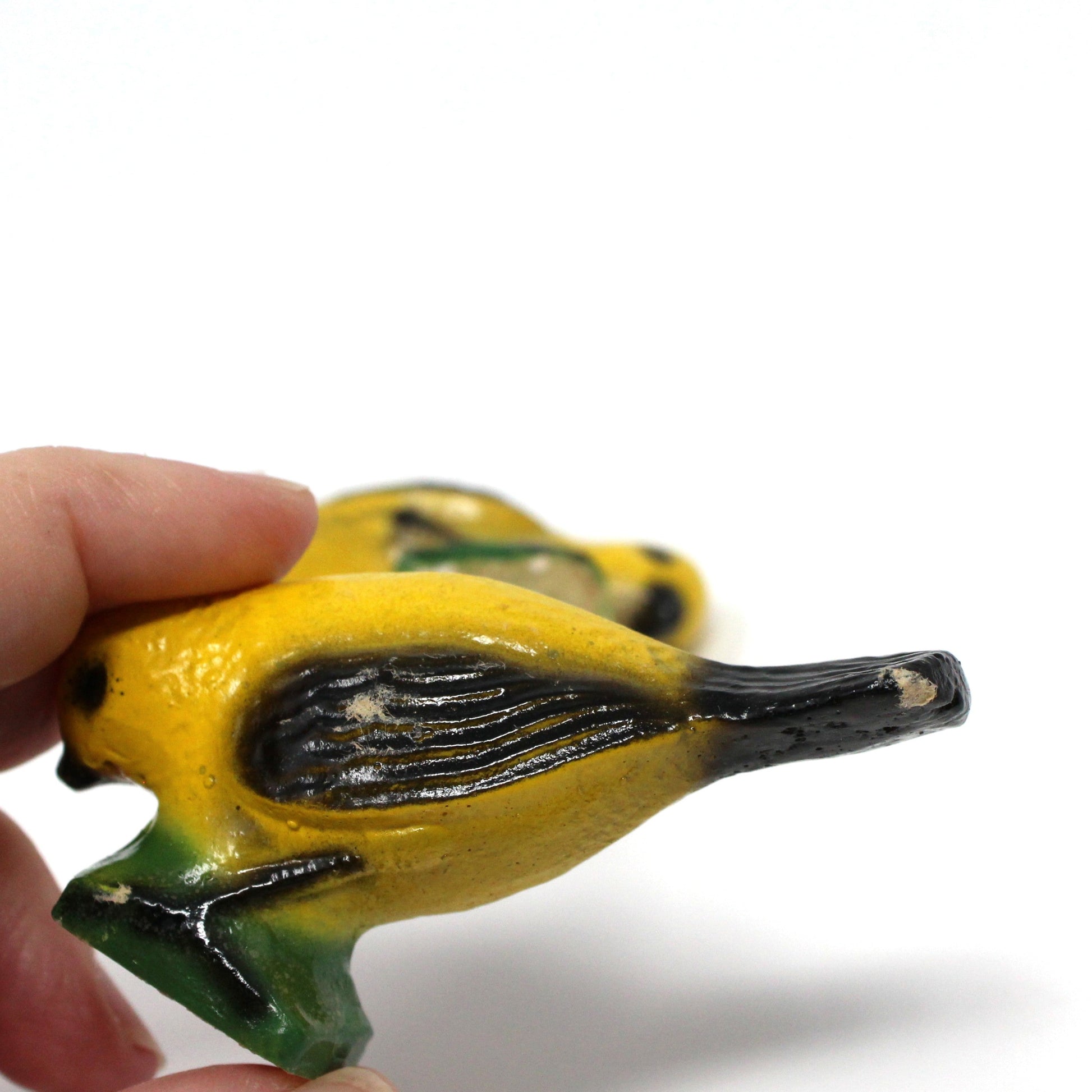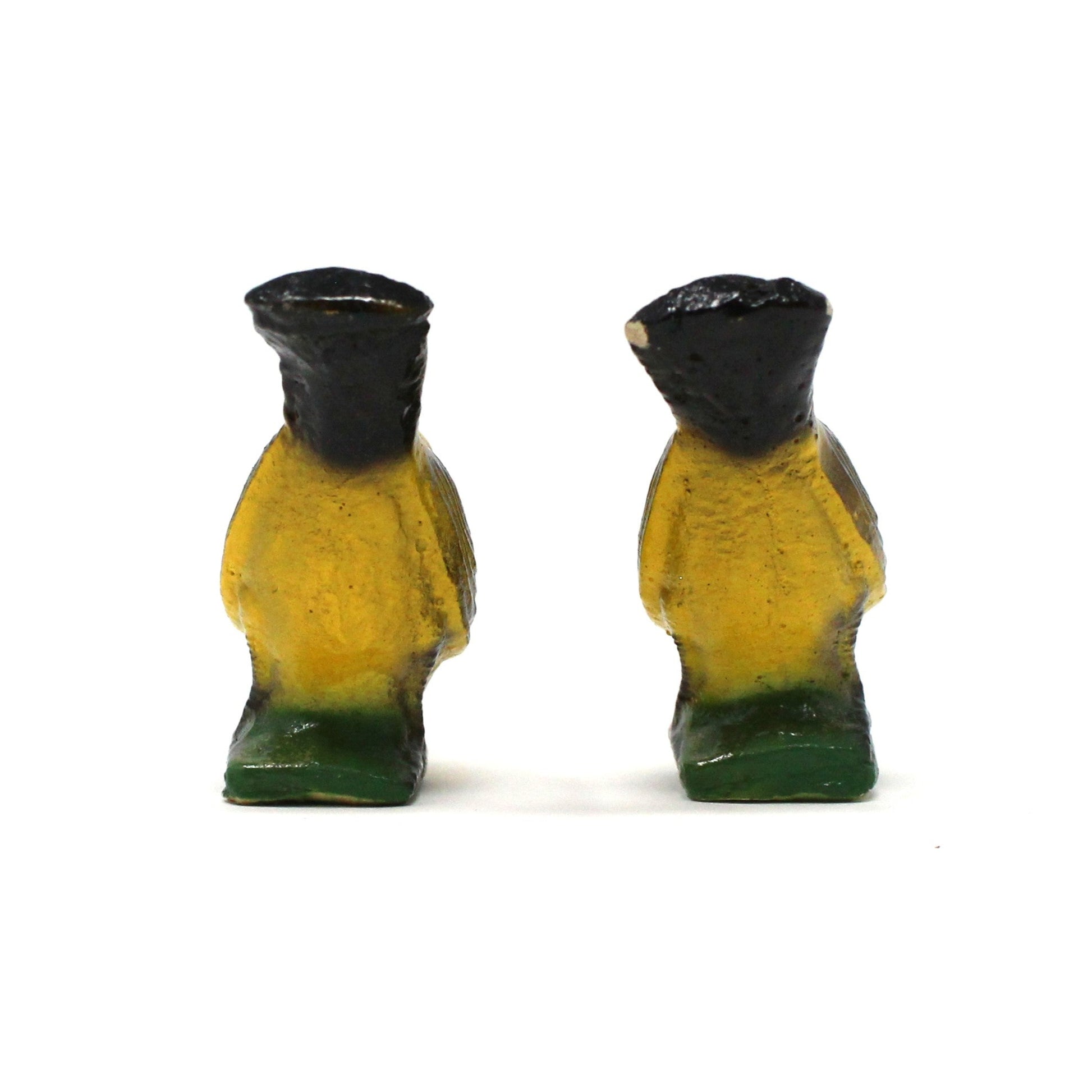 - Details: Absolutely adorable chalkware bird figurine to collect or to decorate your home! This is a set of two bird figurines, standing on green bases. They still retain their bright colors, and are in great condition for their age. These are extremely rare, they were given away as carnival prices in the 1930's - 1940's. Although there are many chalkware birds for sale, these older, small ones, are very hard to find, a great gift for a chalkware collector!