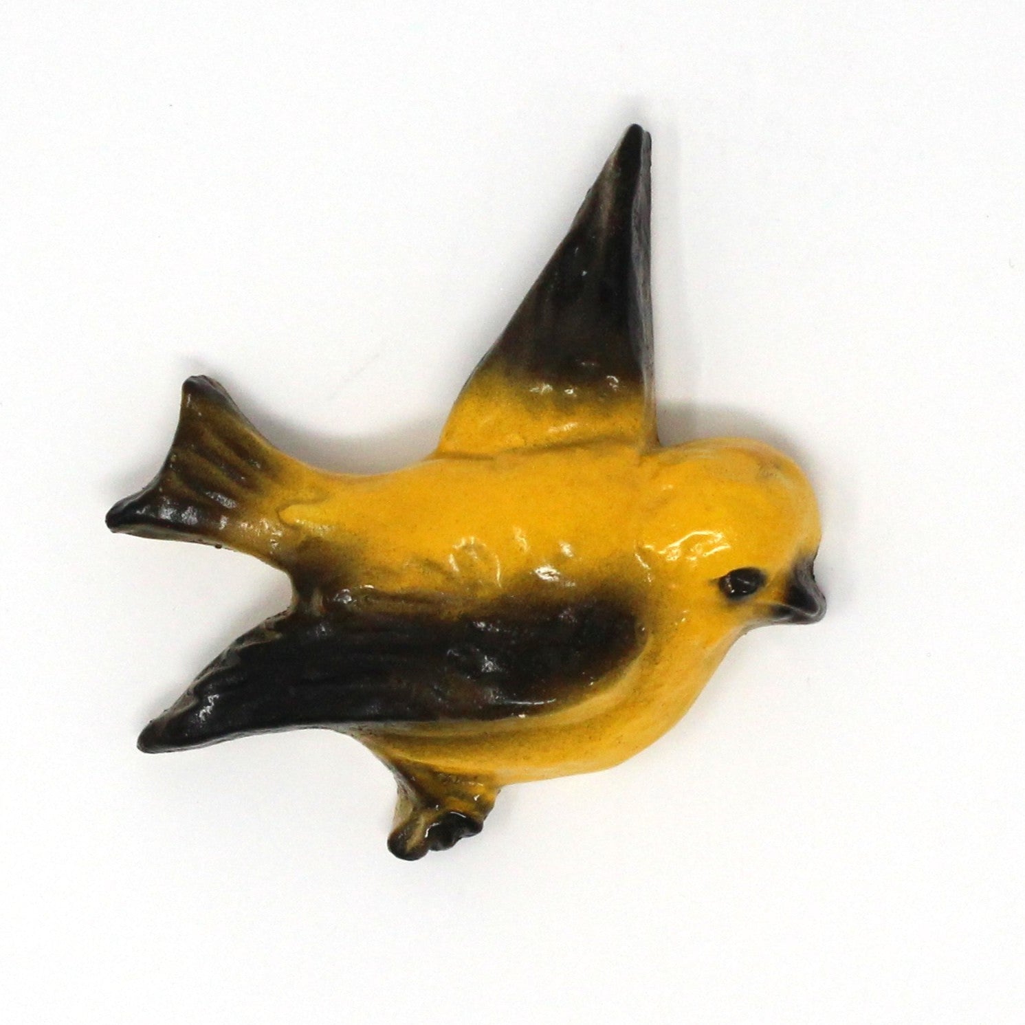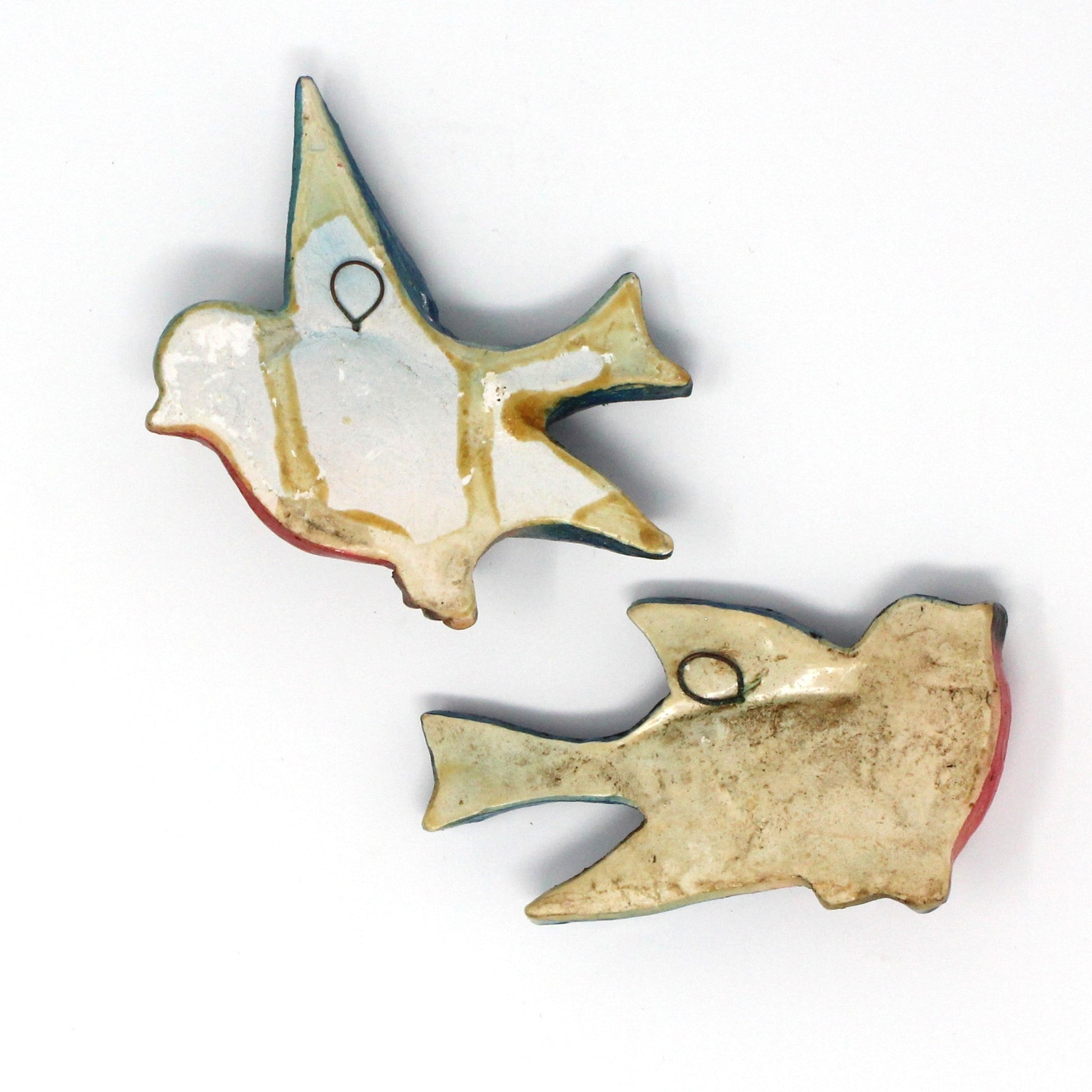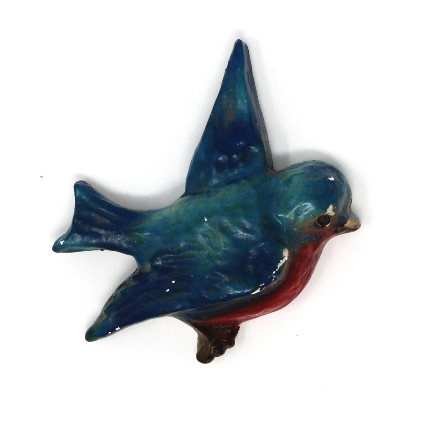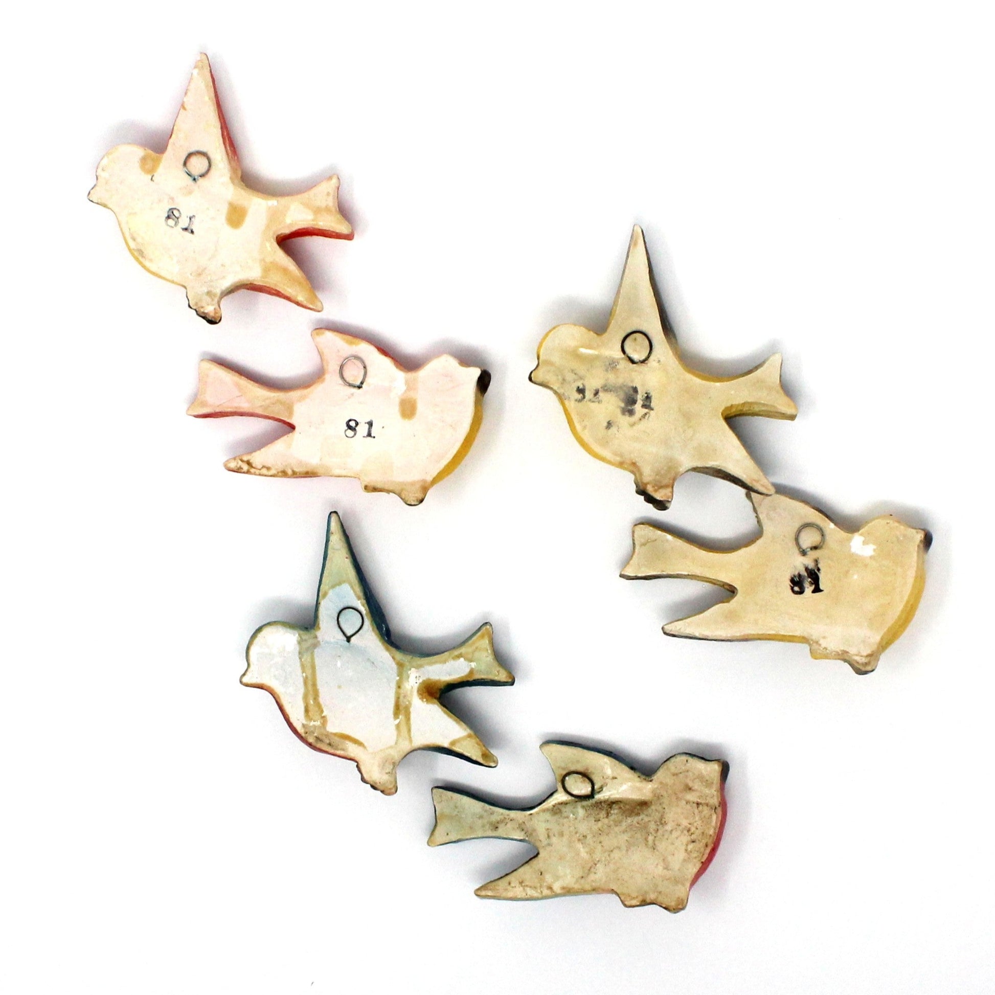 - Details: Absolutely adorable chalkware birds in flight to decorate your home! These are extremely rare, set of two birds, still retain their bright colors, and hook on back for hanging. We believe these were made in Great Britain in the 1950s and 1960s because these makers registered their wares under the Registered Designs Act of 1949. An easy way to do this was to assign the registration number on the item at the back, with a small number stamp. These are all stamped with a number, therefore, would make sense they are English, but only speculation on our part, fun to learn about these pieces. Perfect for Summer display or as a unique touch in any room. Although there are many chalkware birds for sale, these older ones are very hard to find, a great gift for a chalkware collector!