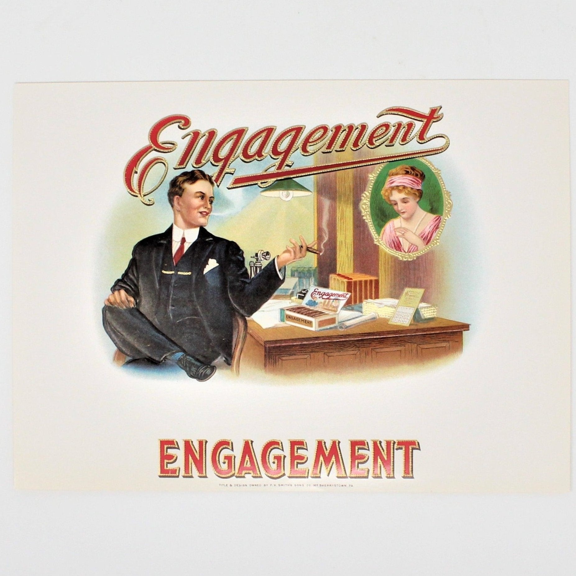 - Vintage Cigar Box Label, Engagement Brand, Embossed & Gilded, Original Lithograph, Tobacciana, Frameable, Man Cave, Cigar Smokers Gift, F.X Smith's Sons, Vintage Collectibles, (Discontinued)