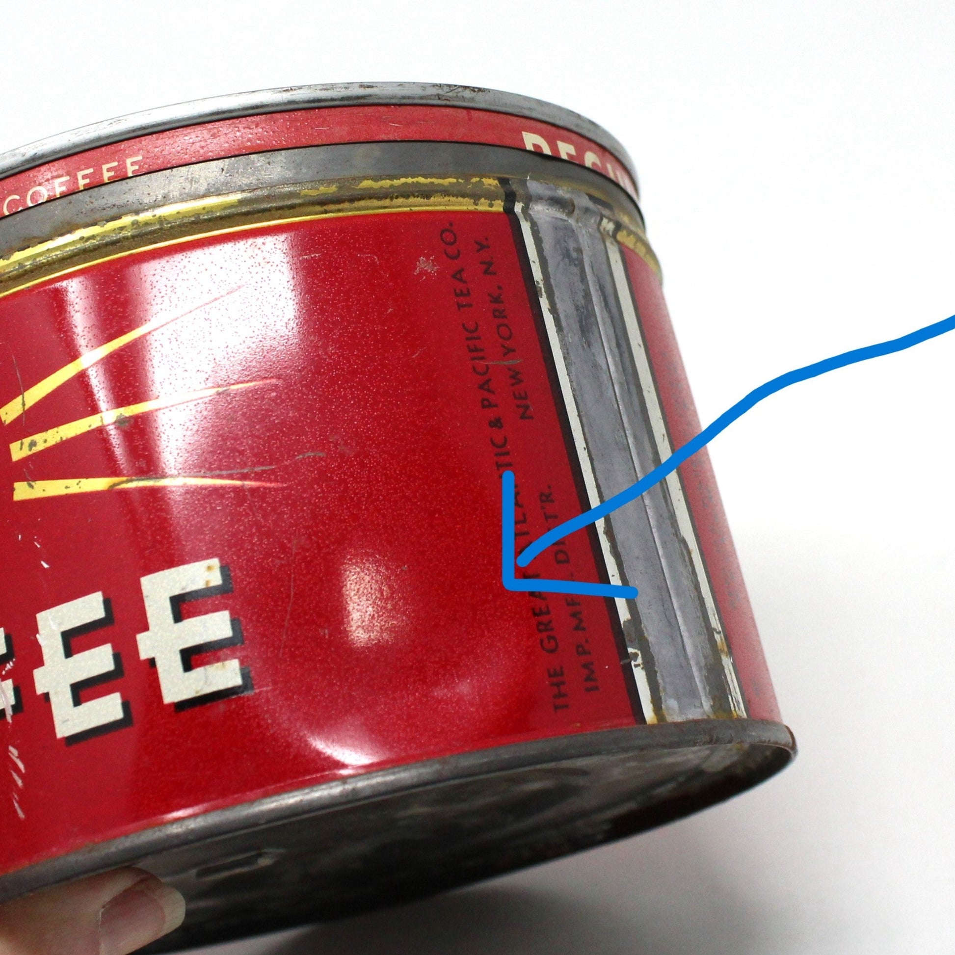 - Details: This A&P Coffee Tin Can is a wonderful collectible, becoming harder to find. It is a 1 pound key wind style can, (this style of opening cans started circa 1917 and it's still in use for some food items). The bright red color, and old fashioned A&P letters makes this a wonderful can to display and a great collector's item! This can is empty.