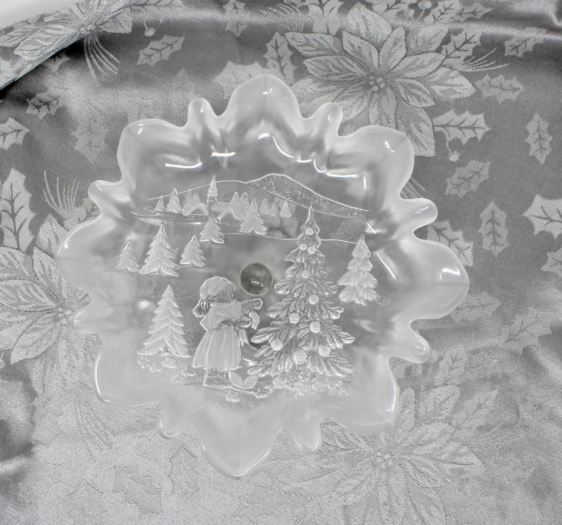 - Vintage Pedestal Dish, Frosted Glass Footed Bowl, Bon Bon Dish, Compote, Mikasa Holiday Classic / Christmas Story, Christmas Decor, Holiday Serveware, Serving Dish, Girl with Christmas Tree, (Discontinued)