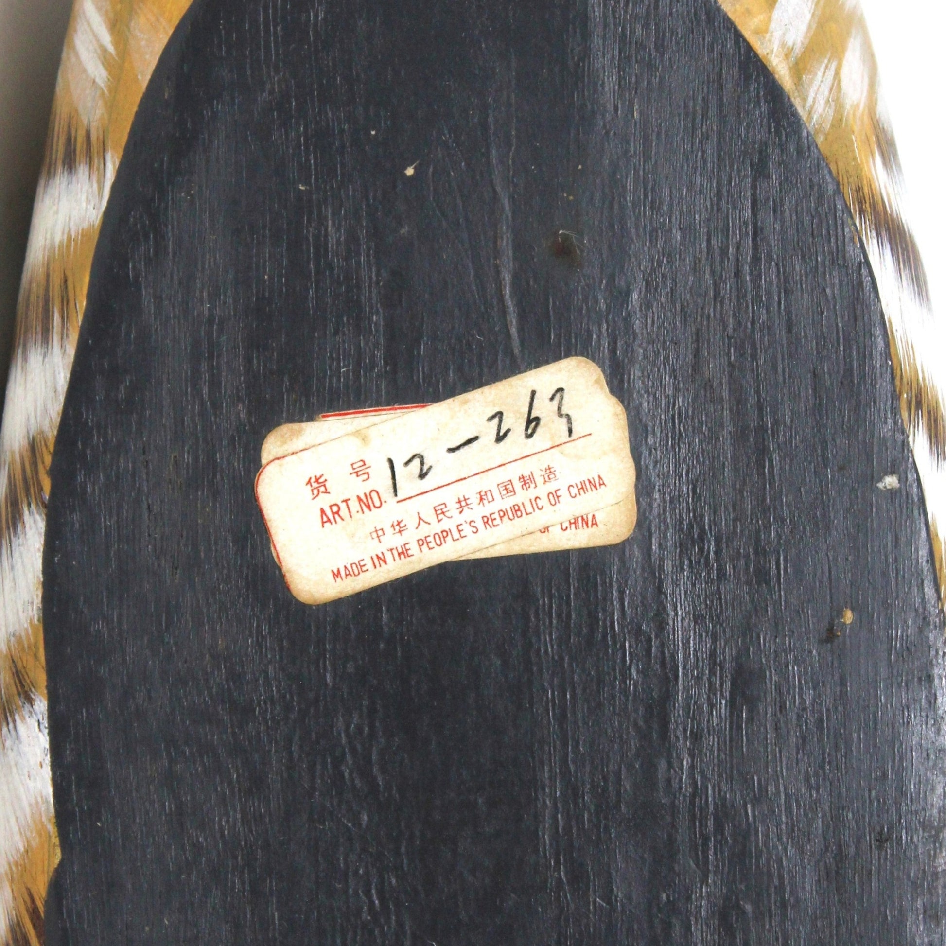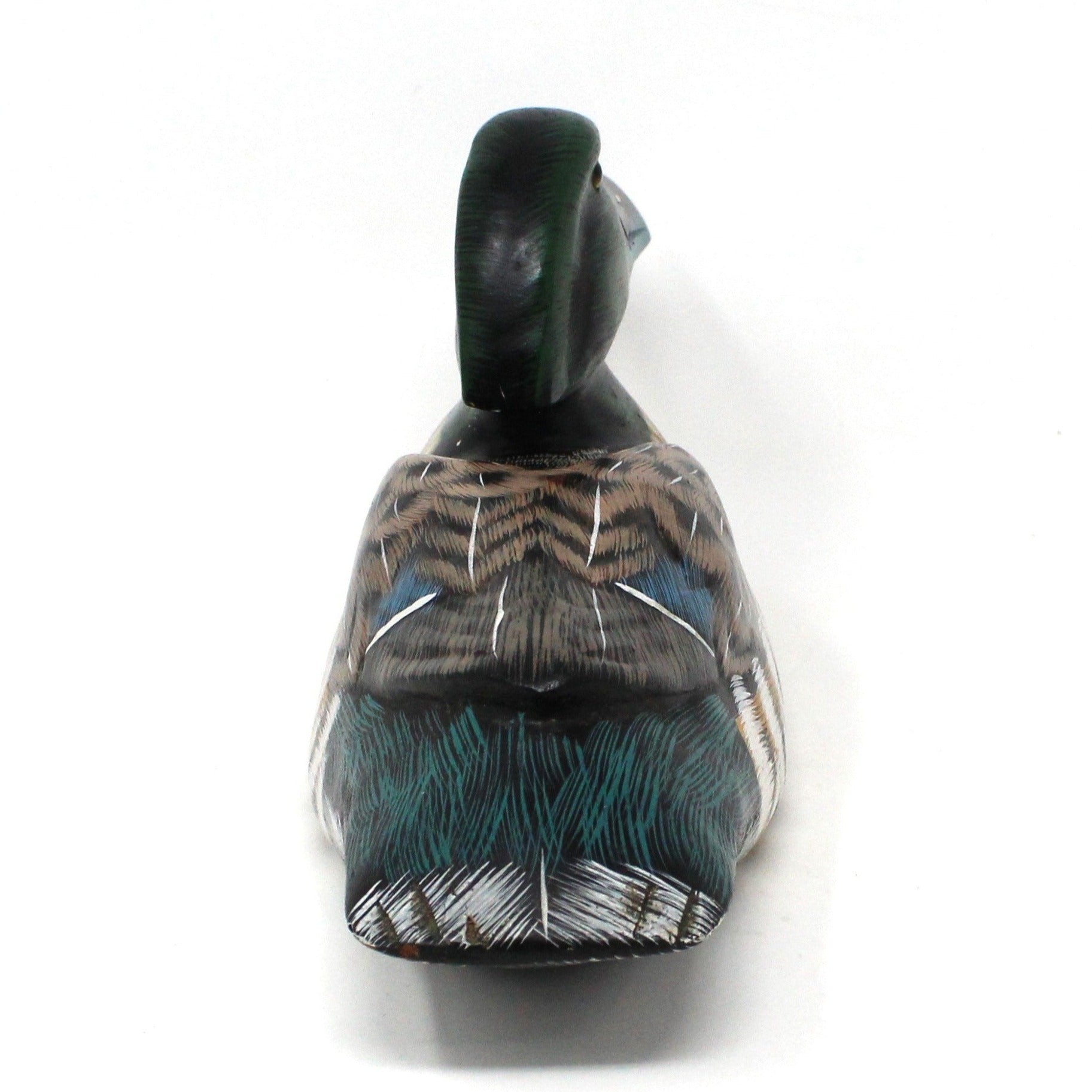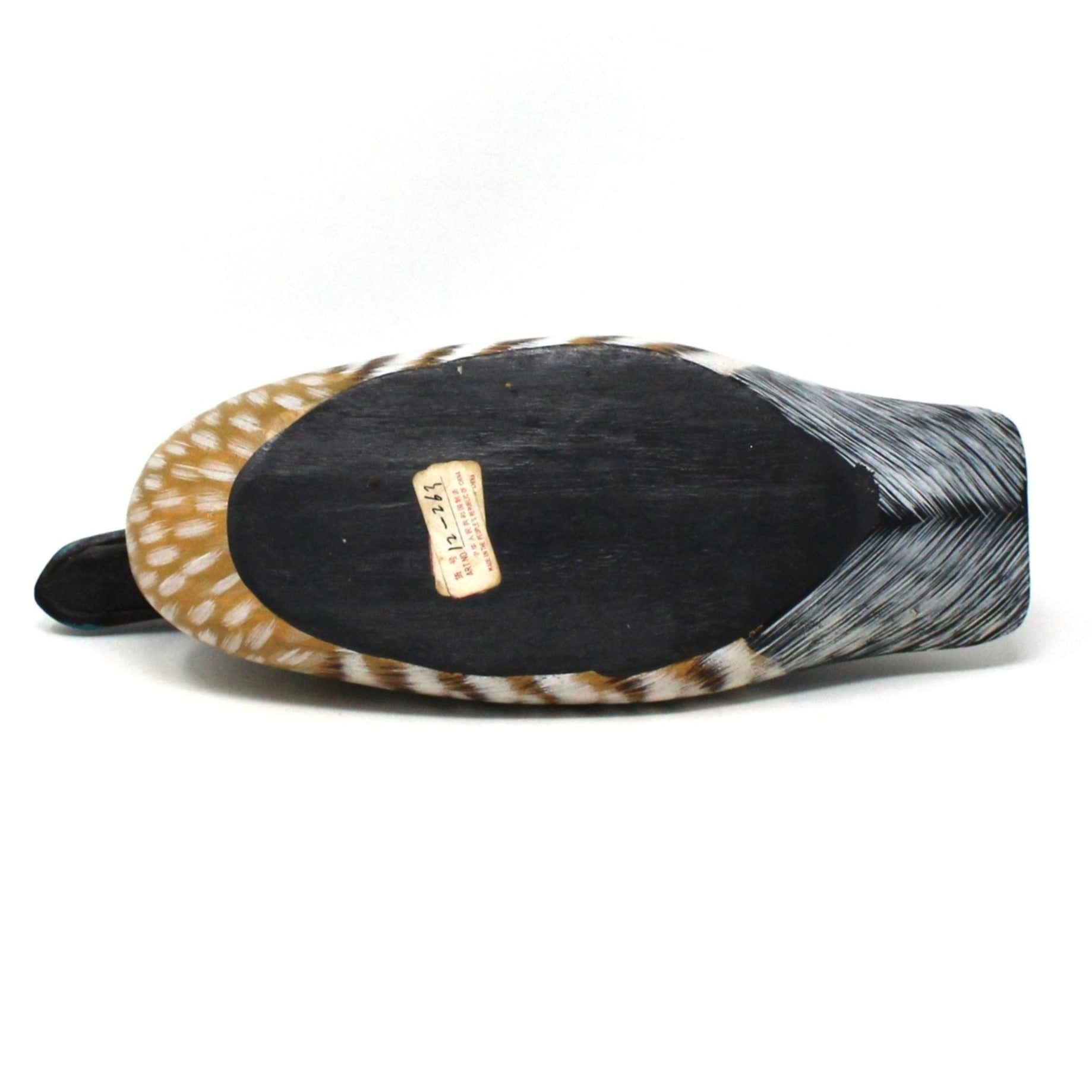- Details: This is beautifully made duck decoy. While these are decorative items, and not intended for actual duck hunting, it's fun to try and figure out the type of duck this represents. This one looks like a male 'Greater Scaup', those ducks have dark green heads, blue bills, checkered back, and white sides, which this duck seems to imitate rather beautifully. The details on this piece are excellent, the colors, the markings, everything on it shows attention to detail. This one has the original sticker that reads: "Made in People's Republic of China", but we know these came from Taiwan, the Chinese used this mark until the late 1970’s. This duck will make a wonderful addition to a library, study, a lake house or cabin. Great gift for a duck hunter.