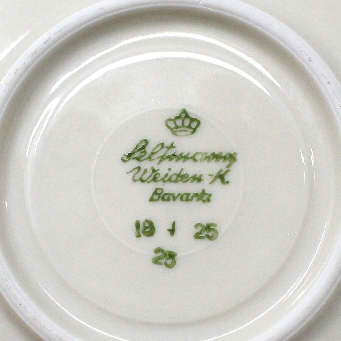 - Details: This espresso cup is so beautiful and a very RARE find! It is all gold, with an intricate, Geometric / Mid Century Modern pattern. The cup is covered in fully painted in gold on the inside. Made by Seltmann Weiden in Bavaria and marked as such on the bottom of both pieces. Based on the mark, we are able to date this cup to between 1949 and 1954. If you're a demitasse collector, this is one you will love in your collection.