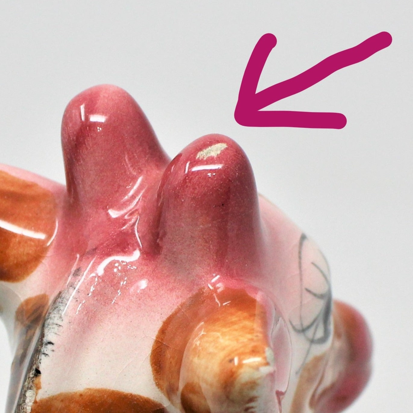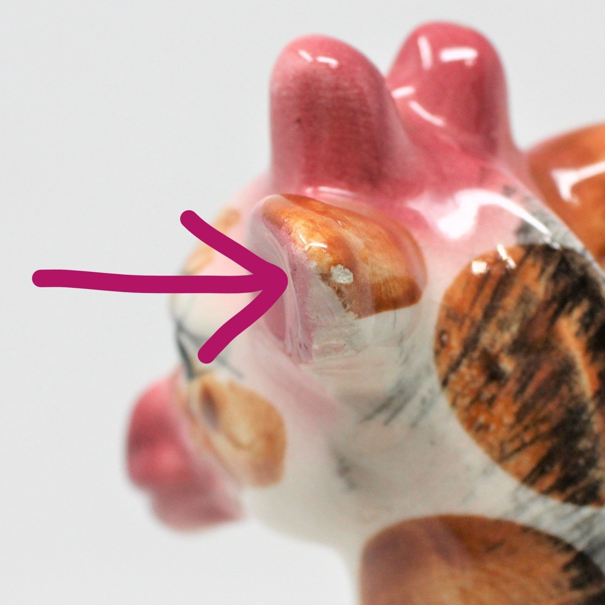 - Condition: Vintage - Used. Good Vintage Condition. There are three very minor chips, one on each ear and one on the ossicone (horn), plus some crazing. Priced accordingly. No other issues noted. Please review all pictures and make sure you love this item before purchasing, we can't accept returns. Please remember these are ANTIQUE and VINTAGE items, they are NOT new, every effort has been made to show any scratches, wear and tear and imperfections.