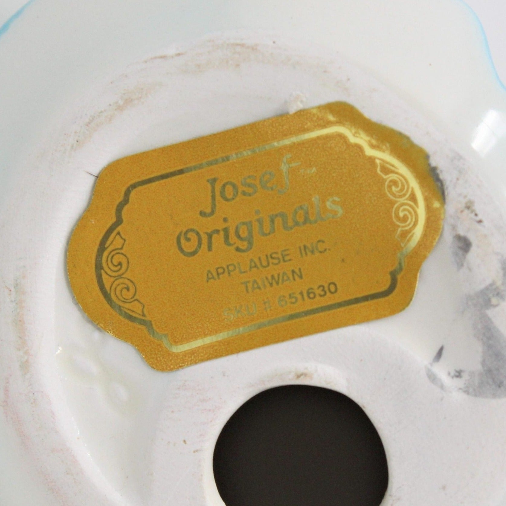 - Details: This is such a sweet figurine! It's from one of the most collected figurine series, "Birthday Angels" by Josef Originals. This sweet little girl is turning One and she's ready to celebrate with a pretty pastel blue dress, pink sash and pink flower on her waist. Being a little angel, she has pretty white wings with lots of gold accents. She is holding a large number 1 with embossed flowers and accented with gold as well. This figurine is embossed on the bottom with the Josef Originals signature, it also retains the original gold foil label that reads: "Josef Originals, Applause Inc. Taiwan, SKU 651630". A wonderful birthday gift for a one year old, and the perfect time to start her own collection! Great for a new collector or as a replacement for a broken one.