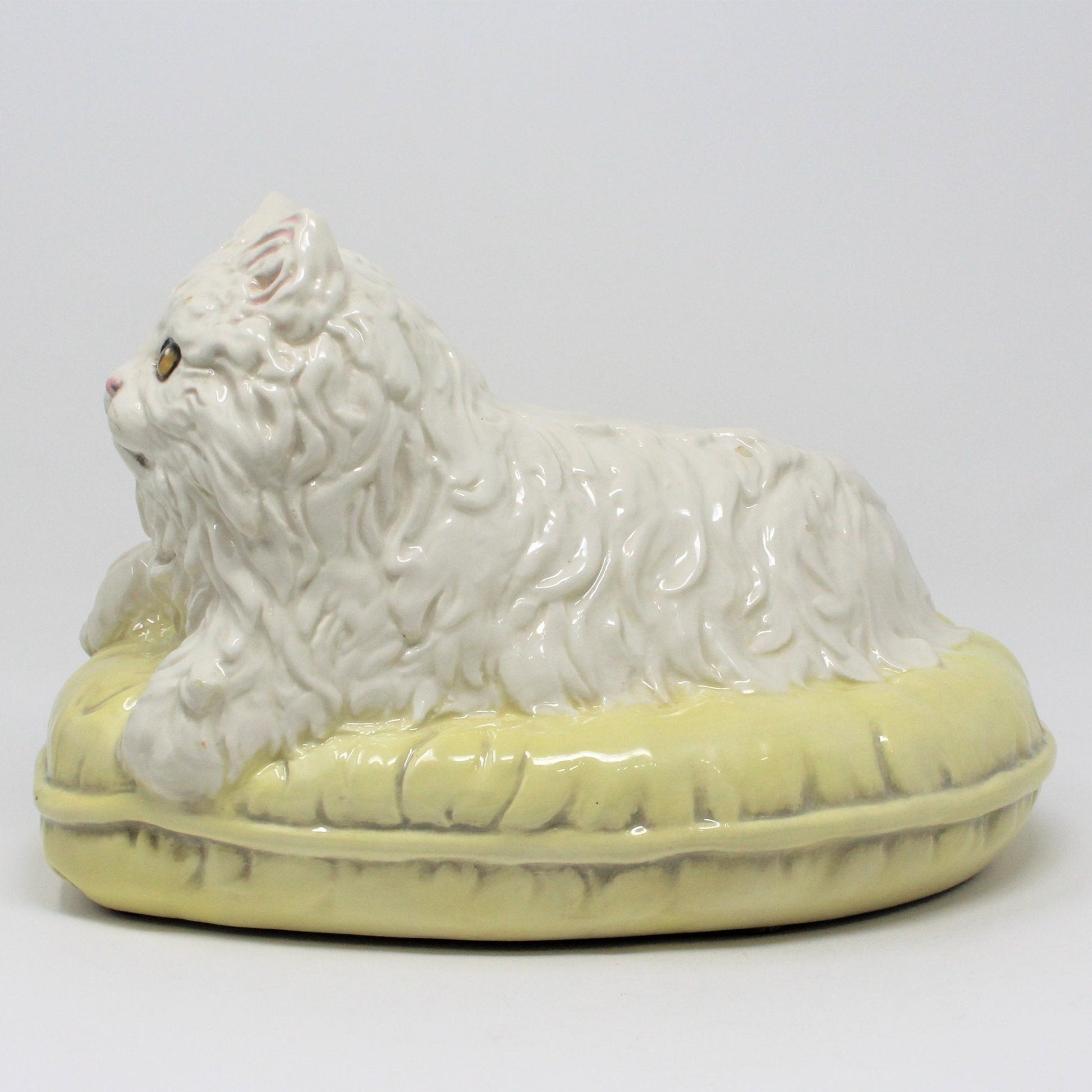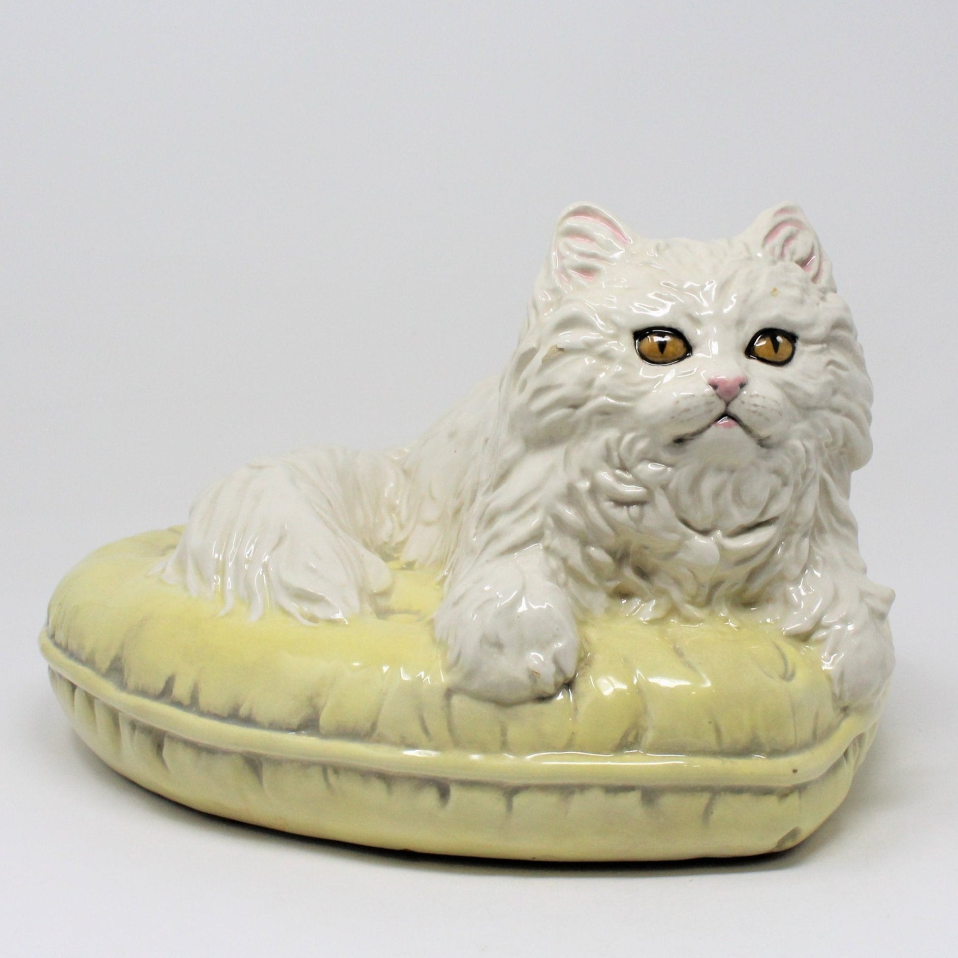 - Vintage Cat Sculpture, Persian Cat on Pillow, Signed by Artist, Ann Townsend and Dated, Hand Painted, Ceramic Art, Realistic White Cat, Home Decor, Cat Lovers, RARE, Unique Gift Idea, (Discontinued)