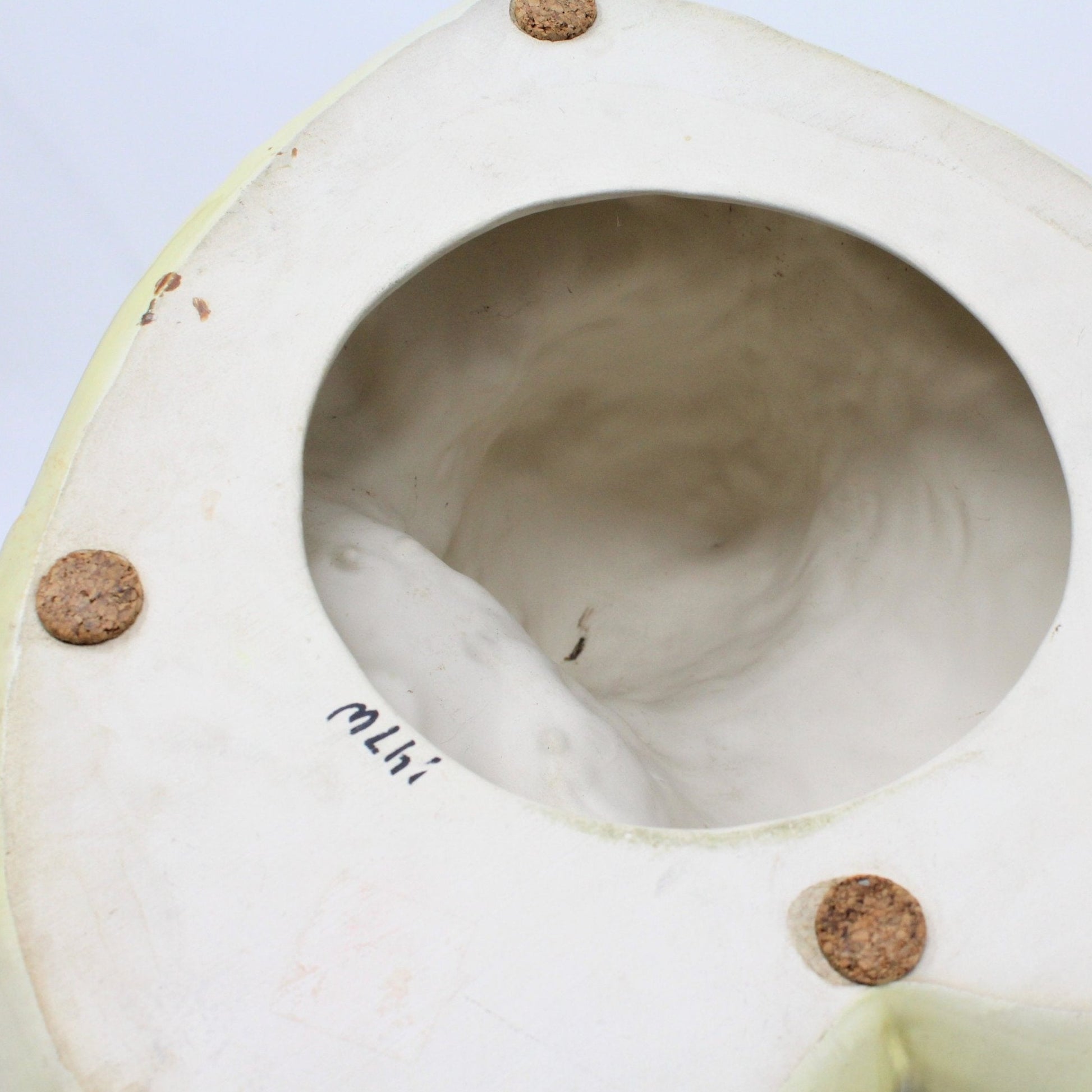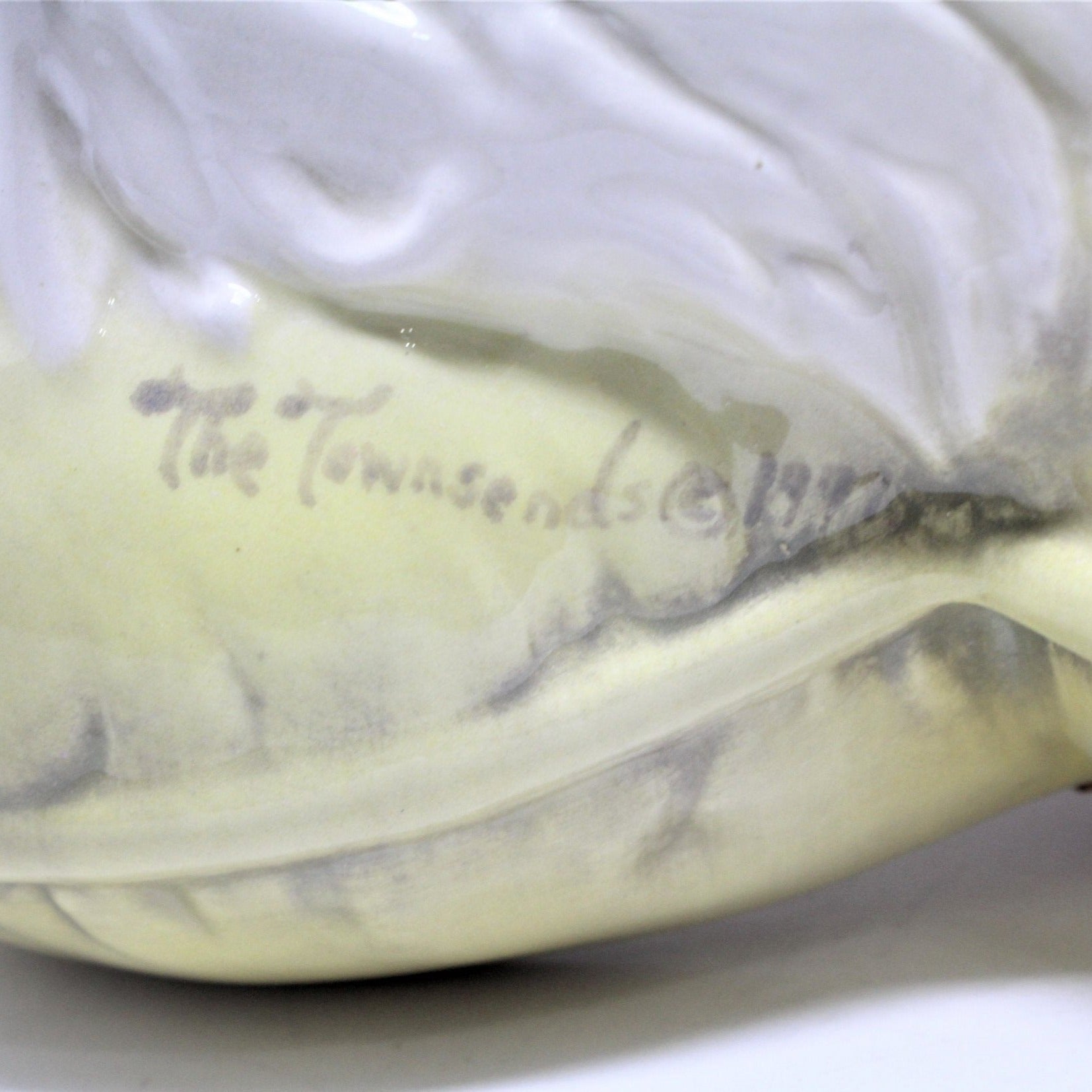 - Details: This is a wonderful likeness of a white Persian cat on a yellow tufted pillow. It is unique, a Rare find, made by The Townsend Ceramics Inc. As with all the Townsend pieces, this one is amazingly life-life. All their pieces were made from a mold originally sculpted by Ann Townsend, (see below for a brief history of this company and artist). This piece is hand painted with beautiful pastel tones and the level of detail is amazing. It is impressed with The Townsends 1971 copyright, plus signed in ink (under the glaze): "The Townsends 1971" and the copyright symbol. The bottom also has an ink mark: "MLhi", could be a mold number. The bottom has glued cork disks to protect your furniture. Some Townsend pieces have sold for $300 to over $800 at auction. This is a heavy, large and fragile piece, it will need a large box and lots of packaging material. Great as a gift for a cat lover or Townsend collector. This item qualifies for Free Shipping, (Continental US only).