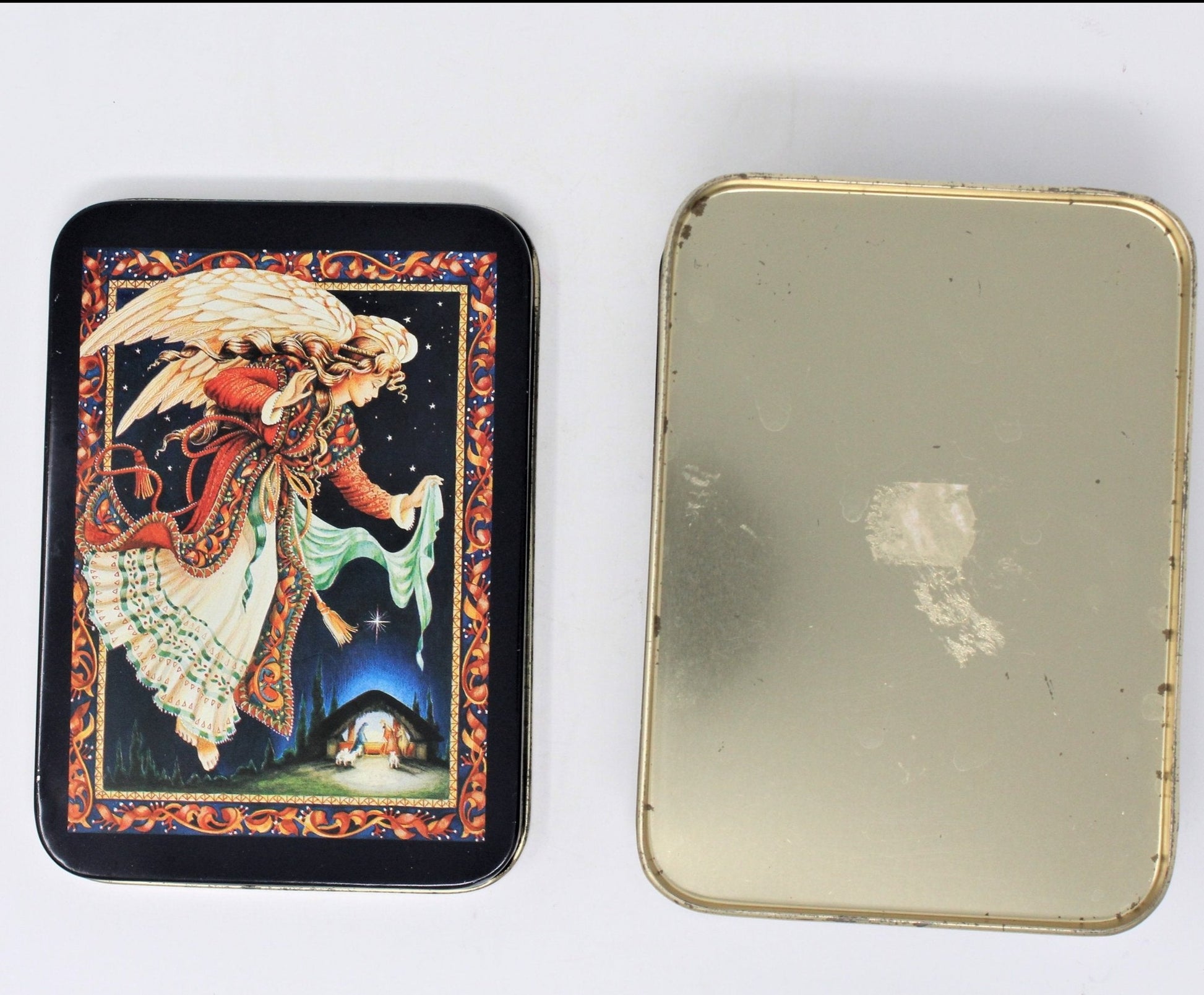 - Collectible Tin, Vintage Candy Tin, Angel & Nativity Scene, Celestial Image, Religious Christmas Decor, Linda Green Painting, (Discontinued)