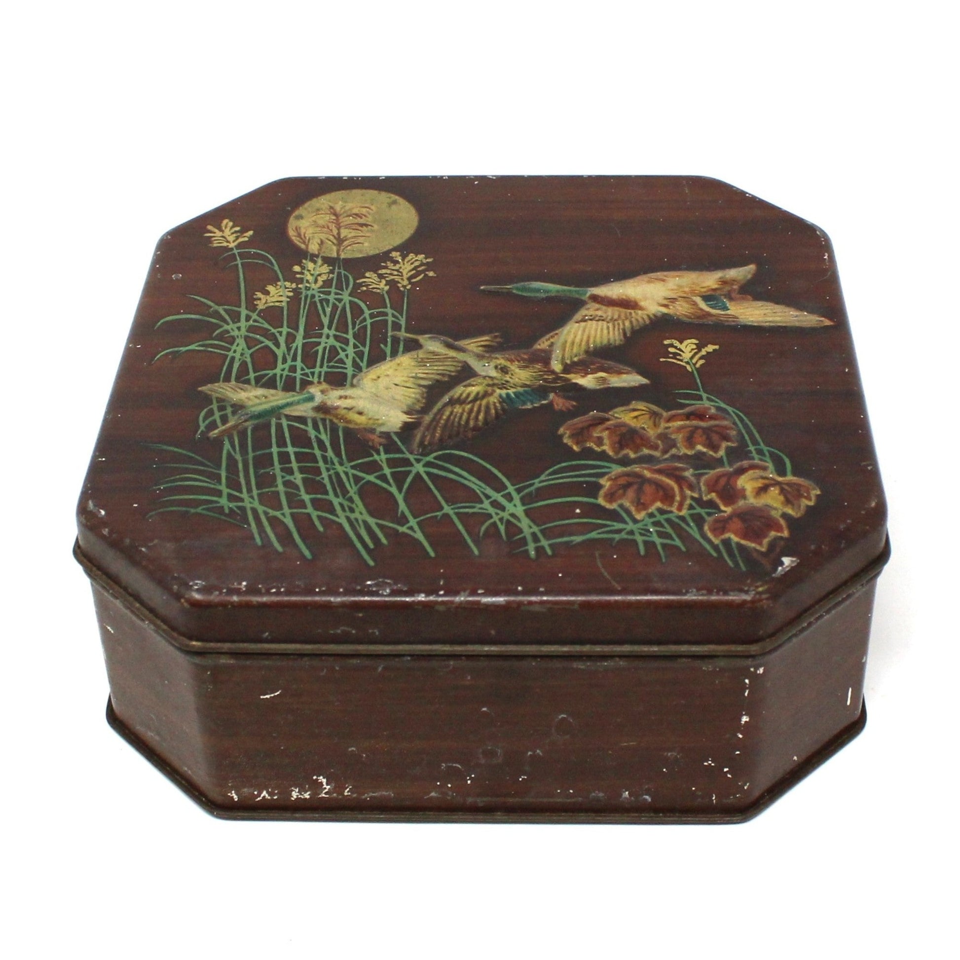 - Antique Tin, Decorative Box, The Metal Box Company, Mallard Ducks in Flight, Decorative Tins, Fall Decor, Cookie Tin, Storage Container, Vintage Collectibles, Gifts for Men, Hunting Lodge Rustic Cabin Decor, (Discontinued)