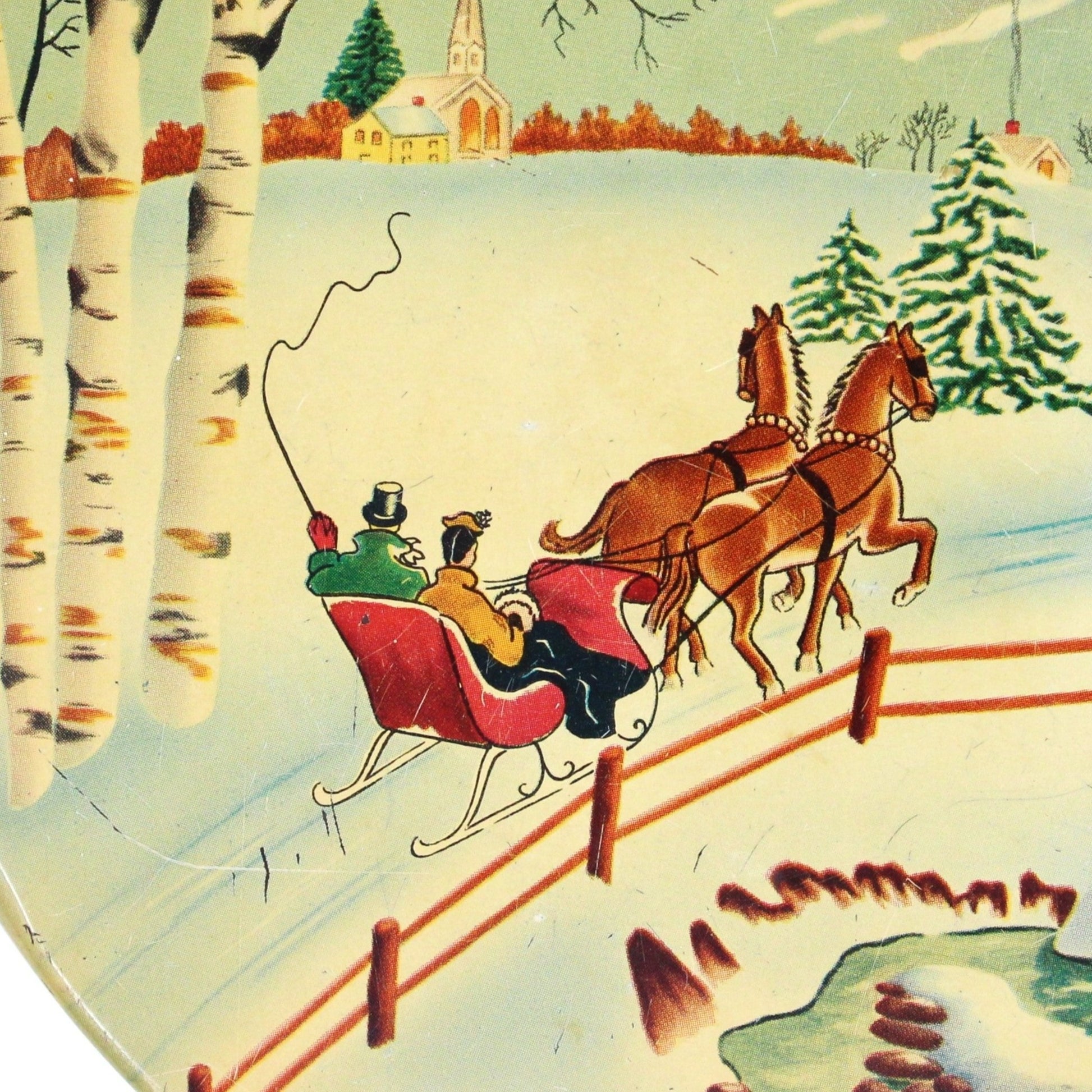 - Antique Cookie Tin, Olive Can Co, Horse Drawn Sleigh Winter Holiday Scene, Promotional Products, Christmas Holiday Decor, Advertising Collectible Tin, Storage Container, (Discontinued)