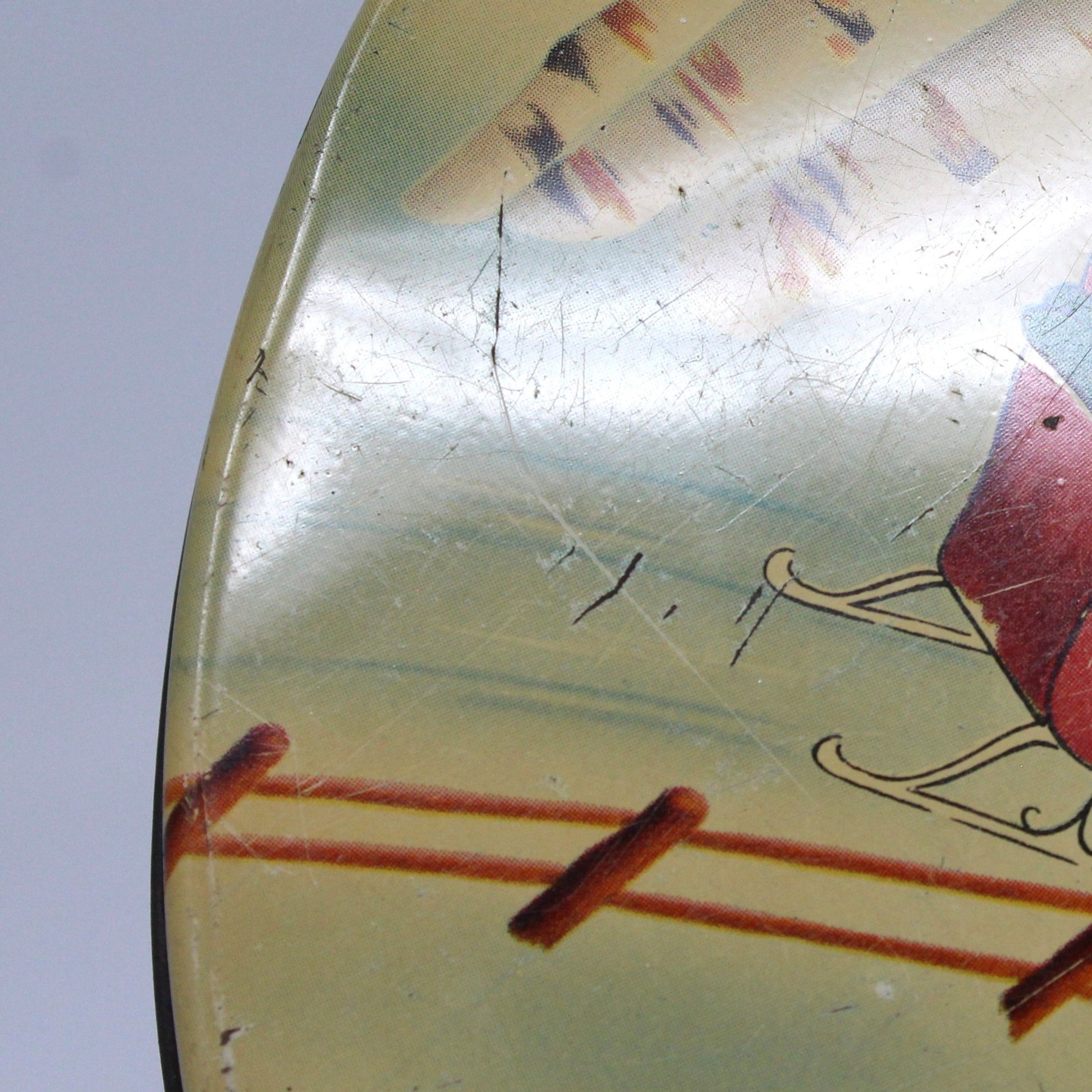 Tins, Gift Tin / Cookie Tin, Horse Drawn Sleigh Snowy Winter Scene, Olive Can Co, Antique