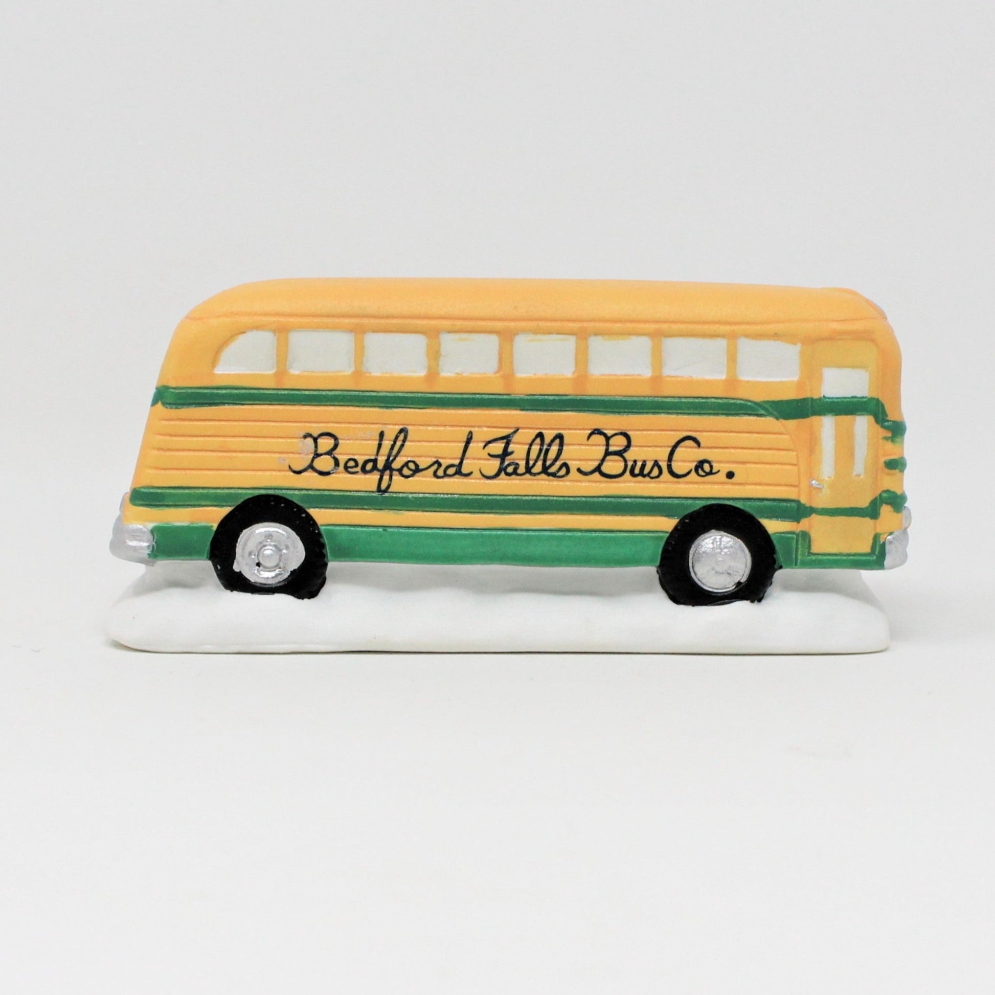 - Details: A sweet rendition of the Bedford Falls Bus, a tribute to the much loved movie, "It's a Wonderful Life", directed by Frank Capra in 1946, starring Jimmy Stewart and Donna Reed. This bus is part of a large collection of Bedford Falls buildings, figures and other pieces to create your own Bedford Falls or add to your existing Christmas village. It is a collectible with great detail, the lights, bumper, doors, everything nicely done in porcelain and hand painted. It includes the UL listed cord and light bulb in working condition. Also retains the original box, great for storage. The bus has a foil sticker that reads: Made in Philippines, and the box is marked, Distributed by Dayton Hudson Corp.