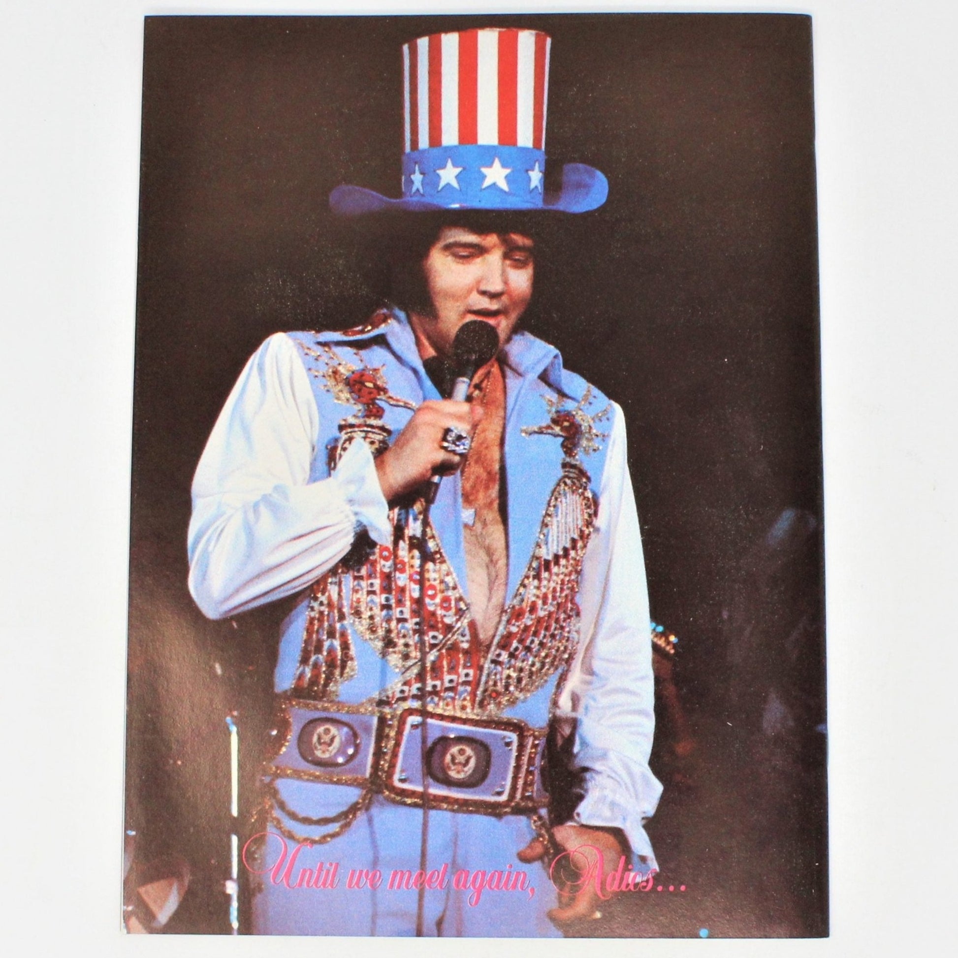 - Details: An excellent tribute to the late Elvis Presley, this Graceland News Magazine 10th Anniversary Edition offers lots of pictures, both color and black and white, newspaper clippings, photos inside Graceland, articles by many who knew and loved Elvis, just an amazing collection of information about the King of Rock and Roll. There's also vintage advertising from businesses near Graceland, places where Elvis purchased clothing, performed, and frequented with family and friends. The magazine has 43 pages, the front cover has several headlines like: "Rare Photos and Interviews", "The King's Cook", "Remembering Good Times", etc. The back cover has a photo of Elvis in his blue beaded eagles jumpsuit and an Uncle Sam hat which he wore the very last time he performed in Atlanta, GA in 1976, the back reads: "Until we Meet Again, Adios". Guaranteed Genuine/Original Unsold new old stock (NOS) . Great gift for an Elvis fan or collector.