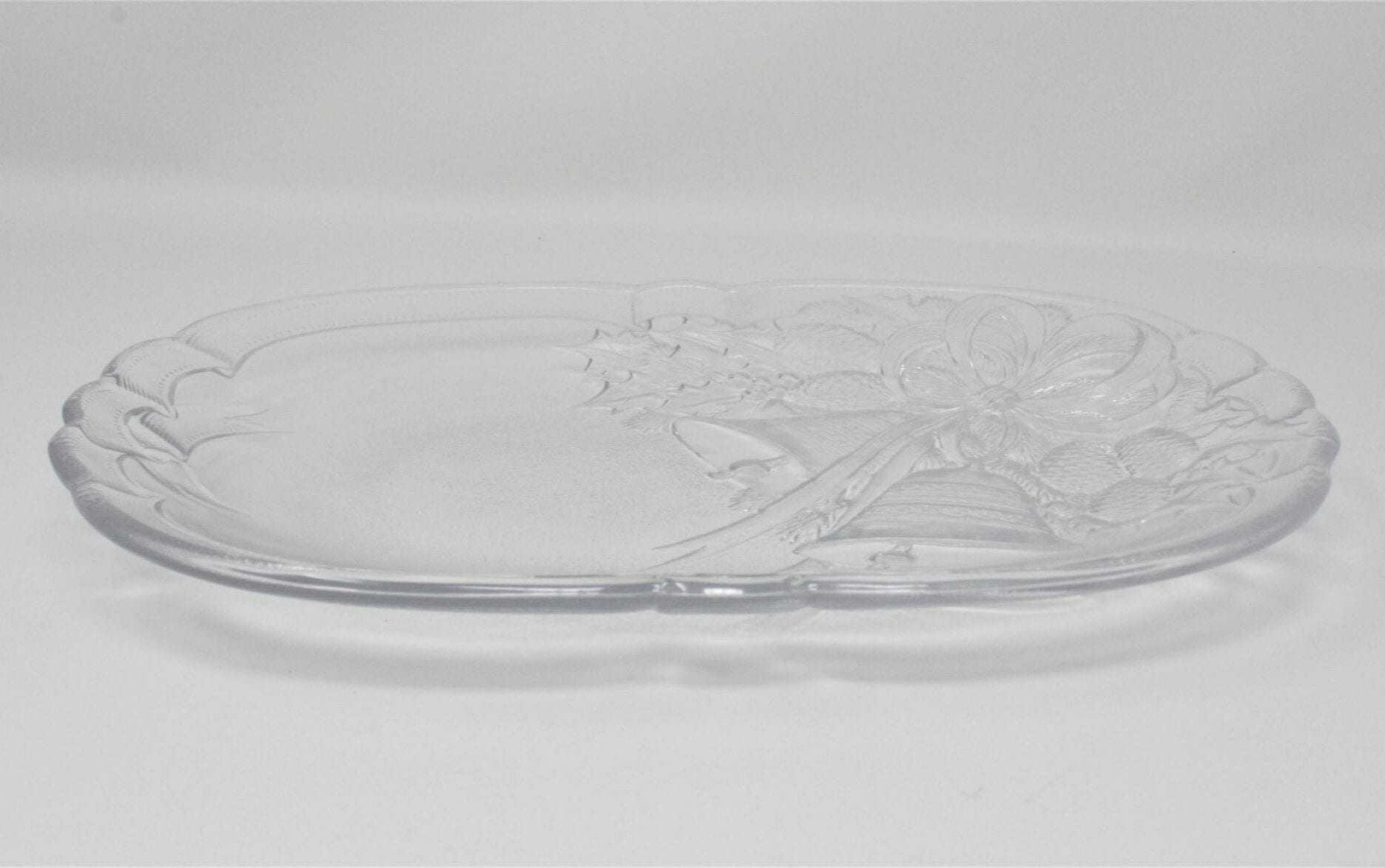 Platter, Mikasa, Holiday Bells, Embossed Glass, Oval, Vintage