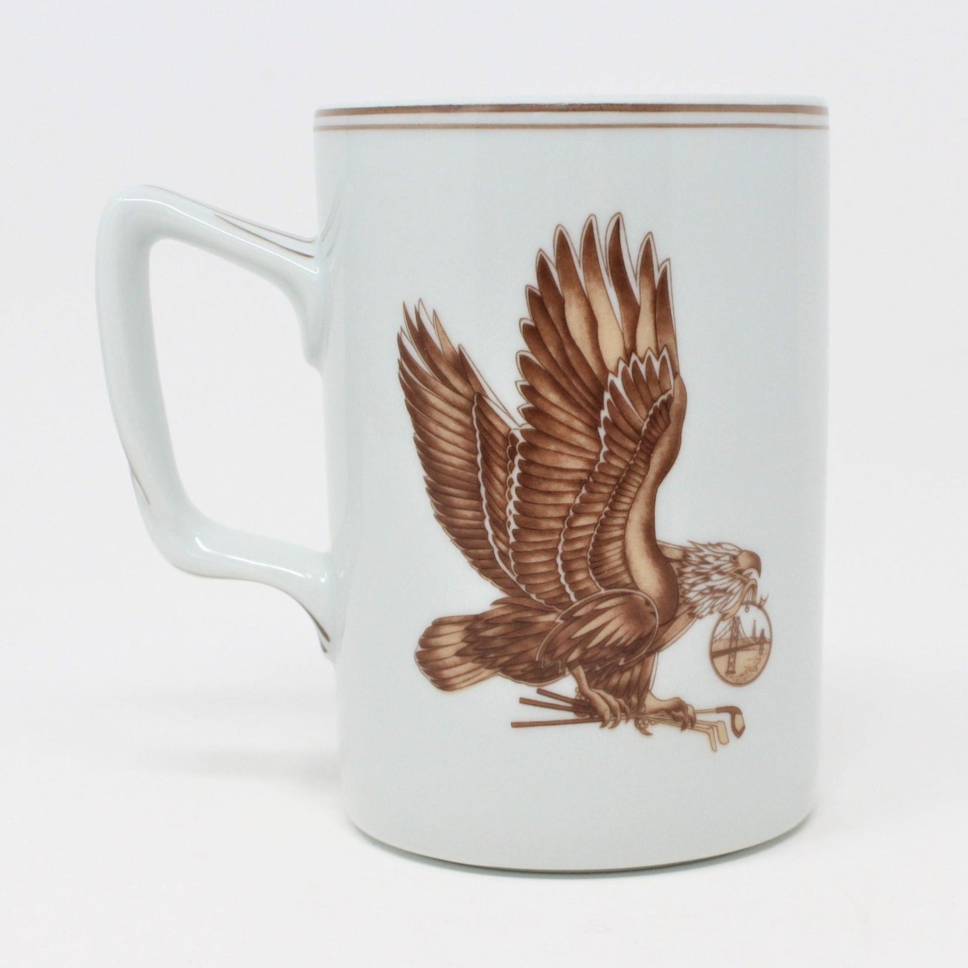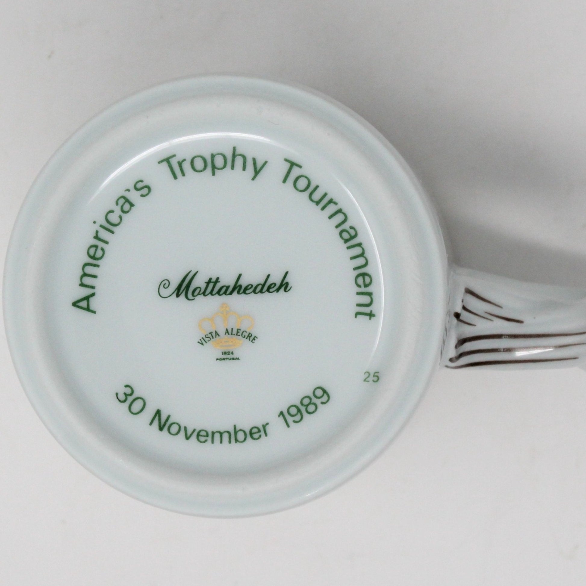 - Details: These mugs have a design from a very famous painting by Lemuel Francis Abbott (L.F. Abbott), commissioned by William Innis, a wealthy London sugar merchant and captain of the Society of Golfers at Blackheath, England. The back has a beautiful brown eagle holding golf clubs with its talons. The handle is detailed, made to look like wood. These mugs had a very limited run, and are a rare find. They were made by Vista Alegre, a porcelain manufacturer in Portugal for Mottahedeh and were primarily used as commemorative mugs on a few different golf tournaments (the RJR championship is a known one), this mug commemorates the American Trophy Tournament of 1989. It is stamped on the bottom: "America's Trophy Tournament, 30 November 1989, Mottahedeh, Vista Alegre 1824 Portugal". Great gift for a golfer, collector of golf memorabilia or Mottahedeh lover.