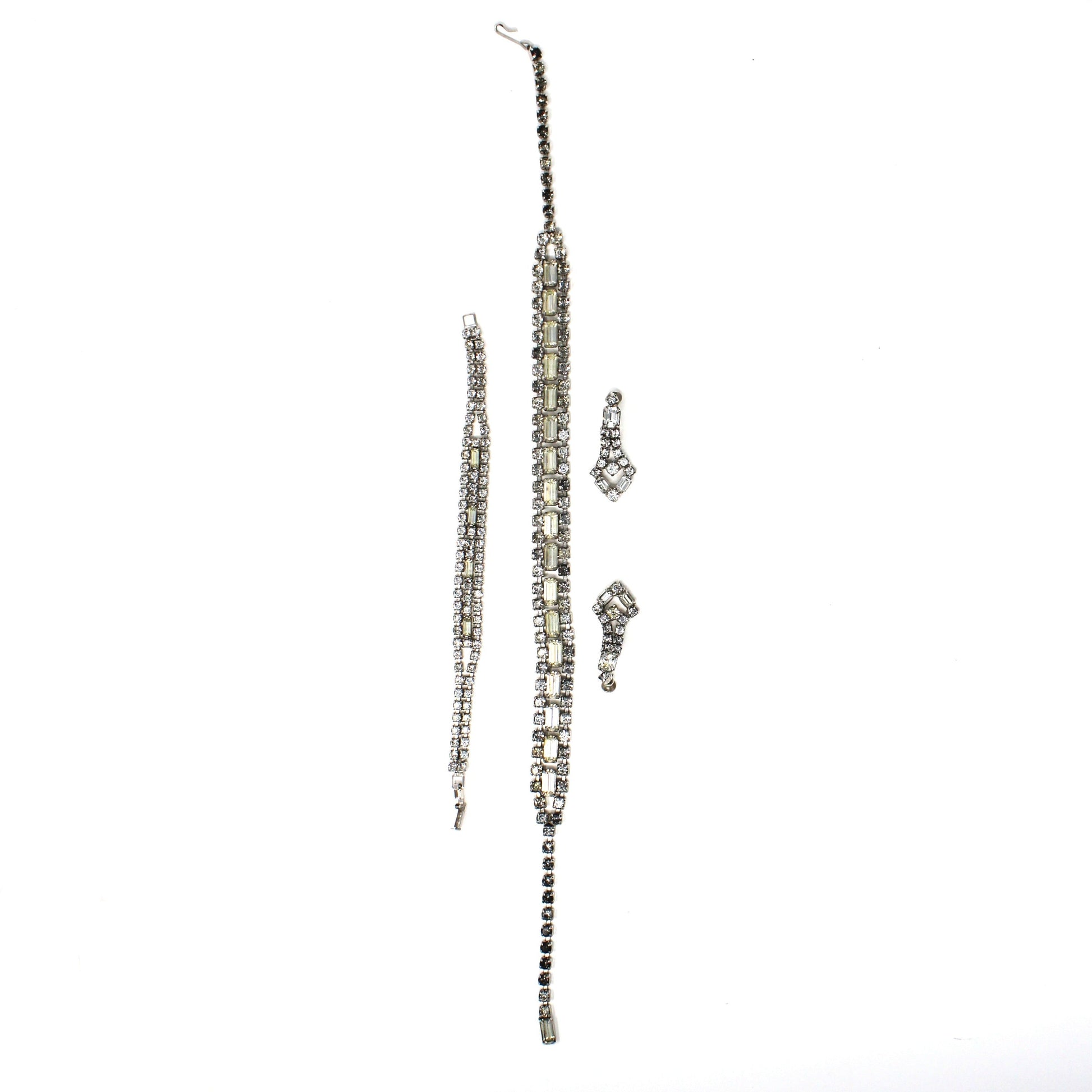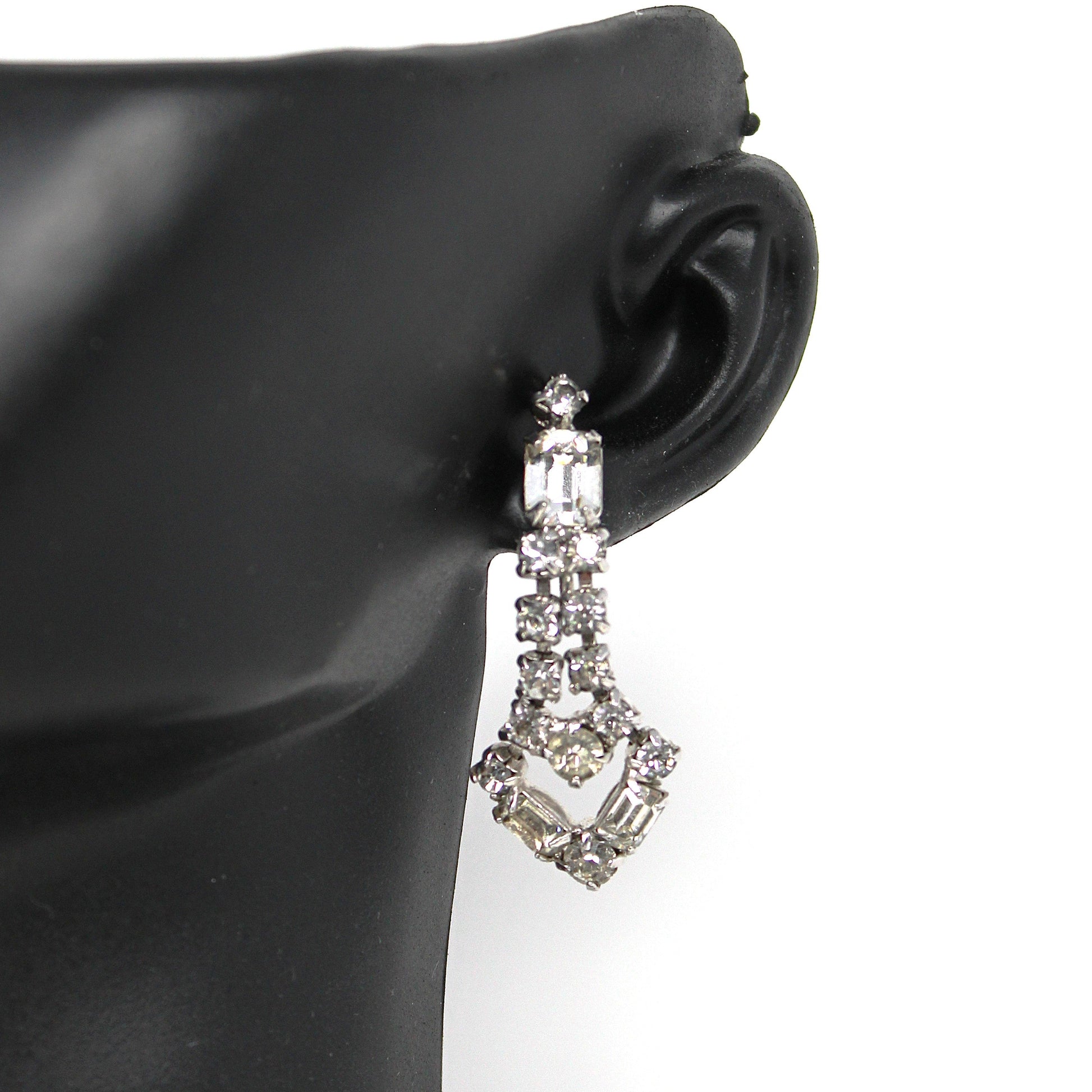 - Vintage Necklace, Bracelet & Earrings Parure Set, Silver Tone, Three Elegant Pieces, Mid Century Collectible Jewelry, Prong Set, Clear Rhinestones in Baguette and Square Cuts, Collar Necklace, Chandelier Earrings, Holiday Jewelry, (Discontinued)