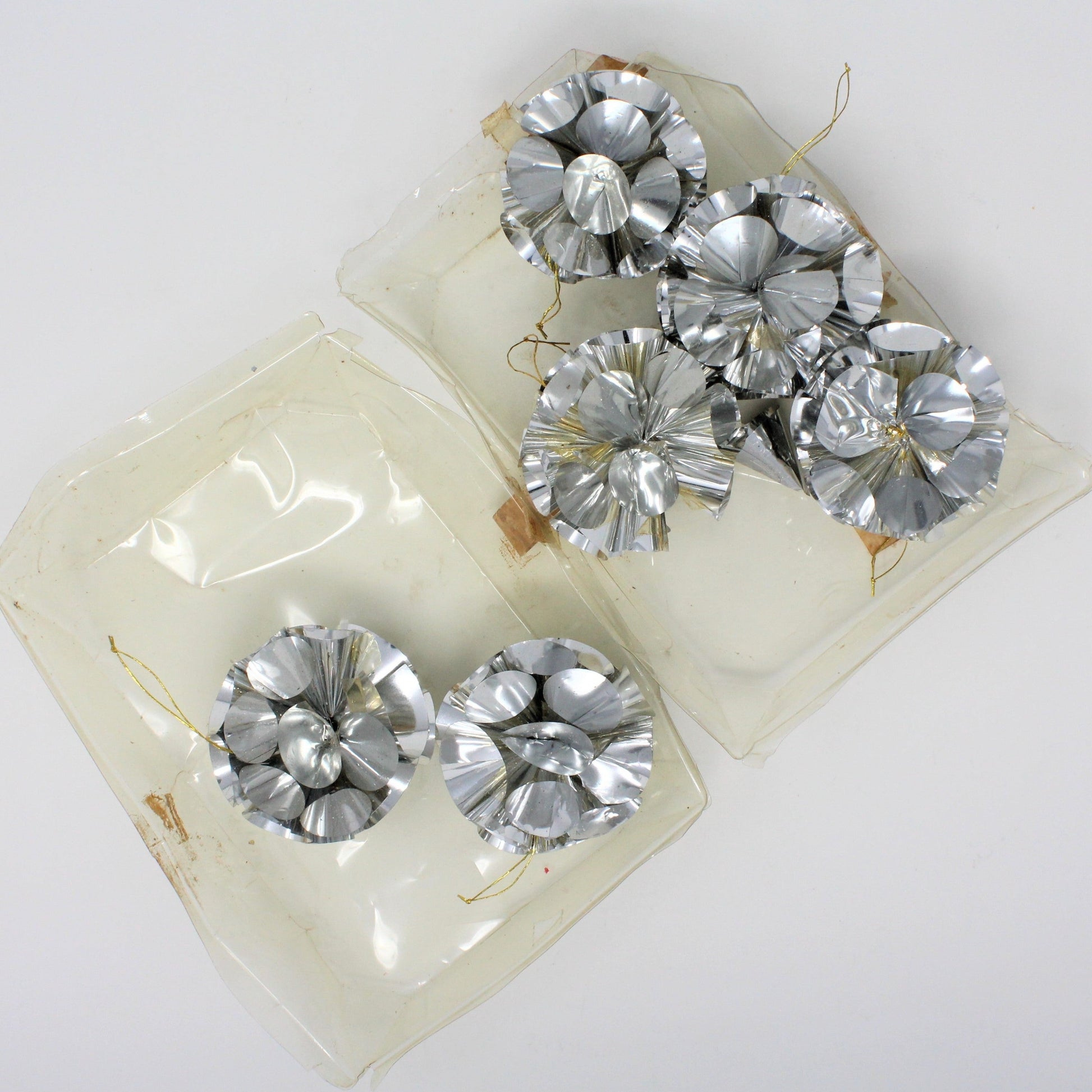 - Vintage Ornaments, Atomic Foil Silver Pompoms, Mid Century Ornaments, Set of 6 in Original Box, Christmas Ornaments, Holiday Tree Decor, Collectibles, (Discontinued)