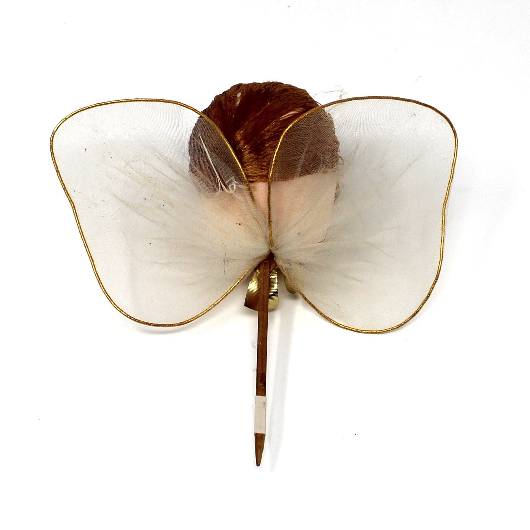 - Condition: Vintage - Used. Very Good Vintage Condition. There is one small stain on the stockinette face, it's on the side, not very noticeable. No tears on the tulle wings. All as acceptable due to age/use/wear. Please review all pictures and make sure you love this item before purchasing, we can't accept returns. Please remember these are ANTIQUE and VINTAGE items, they are NOT new, every effort has been made to show any scratches, wear and tear and imperfections.