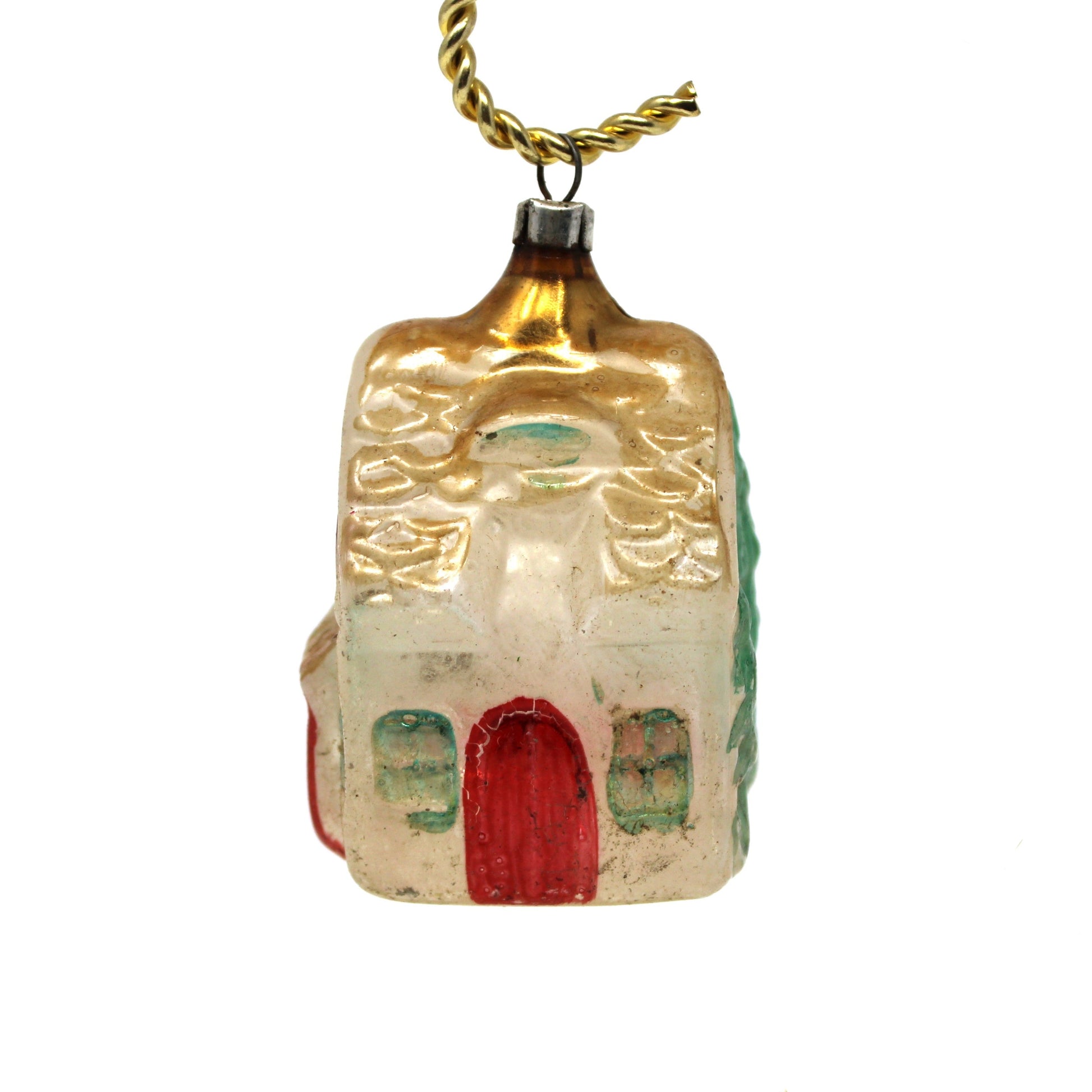 - Details: These Christmas Cottage House ornaments are a highly sought after collectible. This one is very old, it is paper thin glass, a major tell-tale of authentic, old Lauscha German ornaments. Because of this, they are very fragile and not many have survived. The house has simple colors, the silver mercury in the glass, plus red, green and gold. It has the pontil mark on the bottom. A wonderful gift for a collector! We offer 20% off on the purchase of 3 or more ornaments. Please Contact Us, let us know which ornaments you're interested in to receive discount.