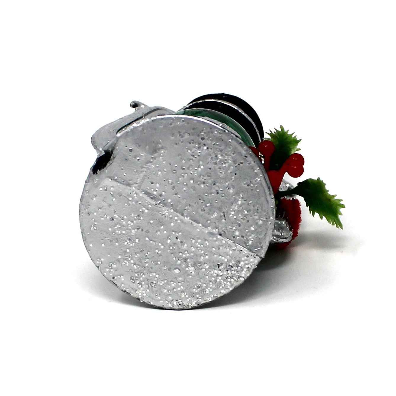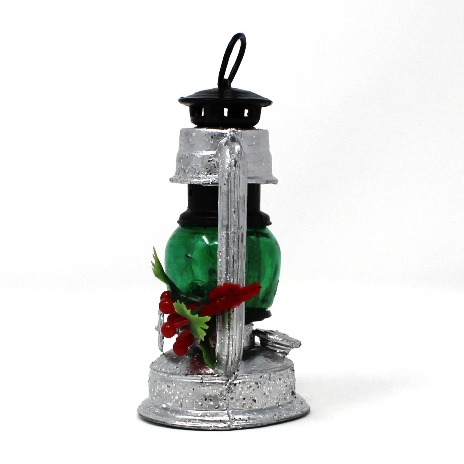 - Details: Add some vintage charm to your Christmas tree with this Railroad Lantern ornament. This one is silver color with a green "light" and some holly and berries tied on the side. The globe can be raised and lowered just like a real lantern, a very fun feature! These style ornaments are full of nostalgia and will be the perfect addition to your Christmas Decor. There is a condition issue, please see below. Great gift for an ornament collector! We offer 20% off on the purchase of 3 or more ornaments. Please Contact Us, let us know which ornaments you're interested in to receive discount.
