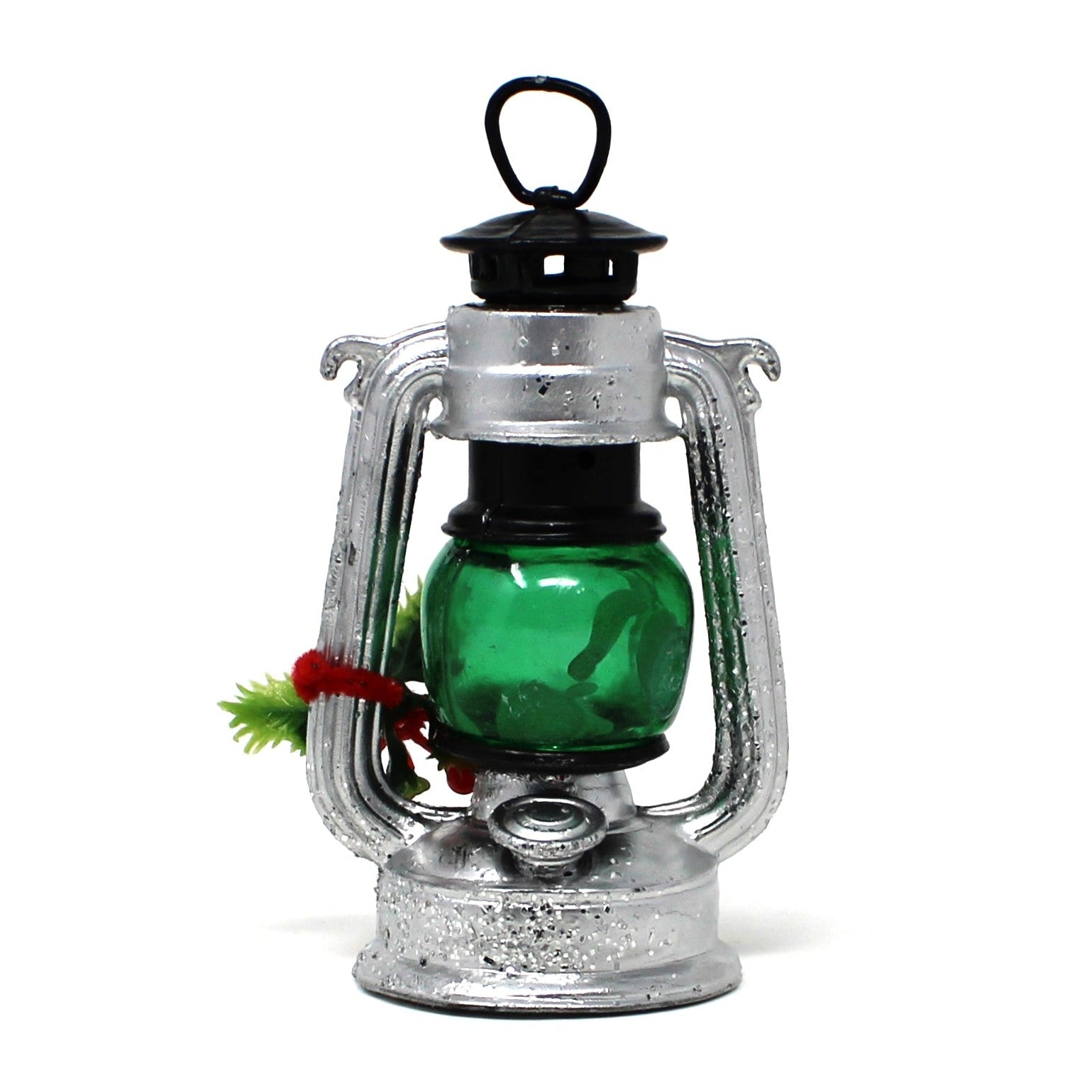 - Vintage Ornament, Old Fashioned Railroad Lantern, Camping Light, Farmer's Outdoor Lamp, Silver & Green, Holiday Tree Decor, Kitsch Collectible, Japan Imports, (Discontinued)