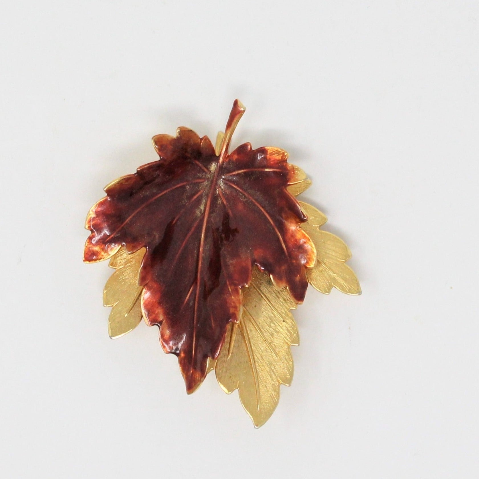- Vintage Brooch, Large Double Leaf Brooch, Enamel & Gold Tone, Vintage Jewelry, Fall Fashion Accents, Collectibles, Oak Leaves