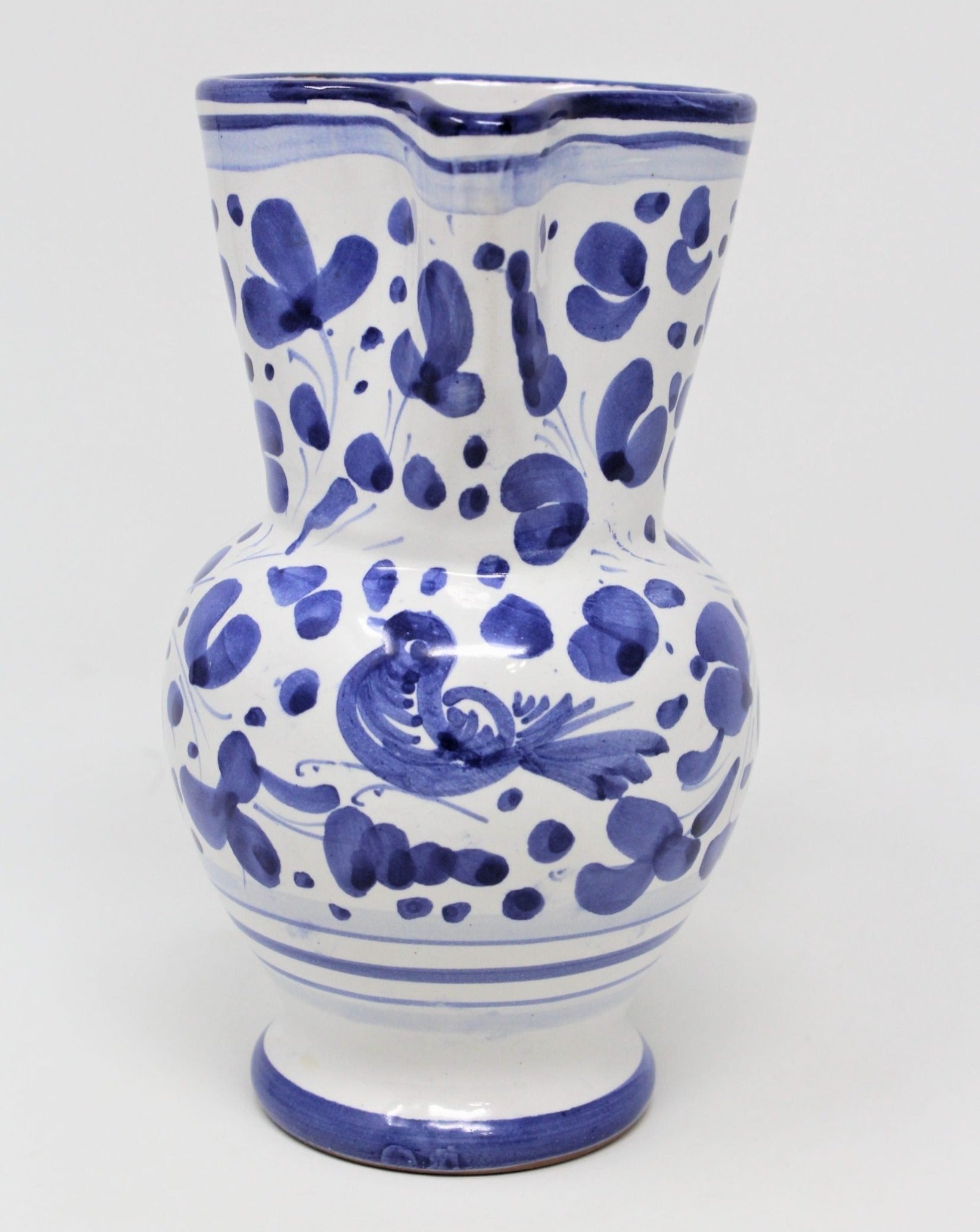 - Ceramic Decorative Pitcher / Vase, Italian Deruta Arabesco Bird, Blue & White, Hand Made Pottery, Hand Painted, Home Decor, Collectible Pottery, Italian Imports