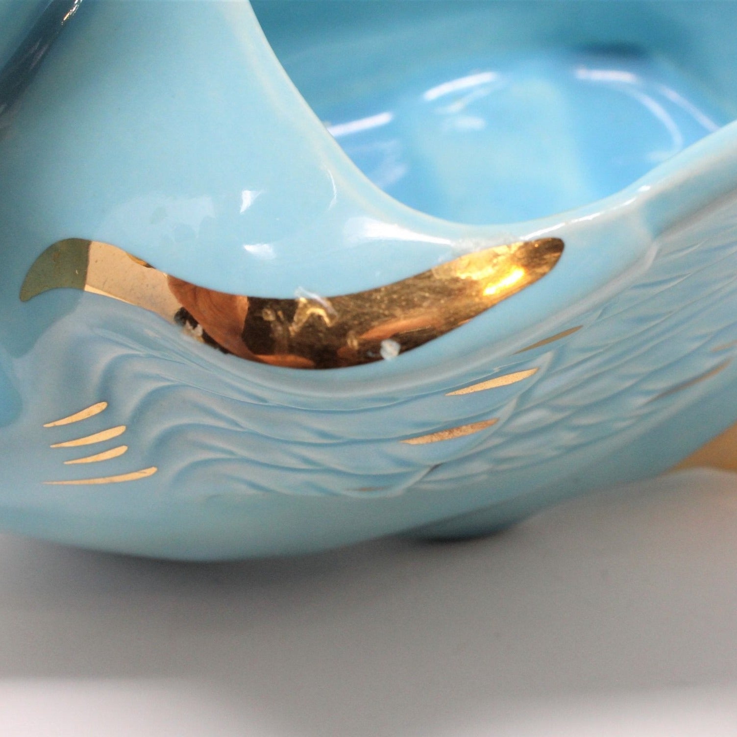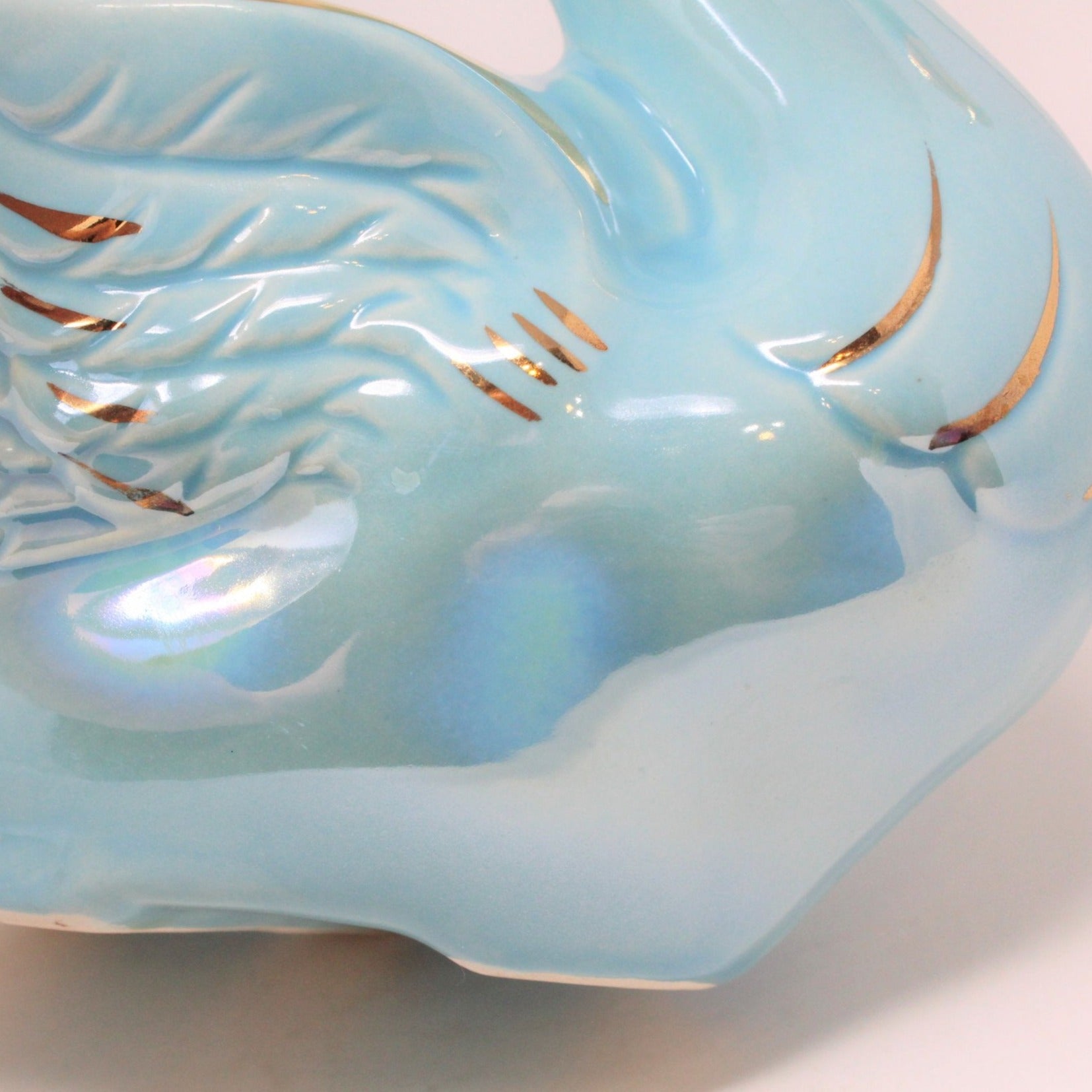 - Vintage Planter, Blue & Gold Swan Shaped, Iridescent, Cachet Pot, Home Patio Decor, Mid Century Pottery, USA Ceramic, (Discontinued)