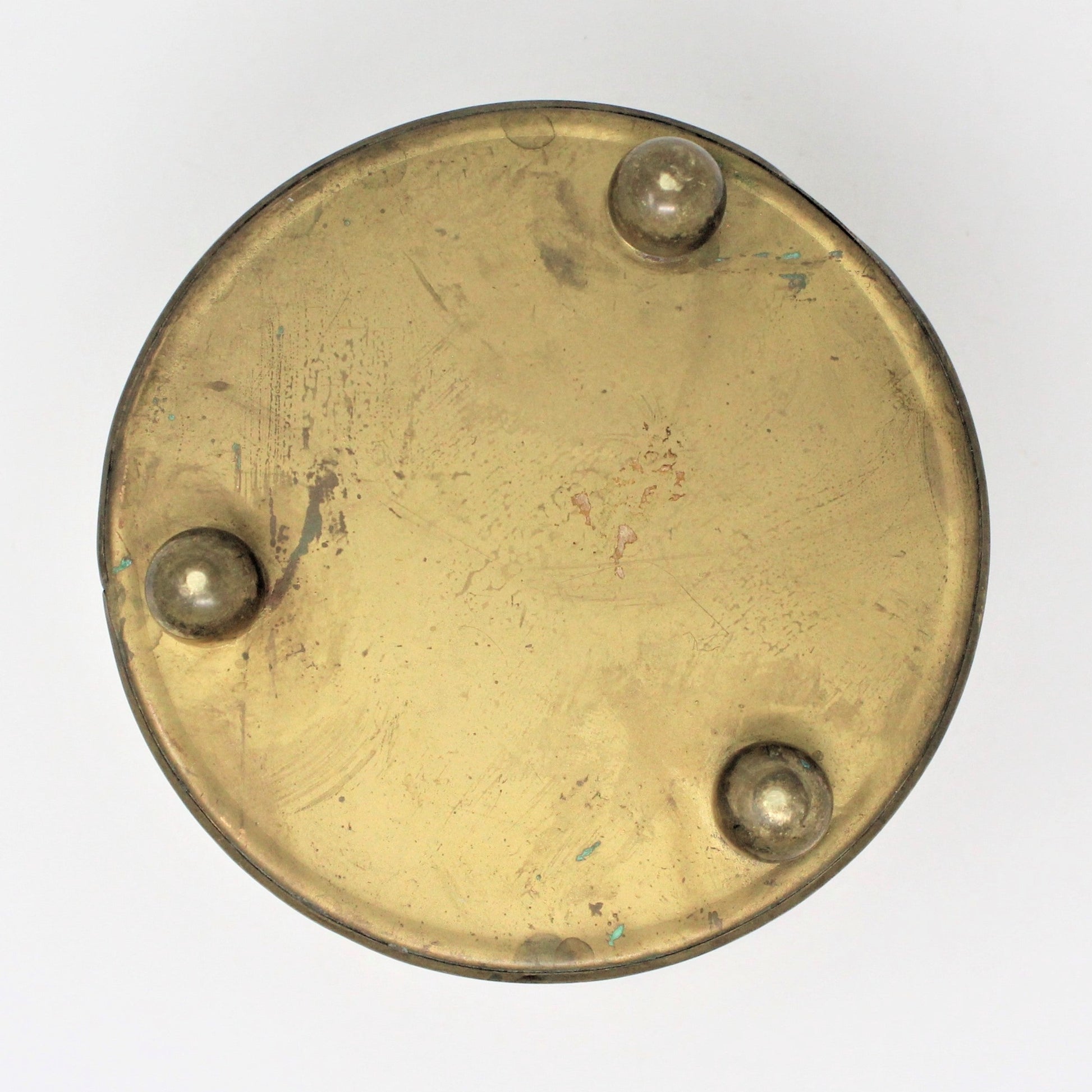 - Condition: Vintage - Used. Good Vintage Condition. The brass color has worn in a few places and the copper is showing through, many enjoy this type of patina/vintage look. There are no chips or scratches or any other defects on this piece. Please review all pictures and make sure you love this item before purchasing, we can't accept returns. Please remember these are VINTAGE and ANTIQUE items, they are NOT new, every effort has been made to show scratches, wear and tear and imperfections.