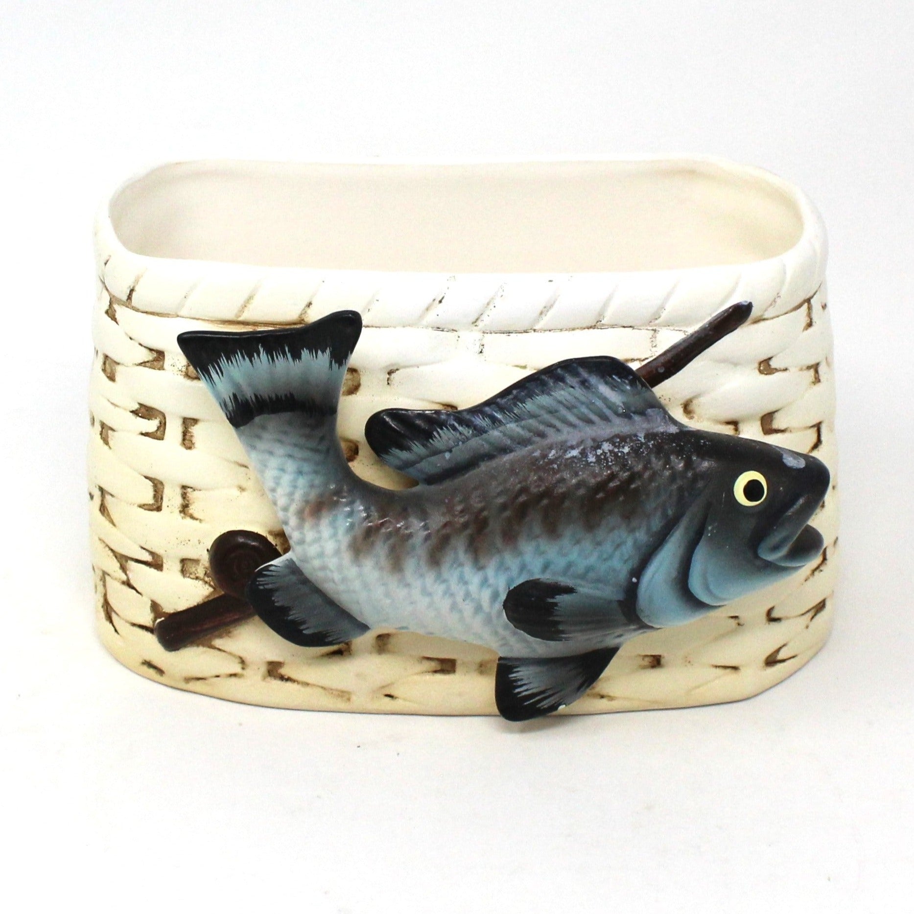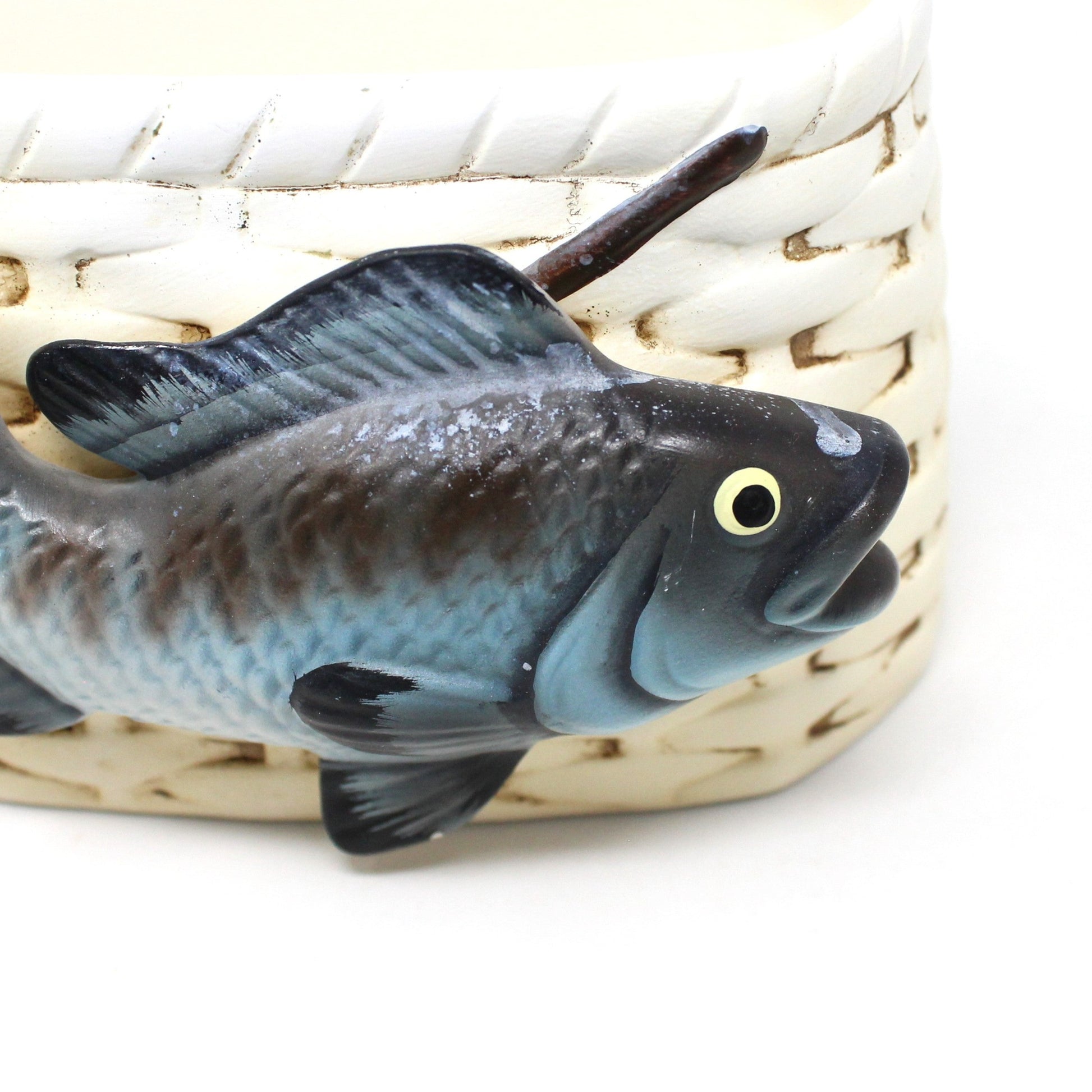 - Vintage Planter, Napco Fishing Basket with Fish and Rod, #2413, Home Decor, Man Cave, Fishing Gifts, Gardening Supplies, Cache Pot, Fishing Decor, Maritime, Nautical, (Discontinued)
