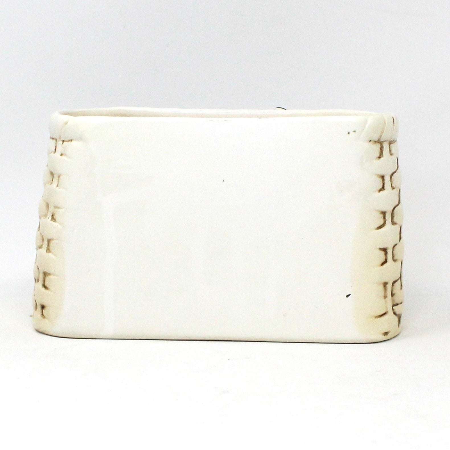 Planter / Vase, Napco, Fishing Creel Basket with Trout and Rod, Vintage Ceramic