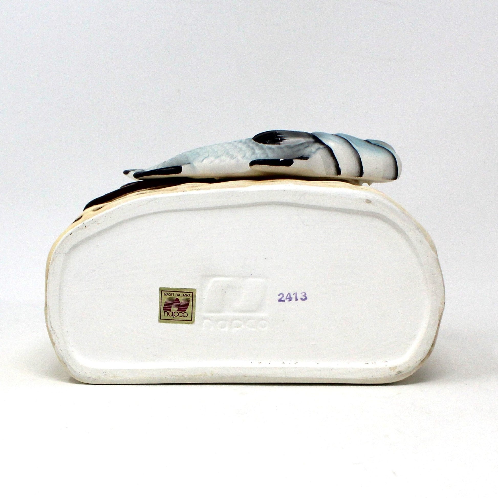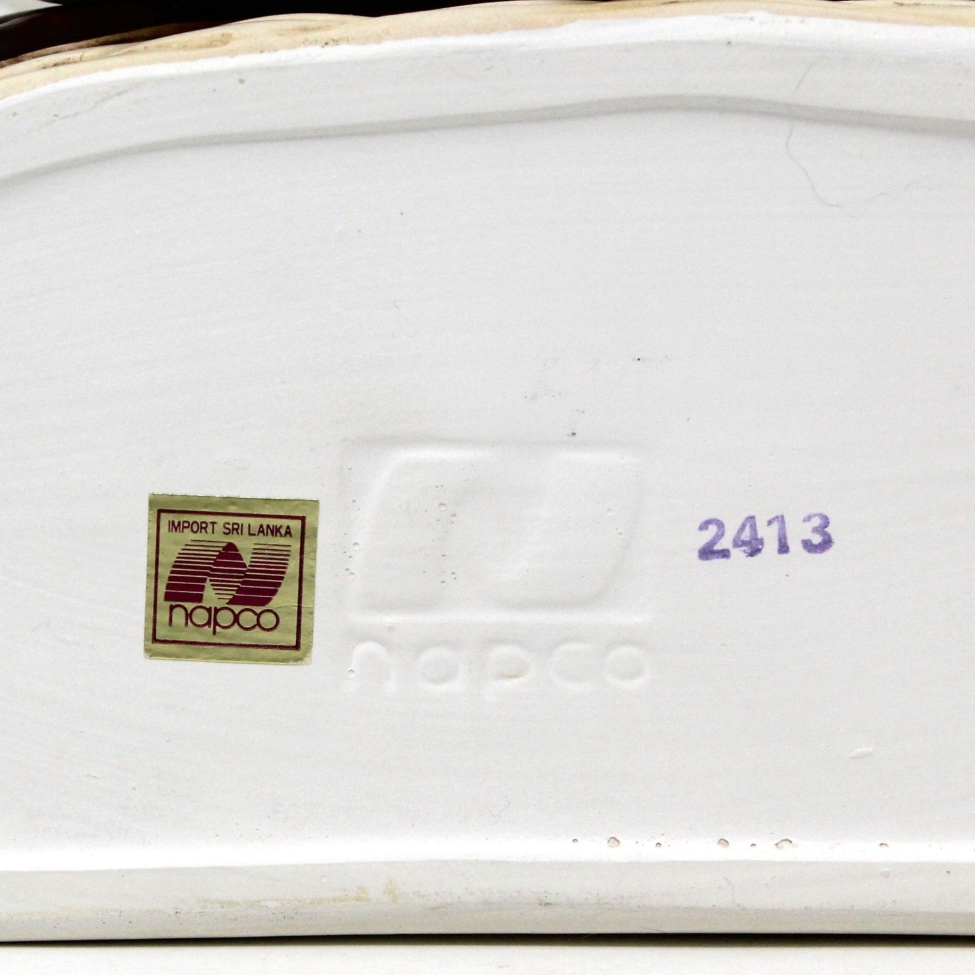 National Potteries Corporation, (Napco), was founded in Bedford, Ohio, in 1938 by Irwin Garber, David Rein and Mr. Payner. They originally produced their own porcelain and glass but after World War II, Napco started importing collectible ceramic novelty items from Japan. Those items so loved and collected today include: ceramic planters, decorative glass, novelty figurines and their ever famous Head Vases. This helped Napco grow very fast in the 50's and 60's. However, during the 1960's Napco faced hard competition from Lefton, Enesco, as well as from one of their own, Irwin Garber. Irwin left Napco to start International Art Ware Corp (Inarco), which also imported glass and ceramics from Japan, including the head vases that had been so popular for Napco. In 1986, Napco purchased Inarco and moved the company headquarters to Jacksonville, Florida where they remain today. Napco used a wide array of marks, some transfer marks and some paper labels. The paper labels feature various wording, such as: “A Napco Collection,” “Napco originals by Giftware,” “National Potteries Co., Cleveland, OH, Made in Japan,” and “Napcoware”.